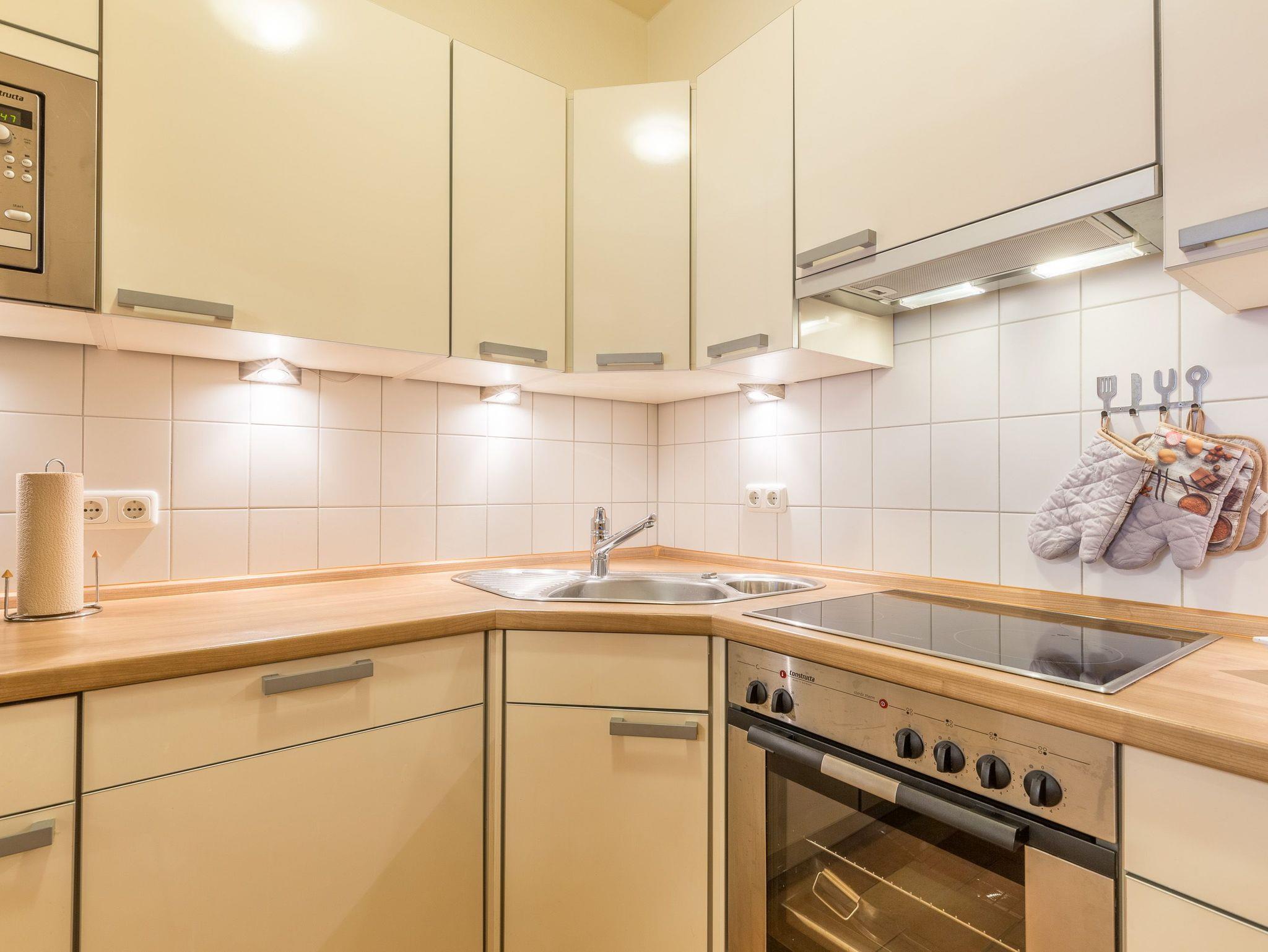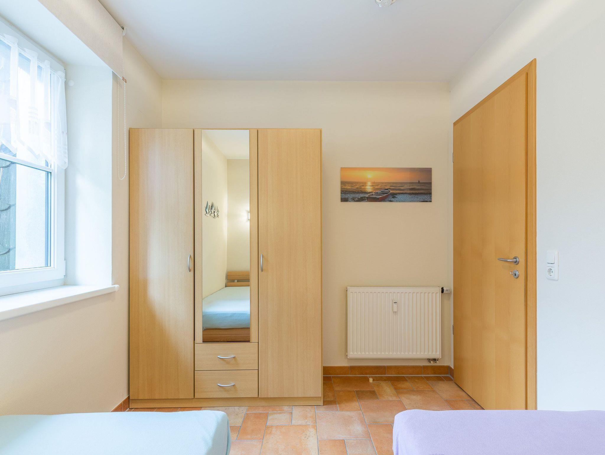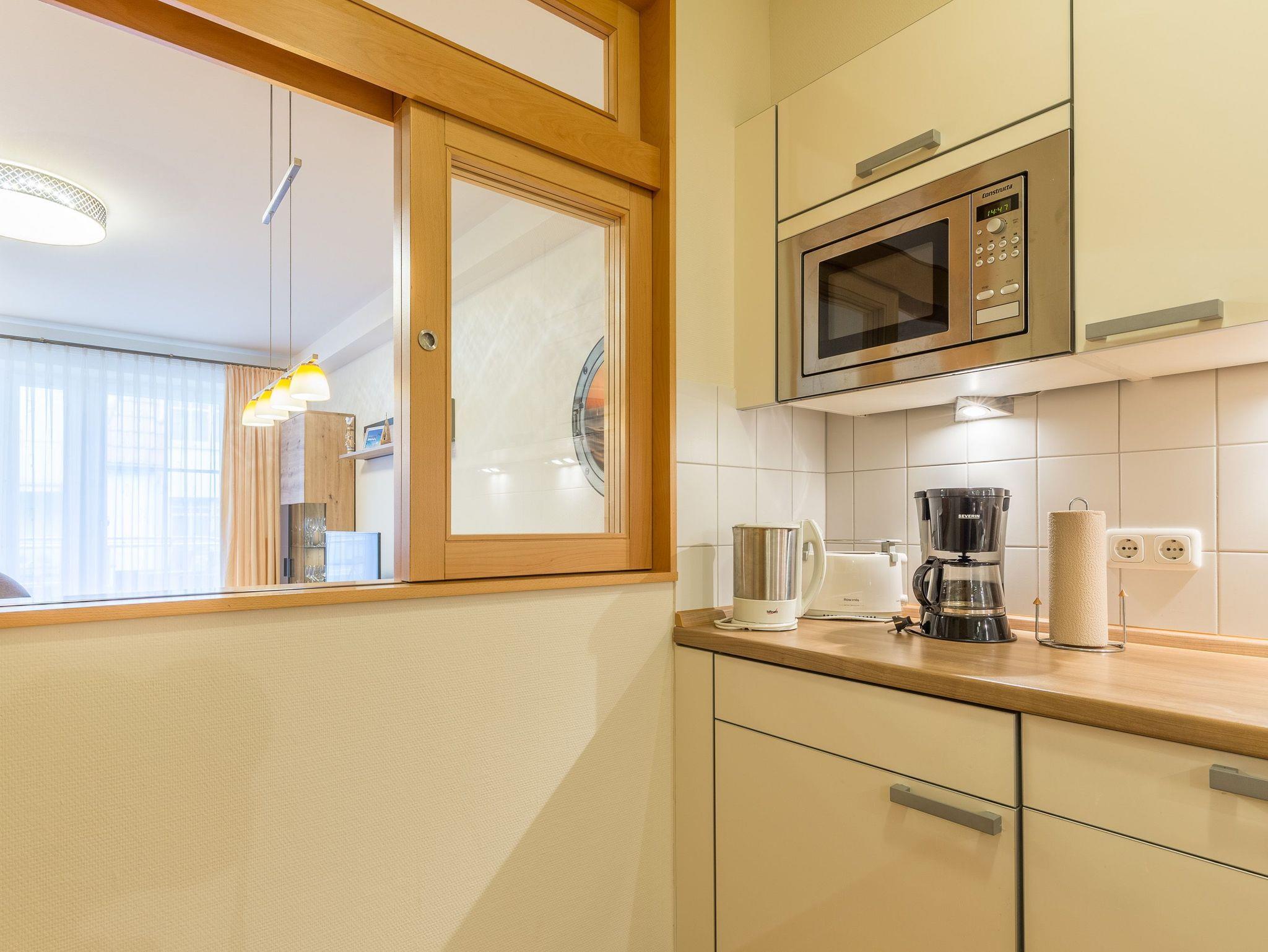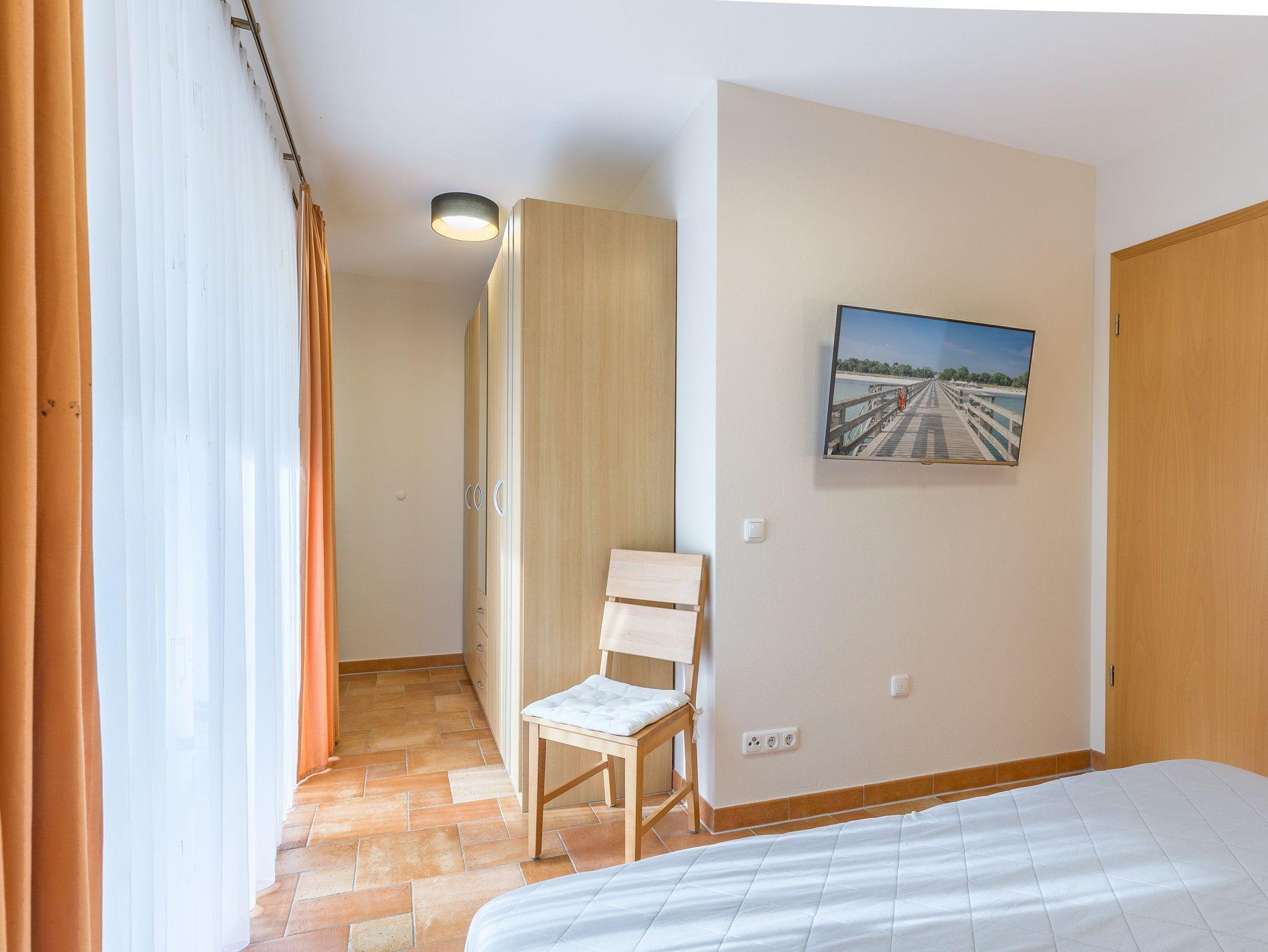 Das Wohnzimmer mit direktem Balkonzugang verfügt über einen Wohnbereich und einen Essbereich neben der Durchreiche zur komplett ausgestatteten separaten Küche mit Geschirrspüler. Der Balkon des Wohnzimmers liegt nach Nordwesten. Das Elternschlafzimmer hat ein Doppelbett und einen eigenen Balkon. Das zweite Schlafzimmer verfügt über 2 vollwertige getrennt stehende Einzelbetten.