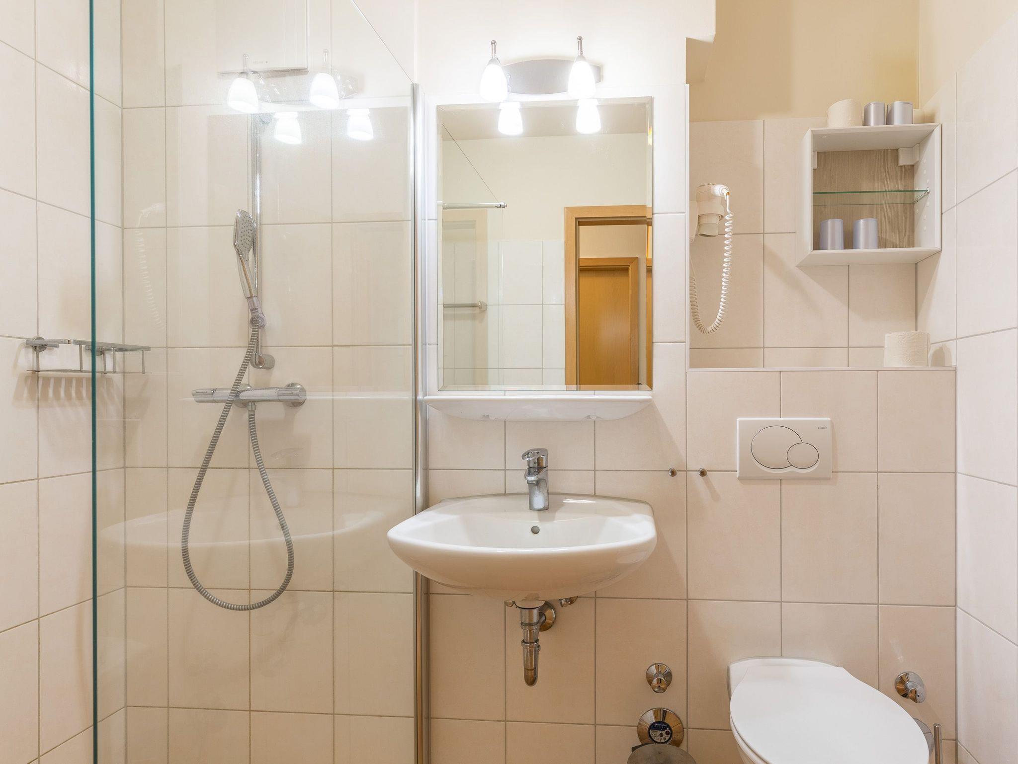 Das hochwertige Badezimmer verfügt über eine barrierefreie Dusche und ein WC. WLAN vorhanden (KEIN HighSpeed!).
