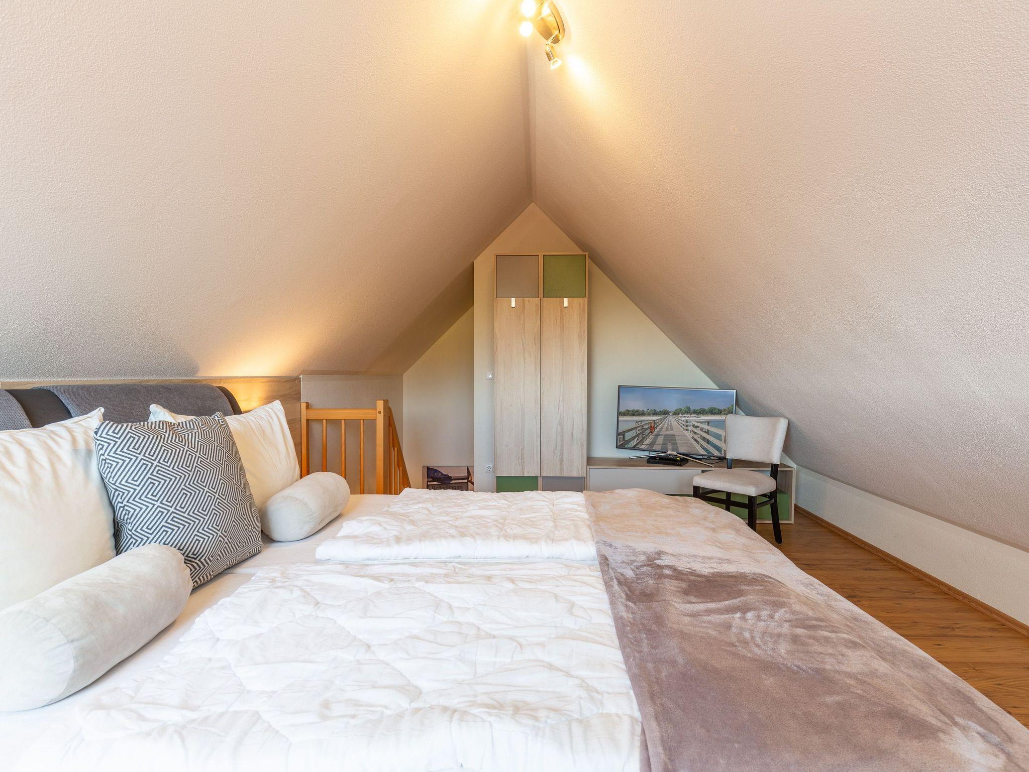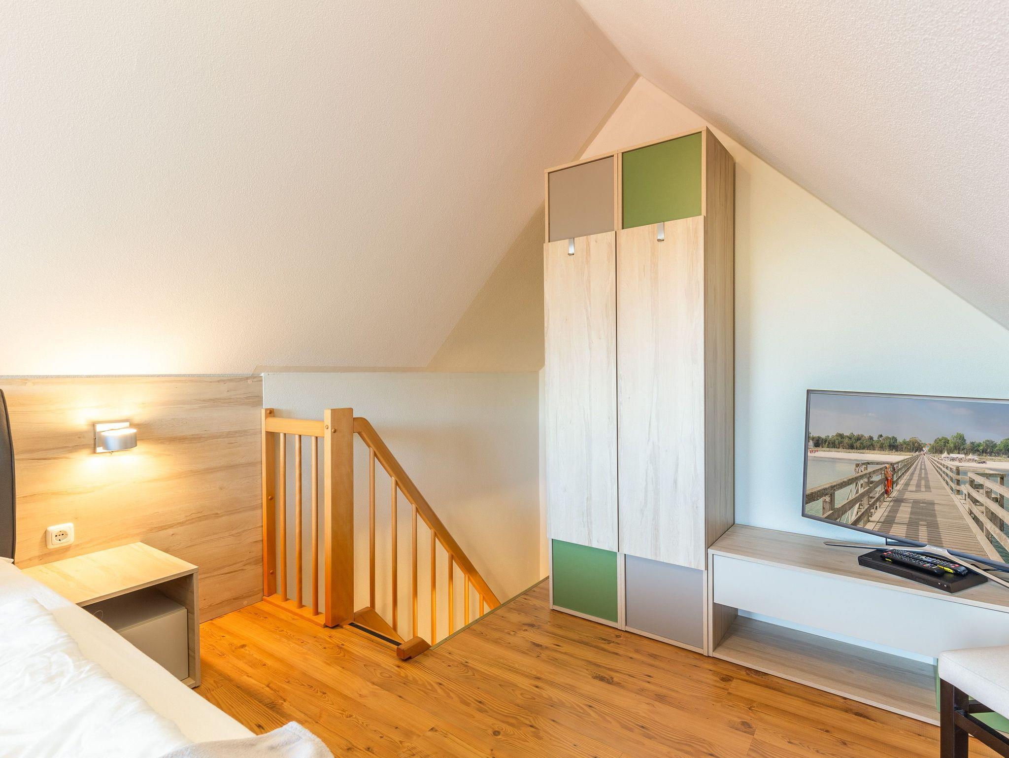 Gemütliche Maisonette-Ferienwohnung mit Balkon, nur 200 m vom Sandstrand in Boltenhagen entfernt.