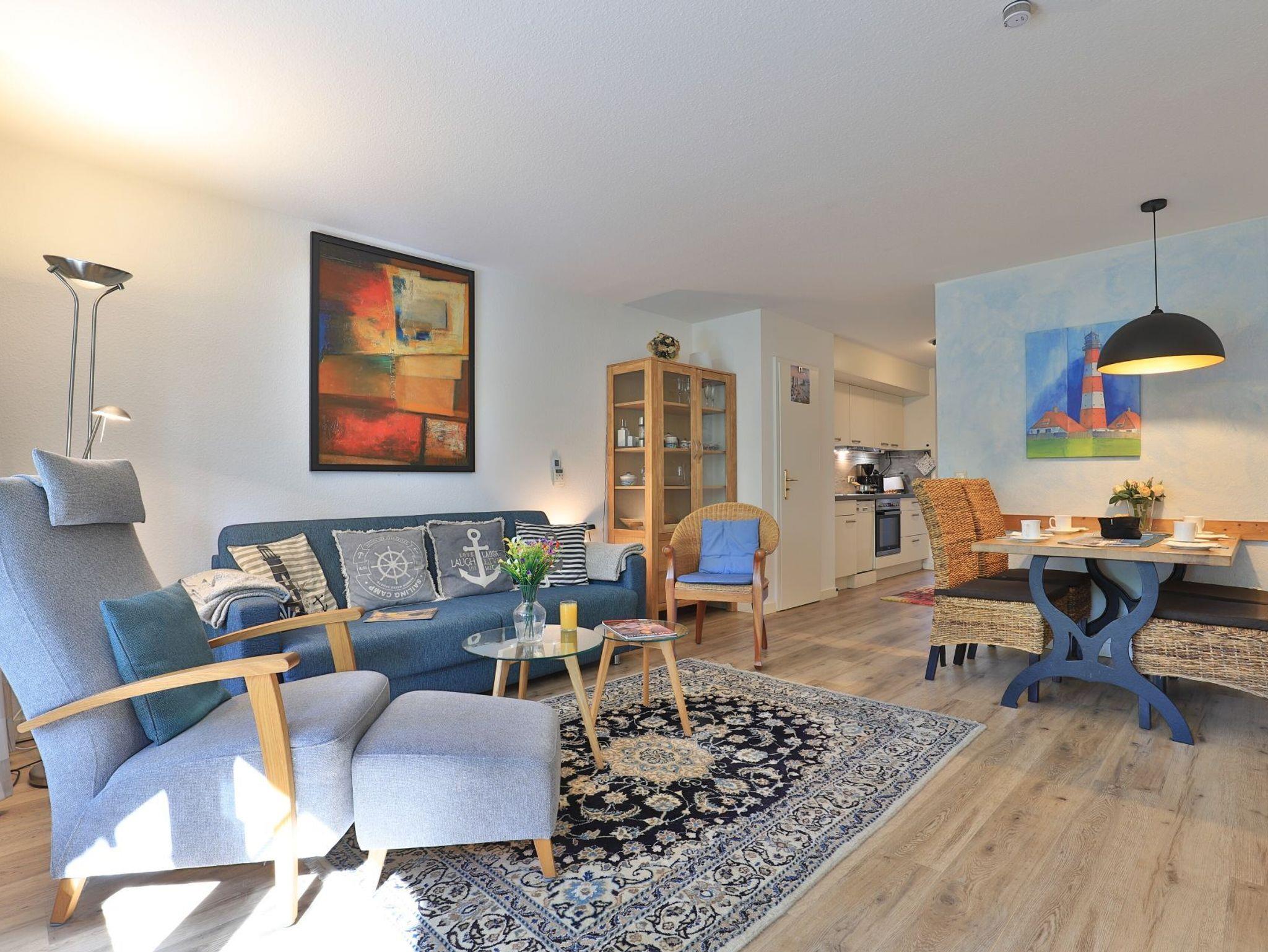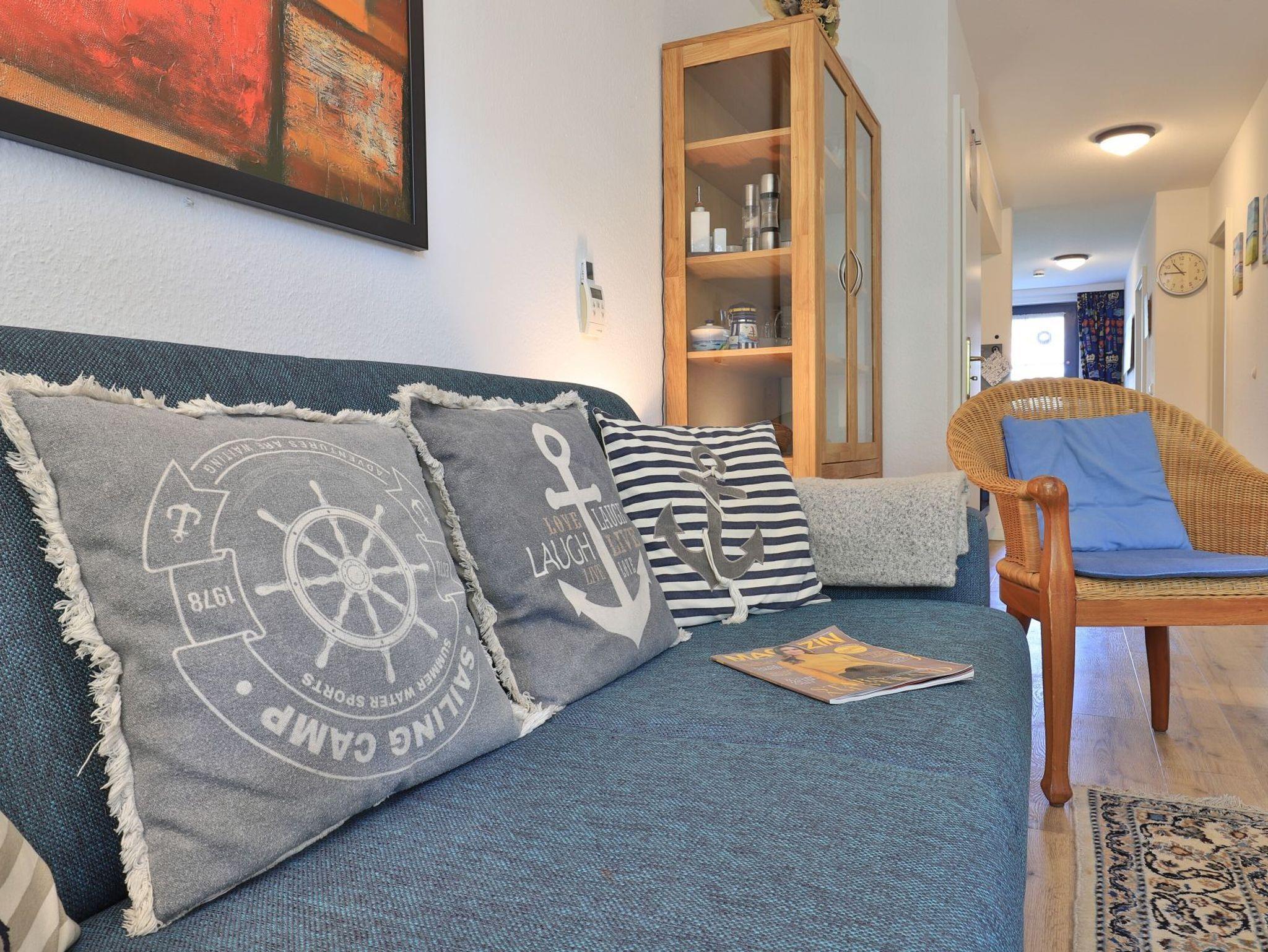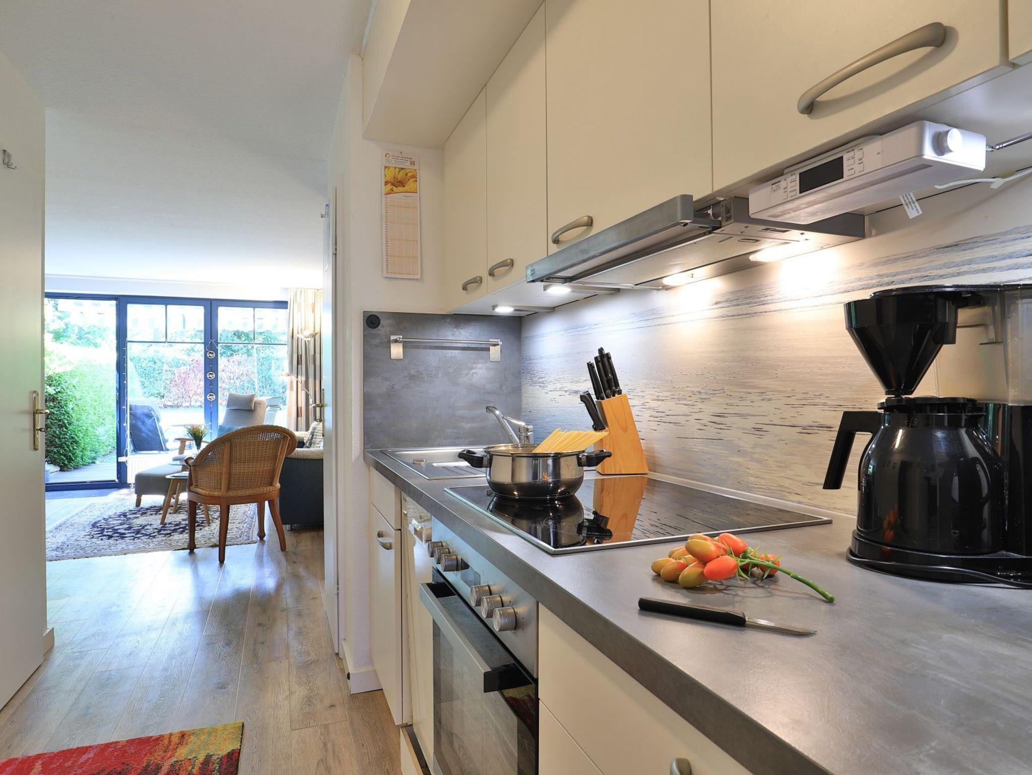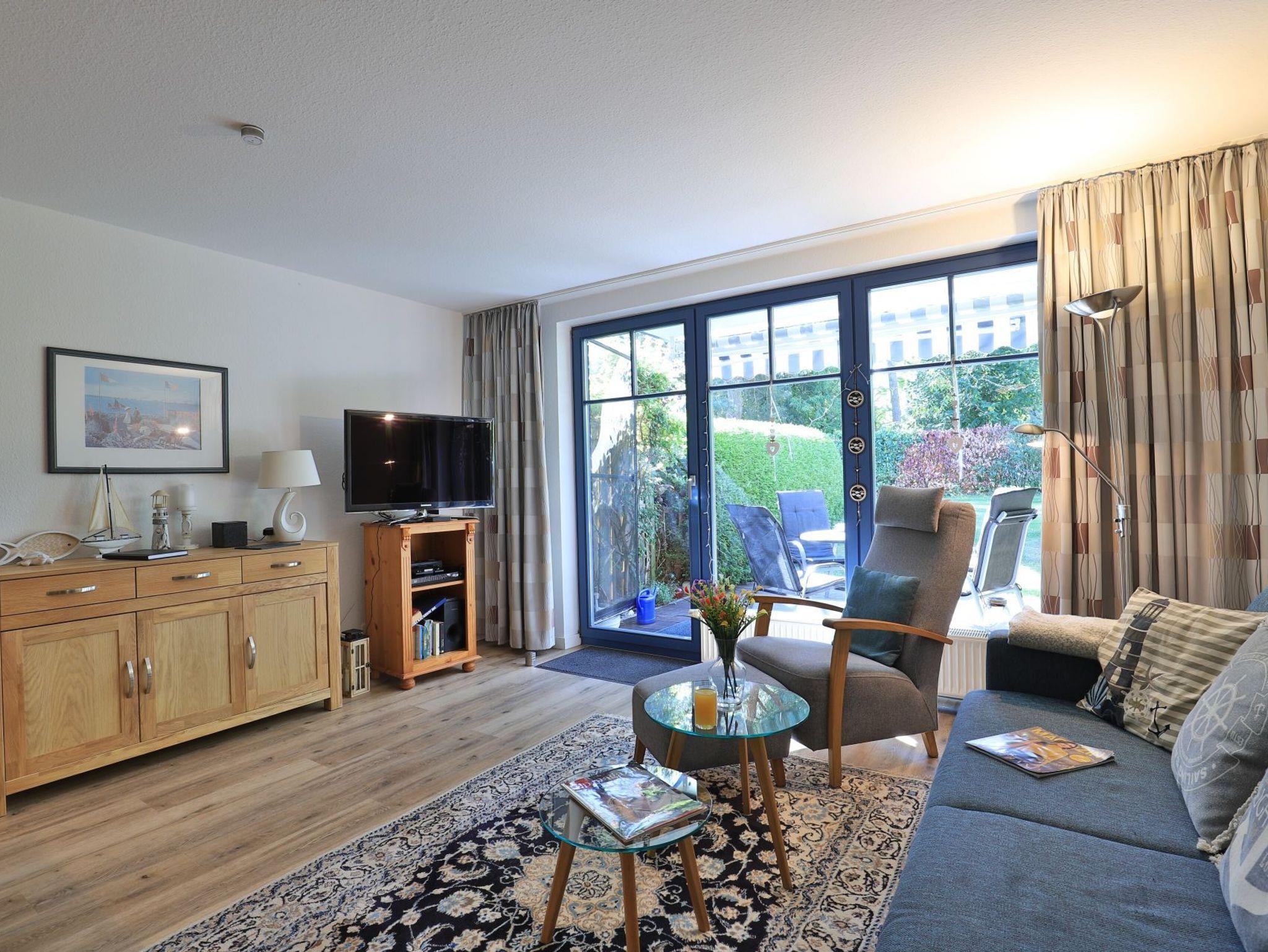 Das behagliche 2- Zimmer Ferienappartement Papillon 17-3 mit sonniger Terrasse und Gartennutzung ist bestens für unsere Gäste geeignet, die mit ihrem Hund anreisen möchten. Den Strand auch mit Hundestrand Zone erreichen Sie nur in ca. 250 Meter. Die Ferienwohnung empfängt Sie mit einer geräumigen Wohnfläche von 55qm, welche mit maximal 4 Personen belegt werden kann. Ein großzügiger Wohn-Essbereich lädt mit einem ausziehbaren Sofa, einem großen Esstisch sowie Flachbild TV, DVD-Player und Musikanlage zum Entspannen ein. Der Internetzugang über WLAN ist kostenfrei. Die in den Wohnraum integrierte Küchenzeile ist ausgestattet mit Herd, Backofen, Kühlschrank, Spülmaschine sowie Kleingeräten Kaffeemaschine, Toaster, Wasserkocher. Ein separates Schlafzimmer mit zwei Einzelbetten und Kleiderschrank ist vorhanden.
