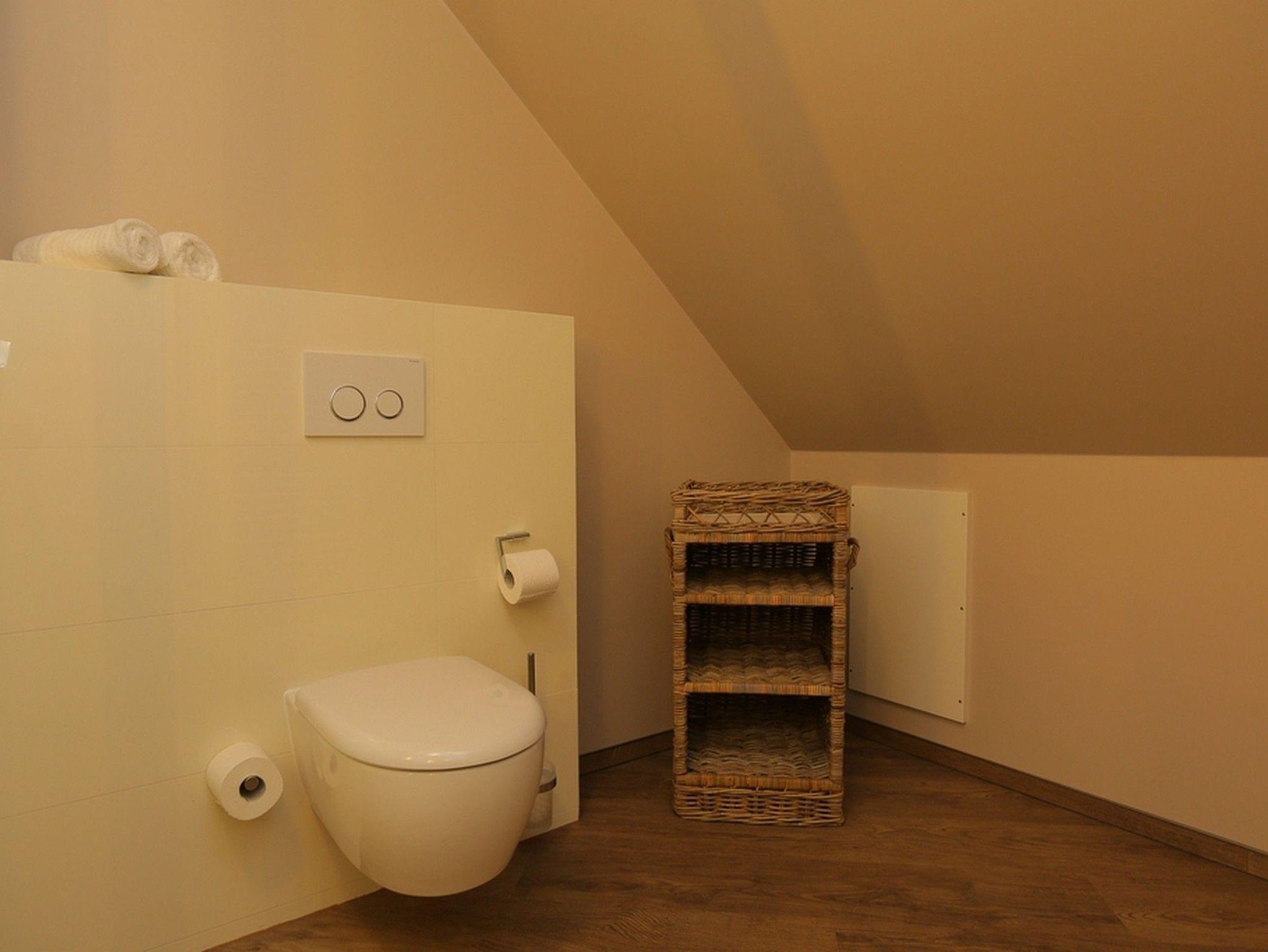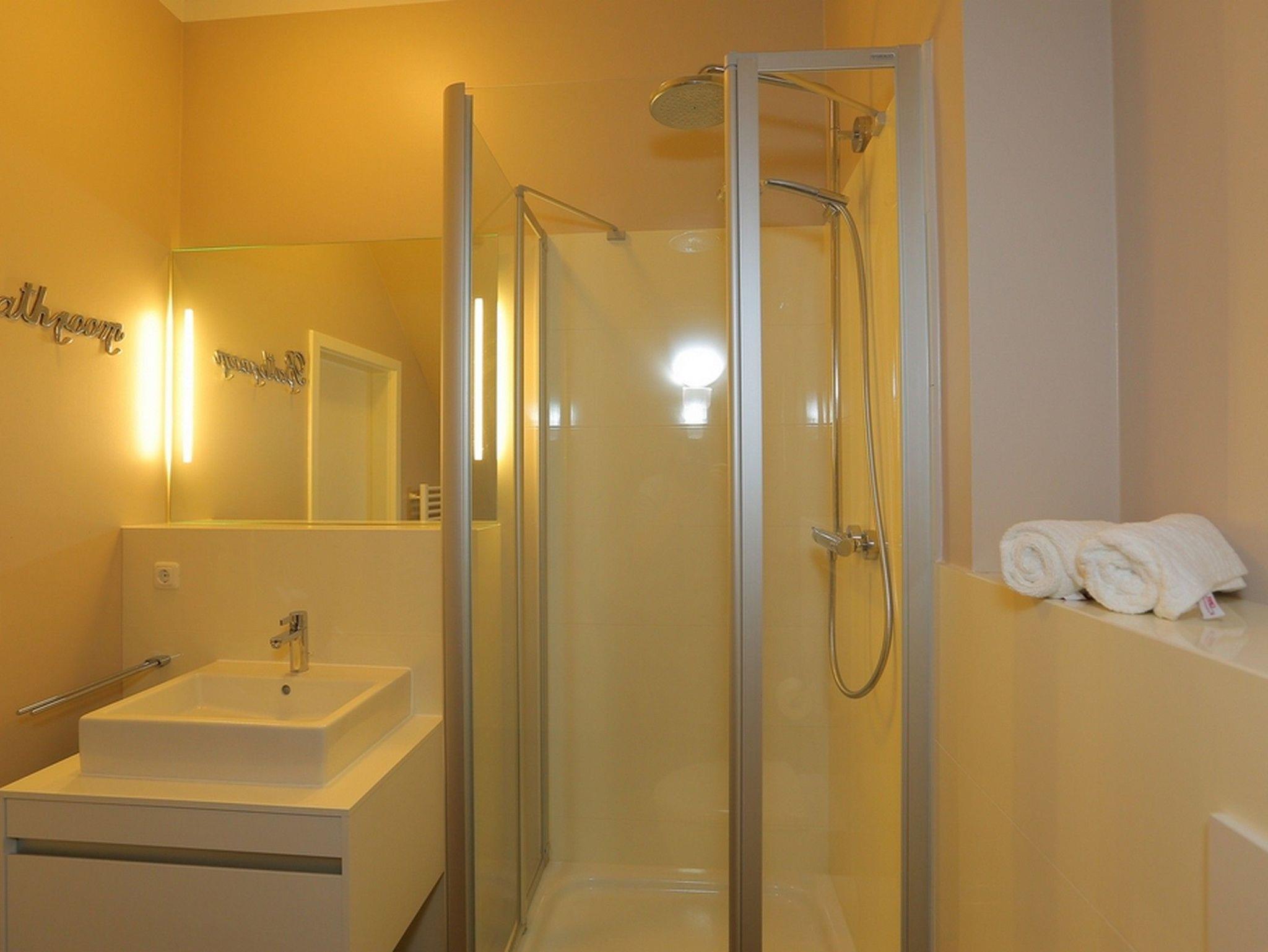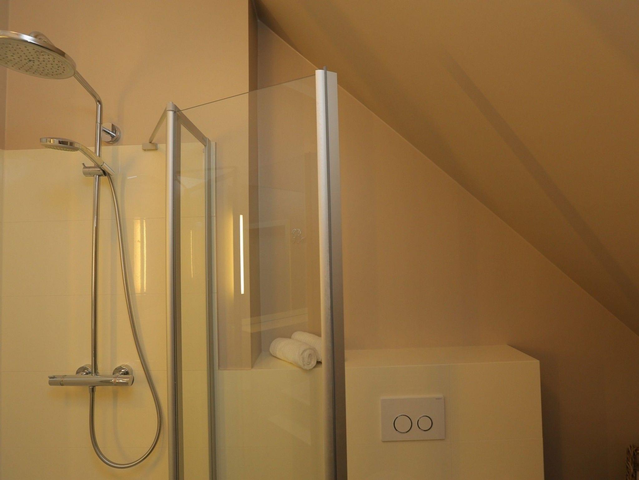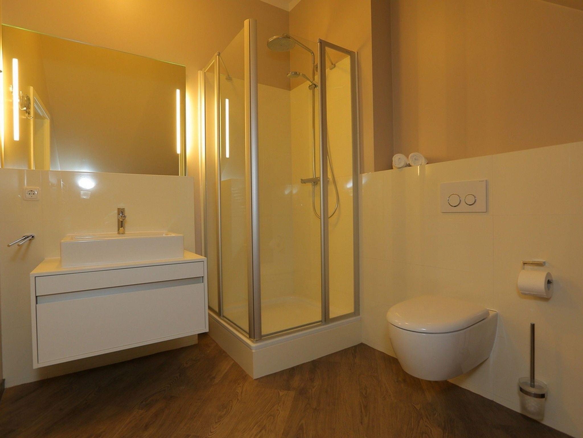 Ein modernes Duschbad mit WC komplettiert die geschmackvolle Nichtraucherwohnung.