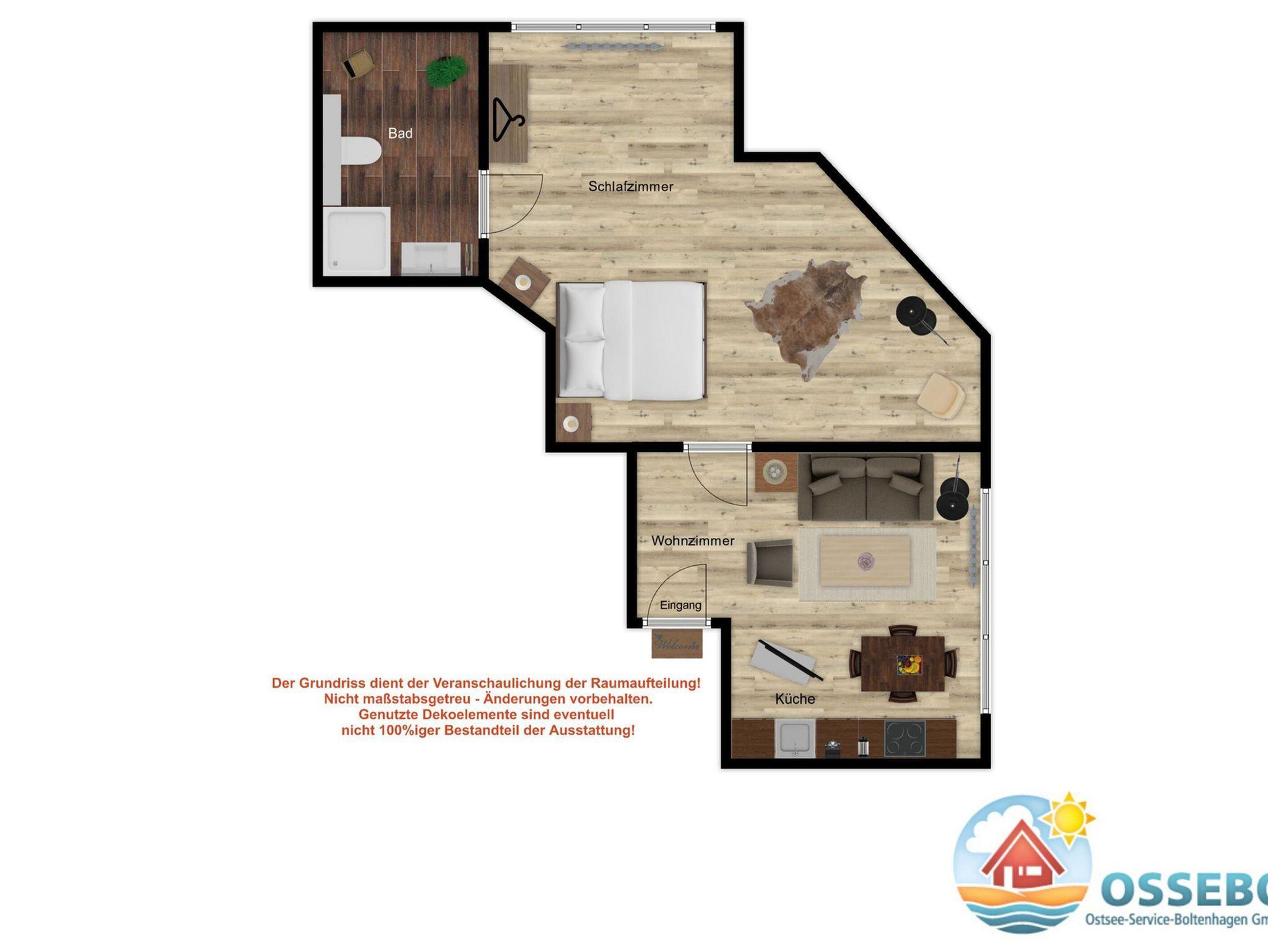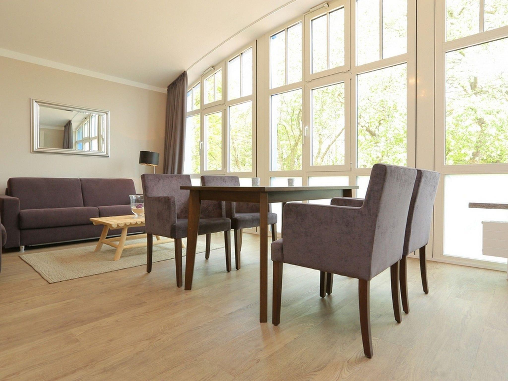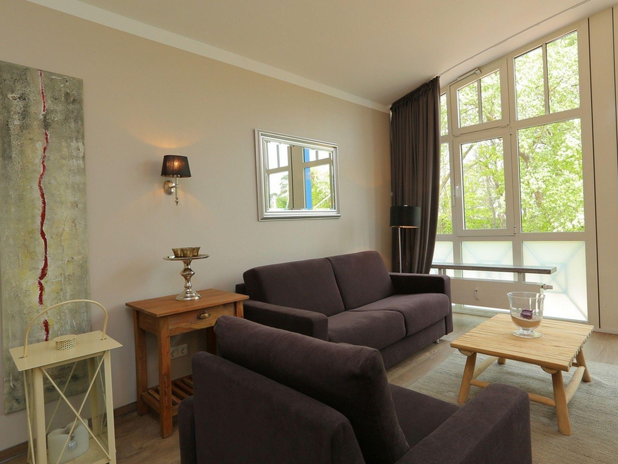 Die 2-Zimmer-Wohnung befindet sich im 1.OG (Richtung Mittelpromenade) und bietet auf rund 58qm Wohnfläche eine moderne Ausstattung für bis zu 4 Gäste.