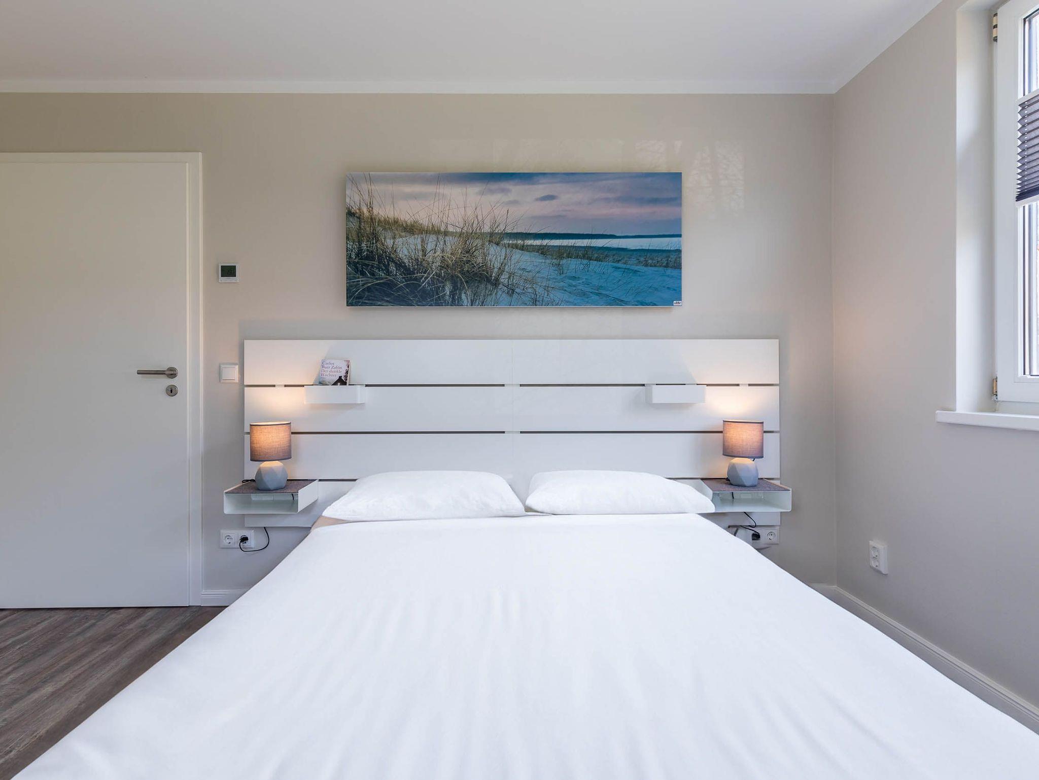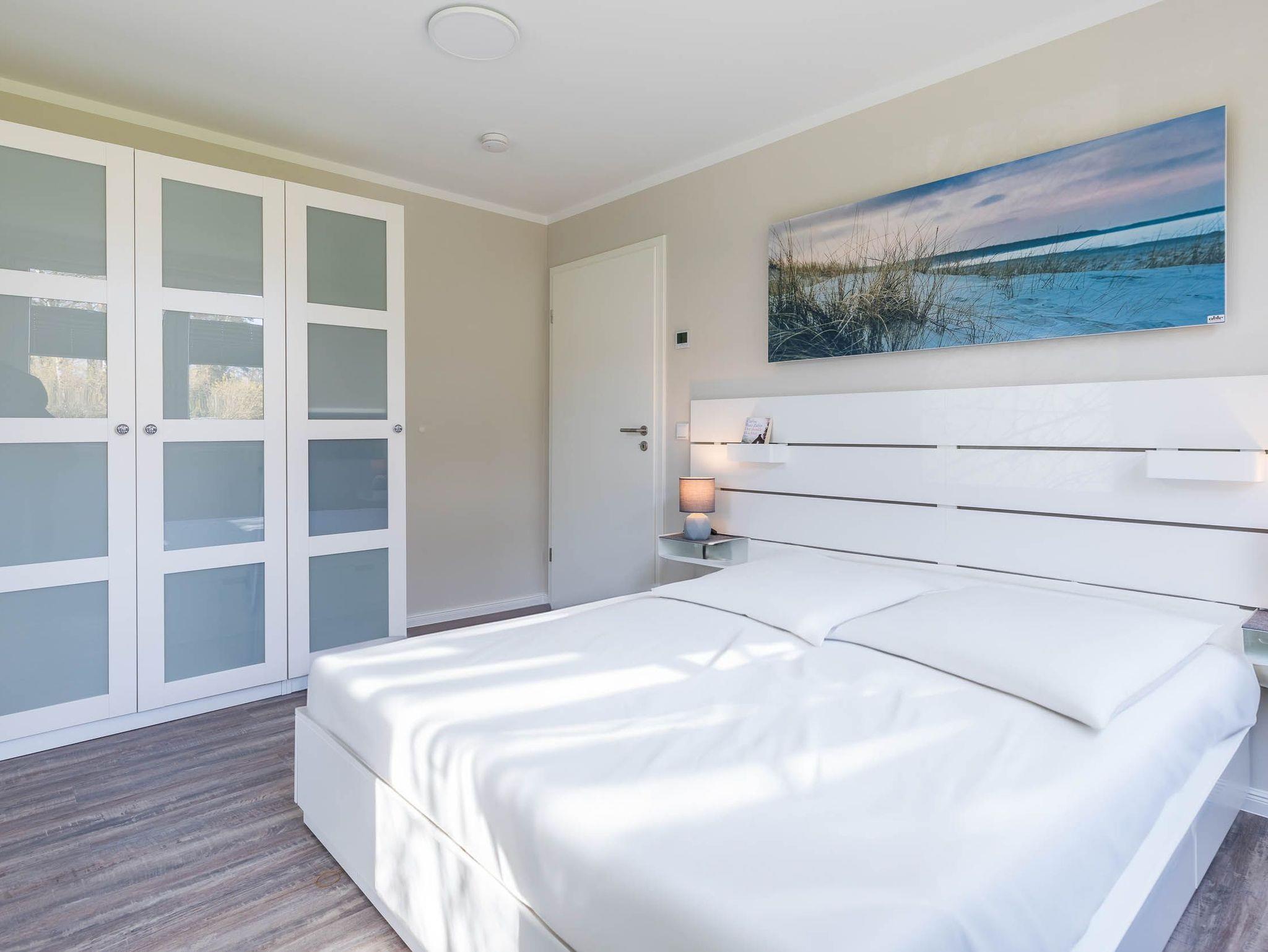 Im Schlafzimmer erwartet Sie ein bequemes Doppelbett für erholsame Nächte und ein großer Kleiderschrank bietet ausreichend Platz für Ihre Urlaubsgarderobe.