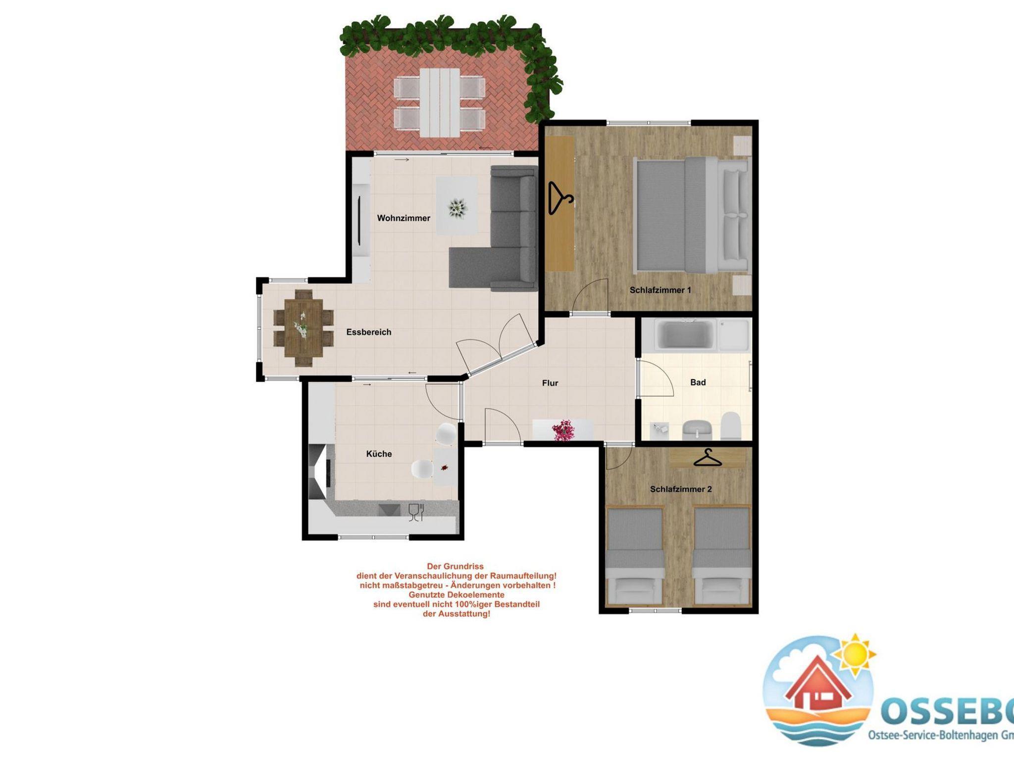 Moderne 3-Zimmer-Ferienwohnung in Boltenhagen mit Terrasse, WLAN, kostenfreiem Parkplatz und haustierfreundlich.