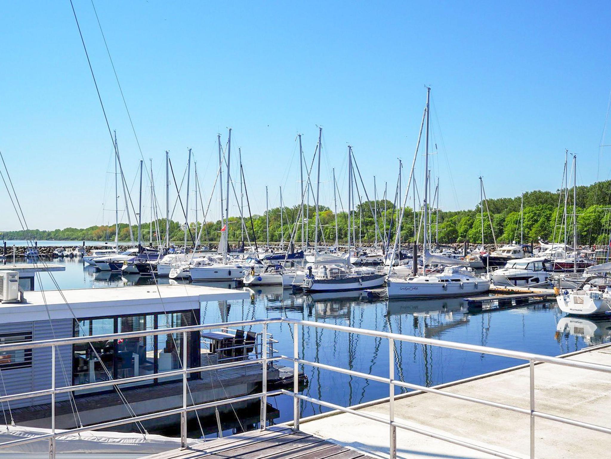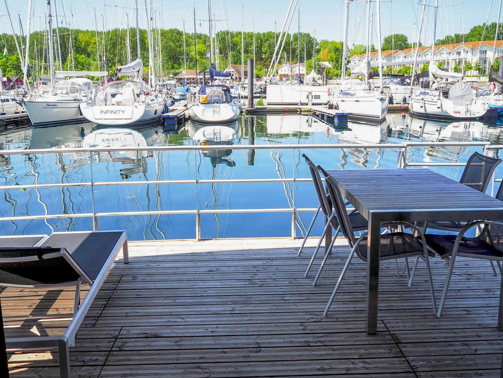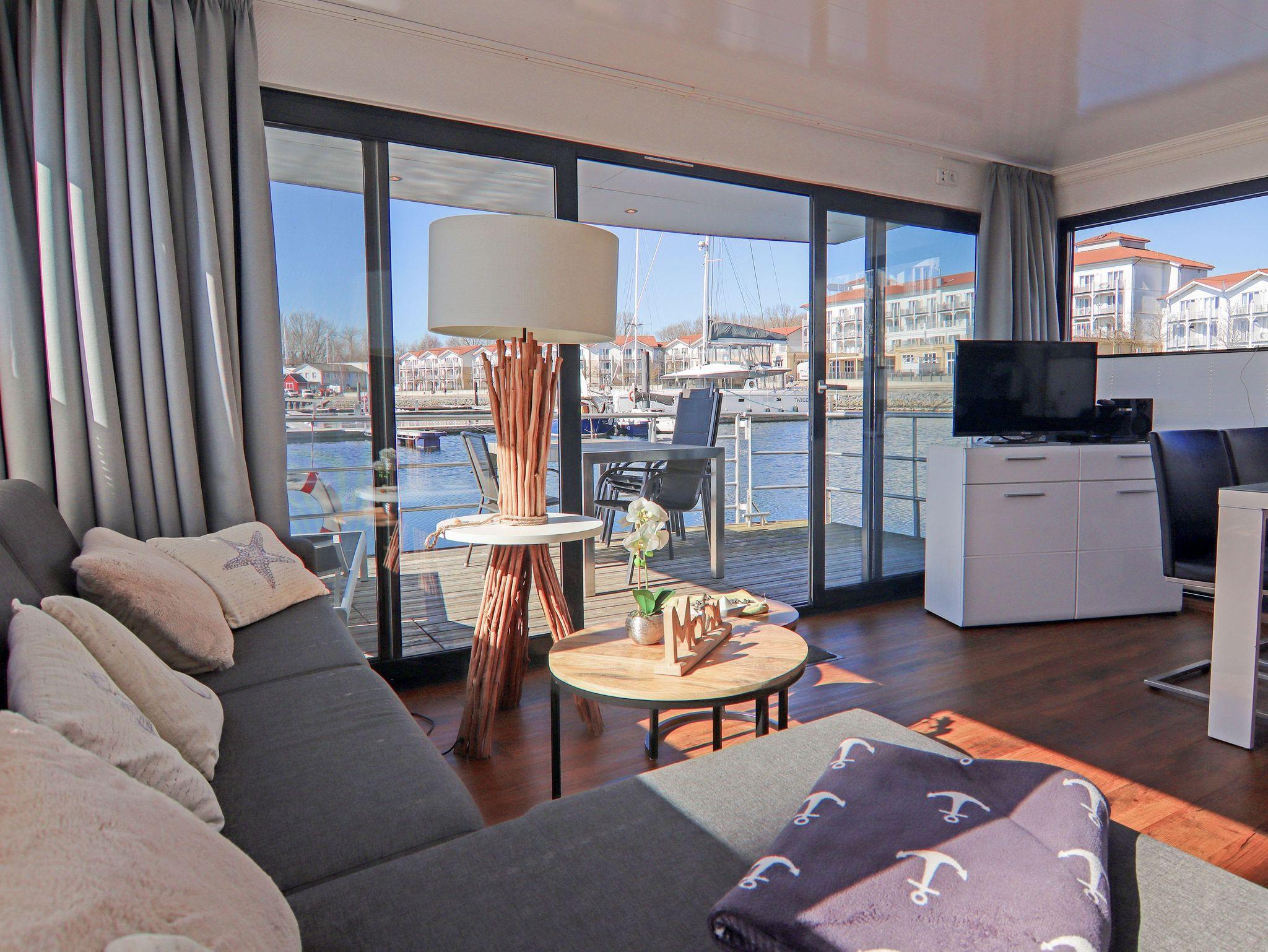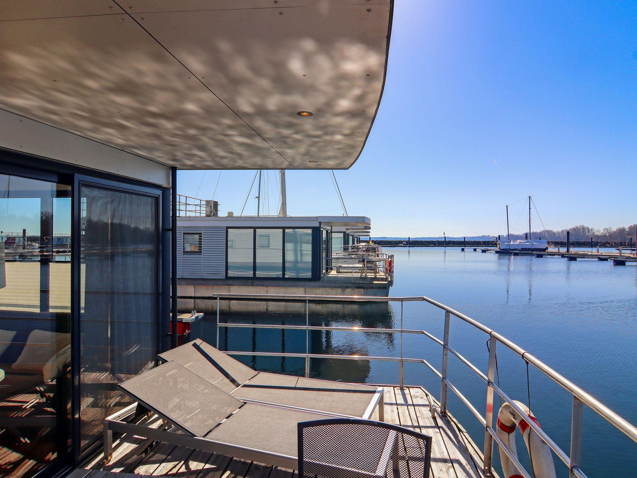 Entdecken Sie das moderne Floating House Boltenhagen mit maritimem Flair, großzügigen Terrassen und herrlichem Hafenblick.