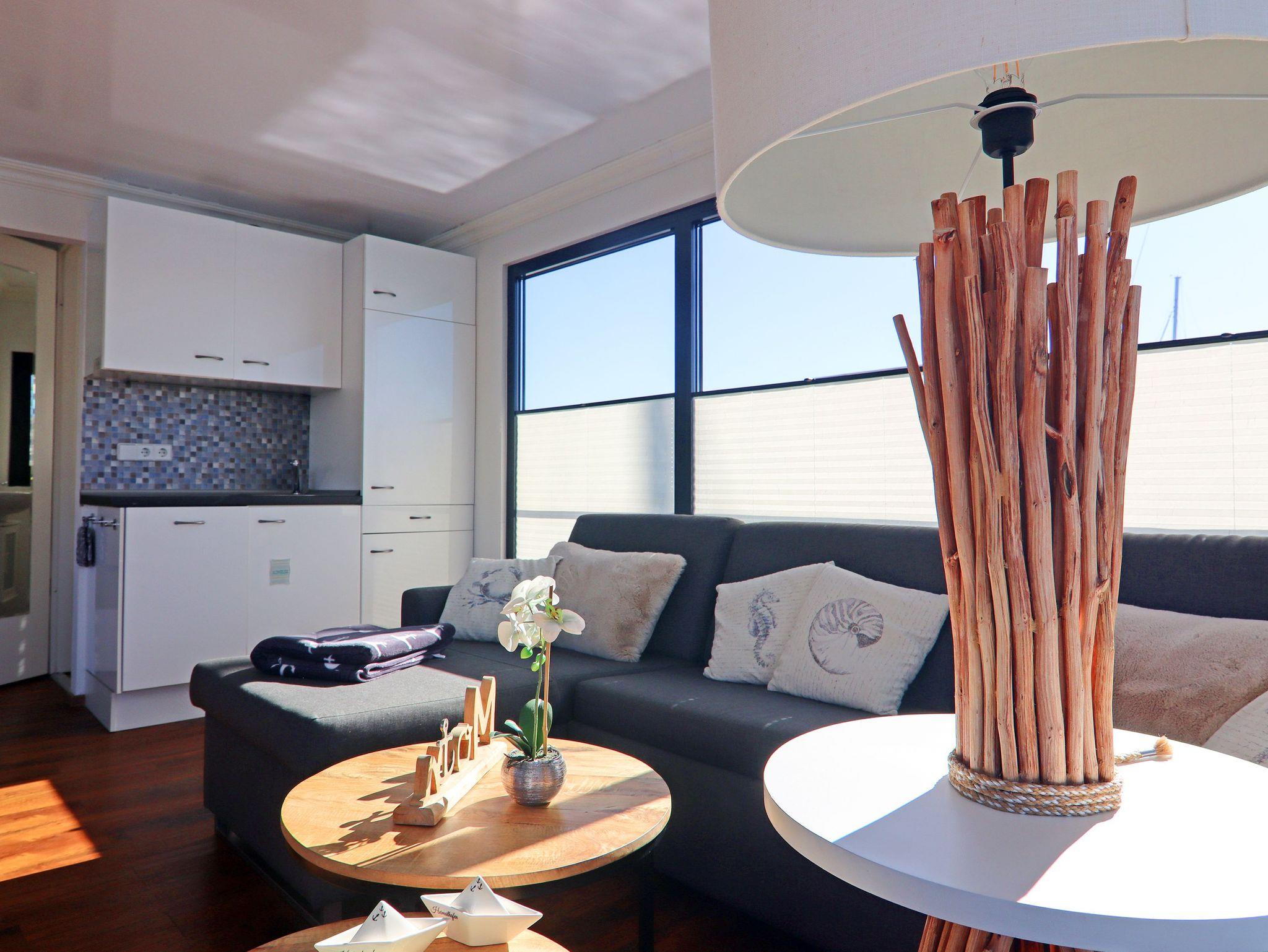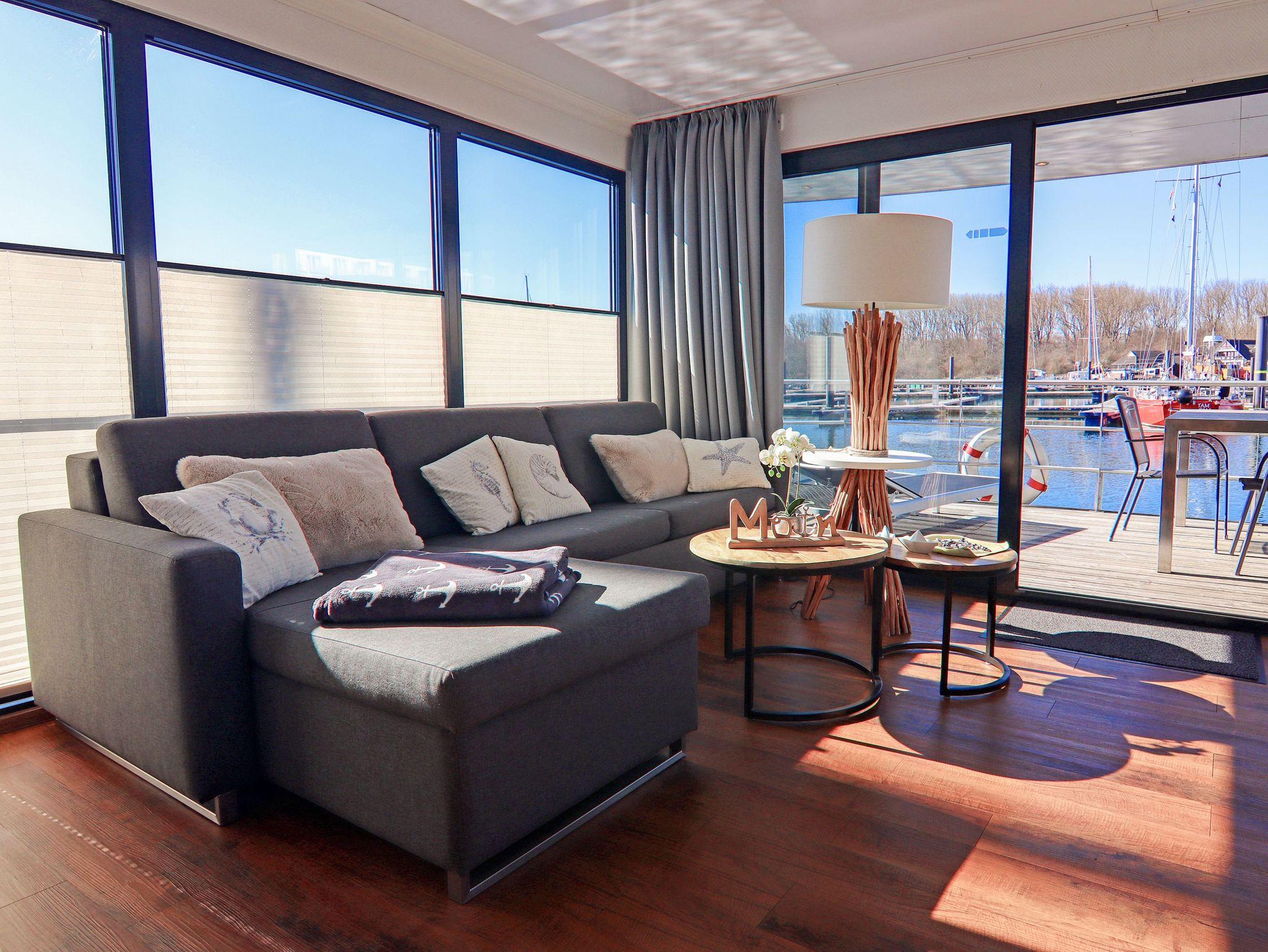 Floating Houses 44 im Ostseebad Boltenhagen bieten dir maritimes Urlaubsgefühl auf eine ganz besondere Art festliegend im Hafen und doch frei wie auf hoher See. Die modernen Hausboote sind für 3 bis 6 Personen geeignet und verbinden das ruhige Schaukeln des Wassers mit hochwertigem Wohnkomfort, viel Licht und ganz viel Luft zum Durchatmen. Jedes Hausboot verfügt über eine überdachte Terrasse am Bug und eine großzügige Dachterrasse ideal, um in den Tag zu starten, den Abend ausklingen zu lassen oder einfach die Sonne über dem Wasser zu genießen. Die Wohnbereiche sind offen gestaltet, mit gemütlicher Sofaecke, moderner Küchenzeile, Essplatz und großen Fensterfronten, die dir das Gefühl geben, direkt draußen zu sein. Ein bis zwei Schlafzimmer und ein hochwertiges Bad machen die Boote zum perfekten Rückzugsort für Paare, Familien oder Freunde. Ein Parkplatz pro Hausboot steht dir natürlich zur Verfügung.