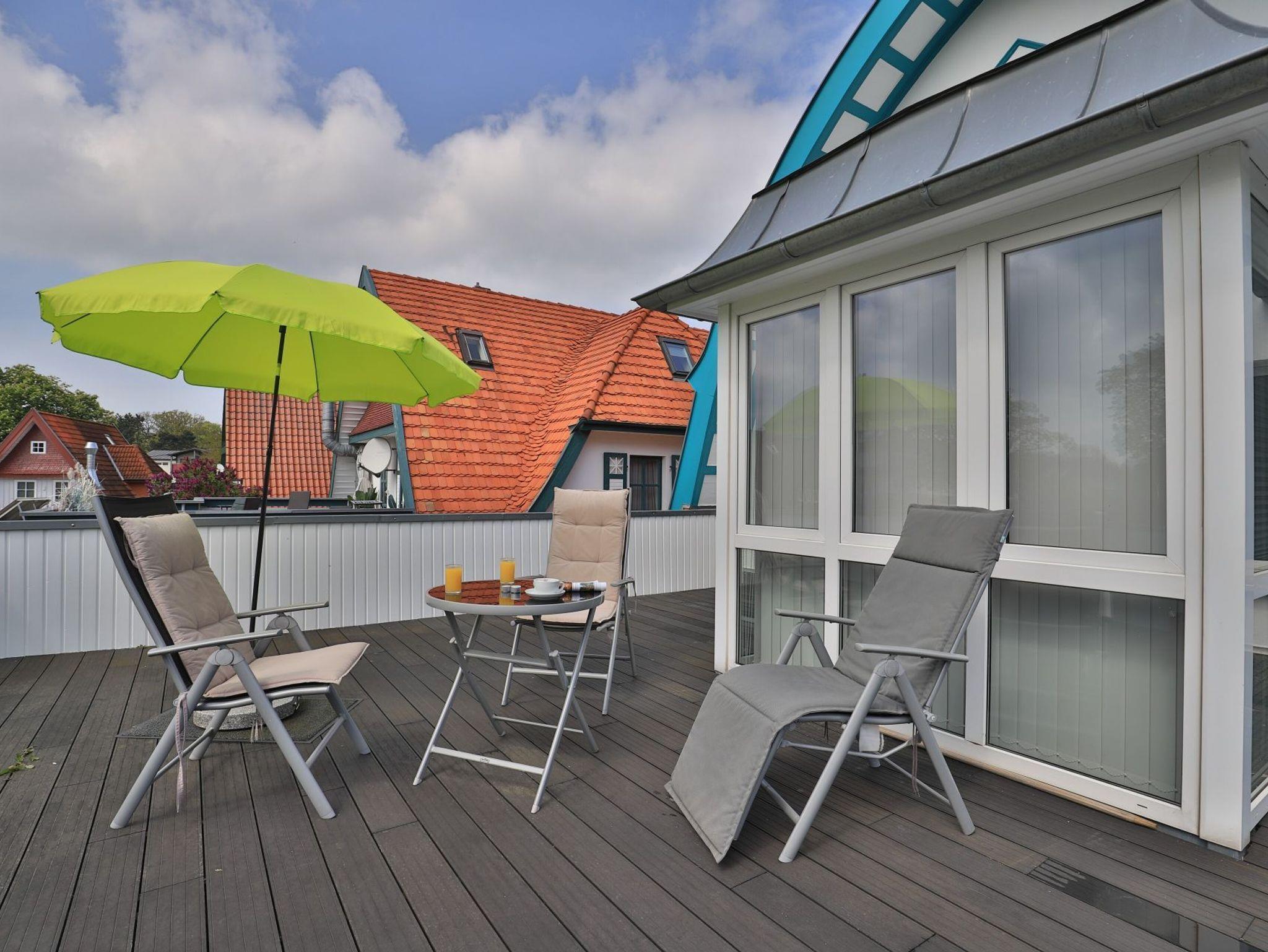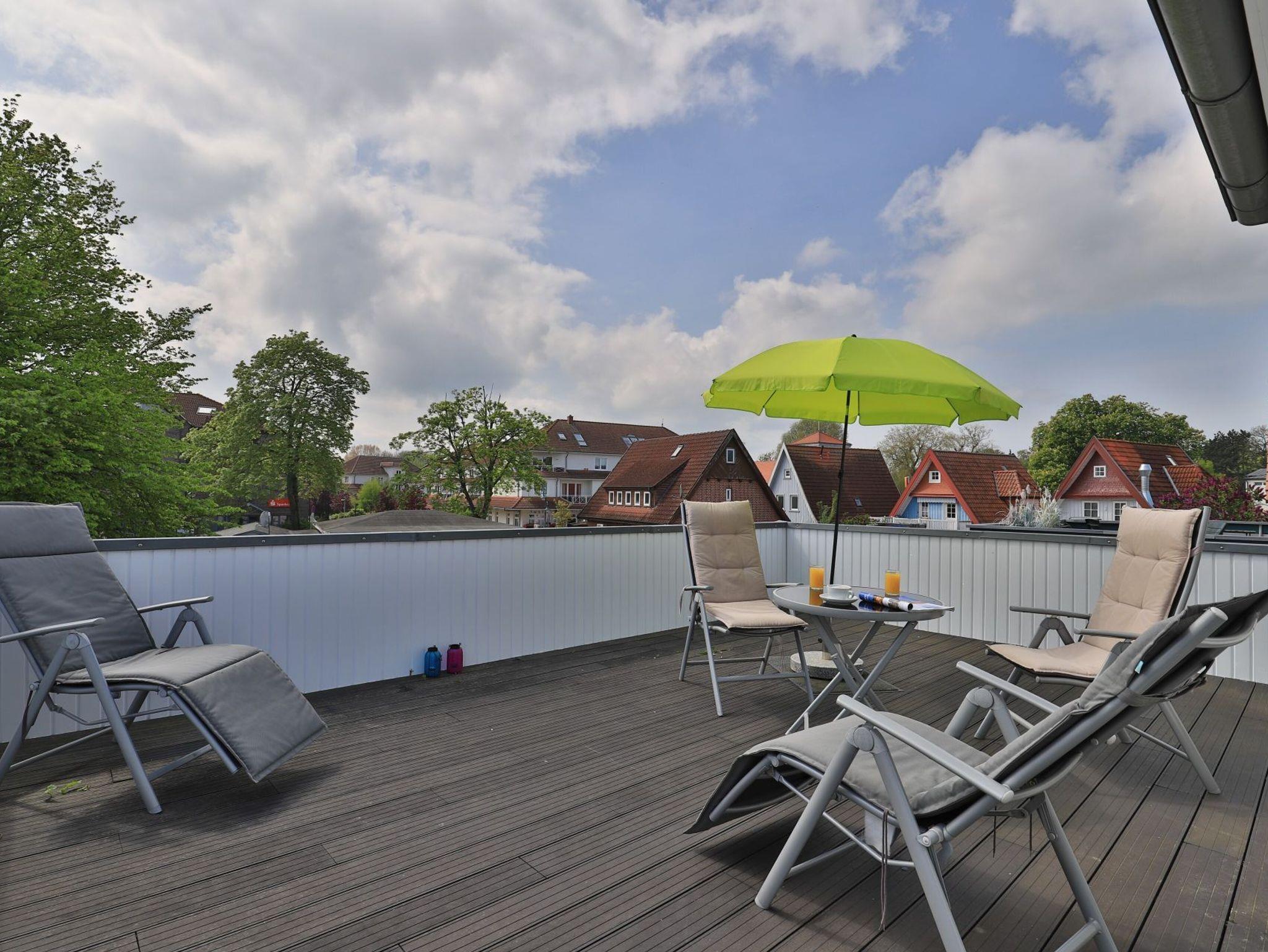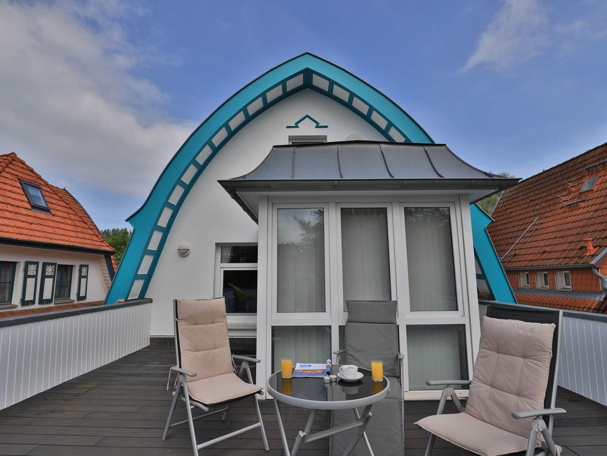 Charmante Maisonette-Ferienwohnung mit Meerblick und großer Dachterrasse, nur 40 Meter vom Strand in Boltenhagen entfernt.