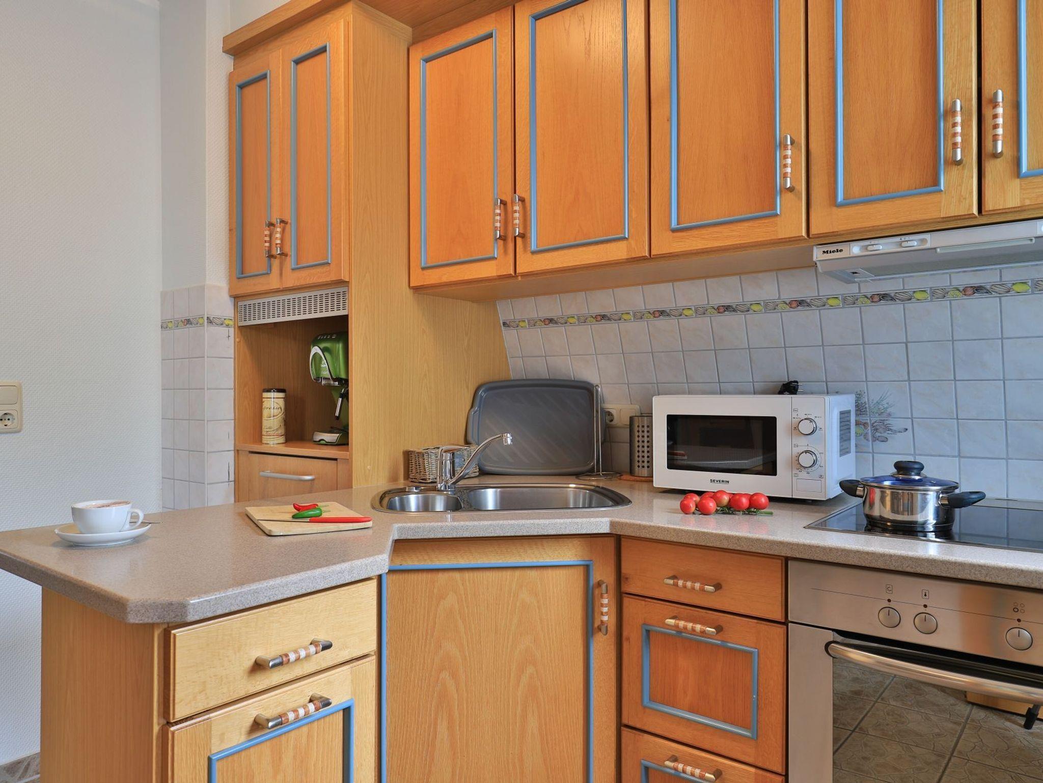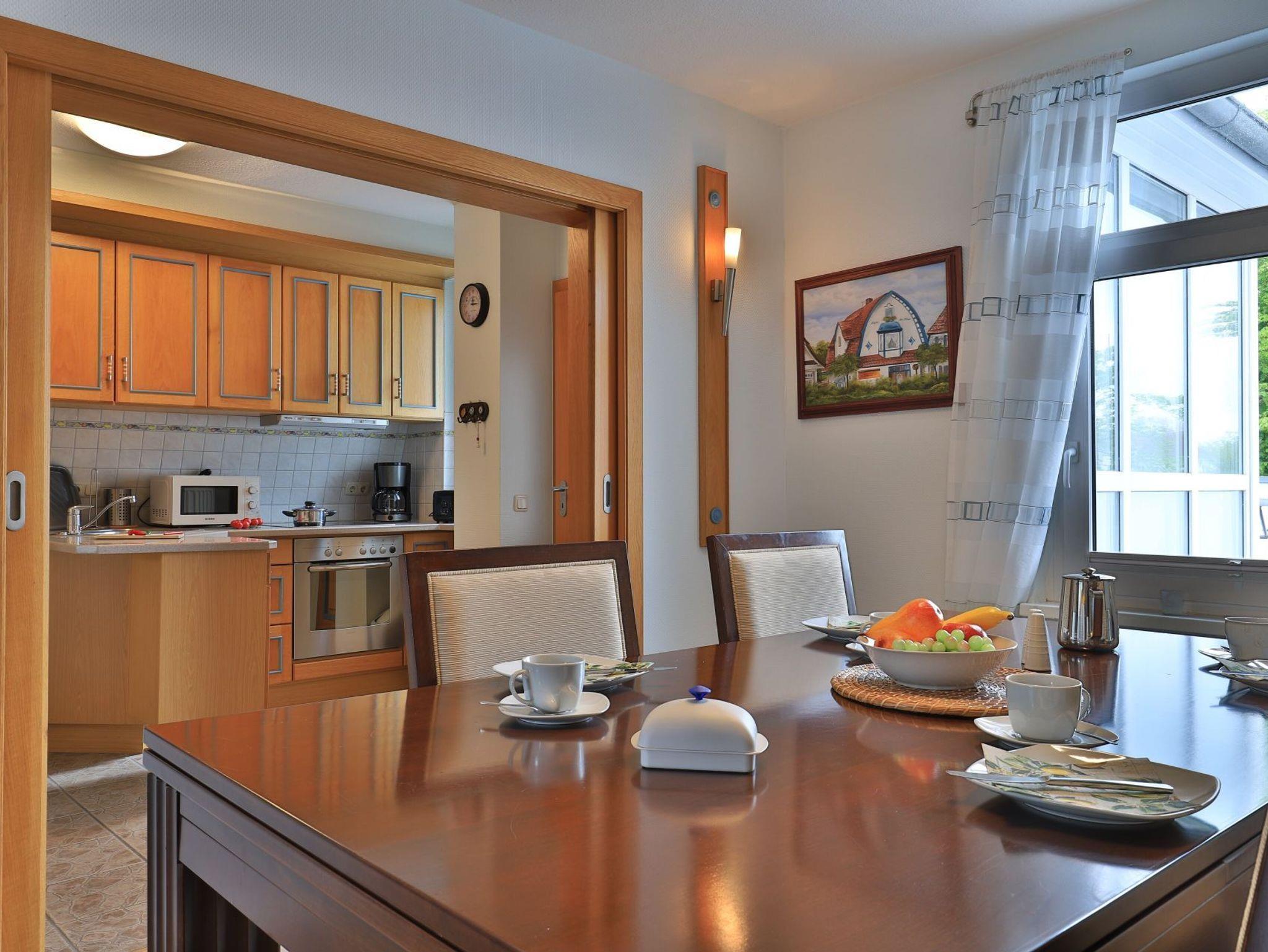 Die charmante 2-Zimmer-Maisonetten Ferienwohnung liegt 40 Meter zur Ostsee und bietet für bis zu 2 Personen eine Wohnfläche von 80qm. Sie bewohnen das 1. Obergeschoss über zwei Ebenen. -Kleines Haus am Meer- verfügt über einen separaten Eingang. Die nach Süd-/West und somit zum Ortszentrum ausgerichtete Dachterrasse ist 12qm groß -saisonal möbliert. Hell und freundlich empfängt Sie der geräumige Wohn-/ Essbereich, von dem Sie den Blick auf die Ostsee genießen können. Des Weiteren ist im Wohnbereich ein bequemes Sofa wie auch eine Sitzbank im Retro Style und ein Esstisch vorhanden. Zur technischen Ausstattung gehören ein Fernseher, Musikanlage, WLAN kostenfrei. Die separate Küche ist gut ausgestattet mit Ceranfeldherd, Backofen, Dunstabzug, Kühlschrank, Kaffeemaschine, Toaster u.s.w. In der 2. Wohnebene befinden sich ein großes Schlafzimmer mit Doppelbett und Kleiderschrank sowie ein modernes Duschbad. Für Ihren PKW steht ein kostenfreier Stellplatz zur Verfügung. Es handelt sich um eine Nichtraucher Wohnung, in der Haustiere nicht gestattet sind. Für Gäste, die kurze Wege bevorzugen ist dieses Feriendomizil in direkter Kurparklage geradezu ideal. Bummeln Sie entlang der Mittelpromenade vorbei an kleinen Boutiquen bis hin zum Küstenwäldchen.