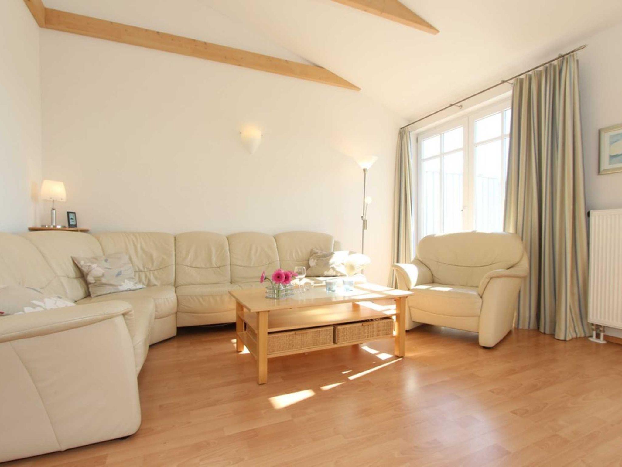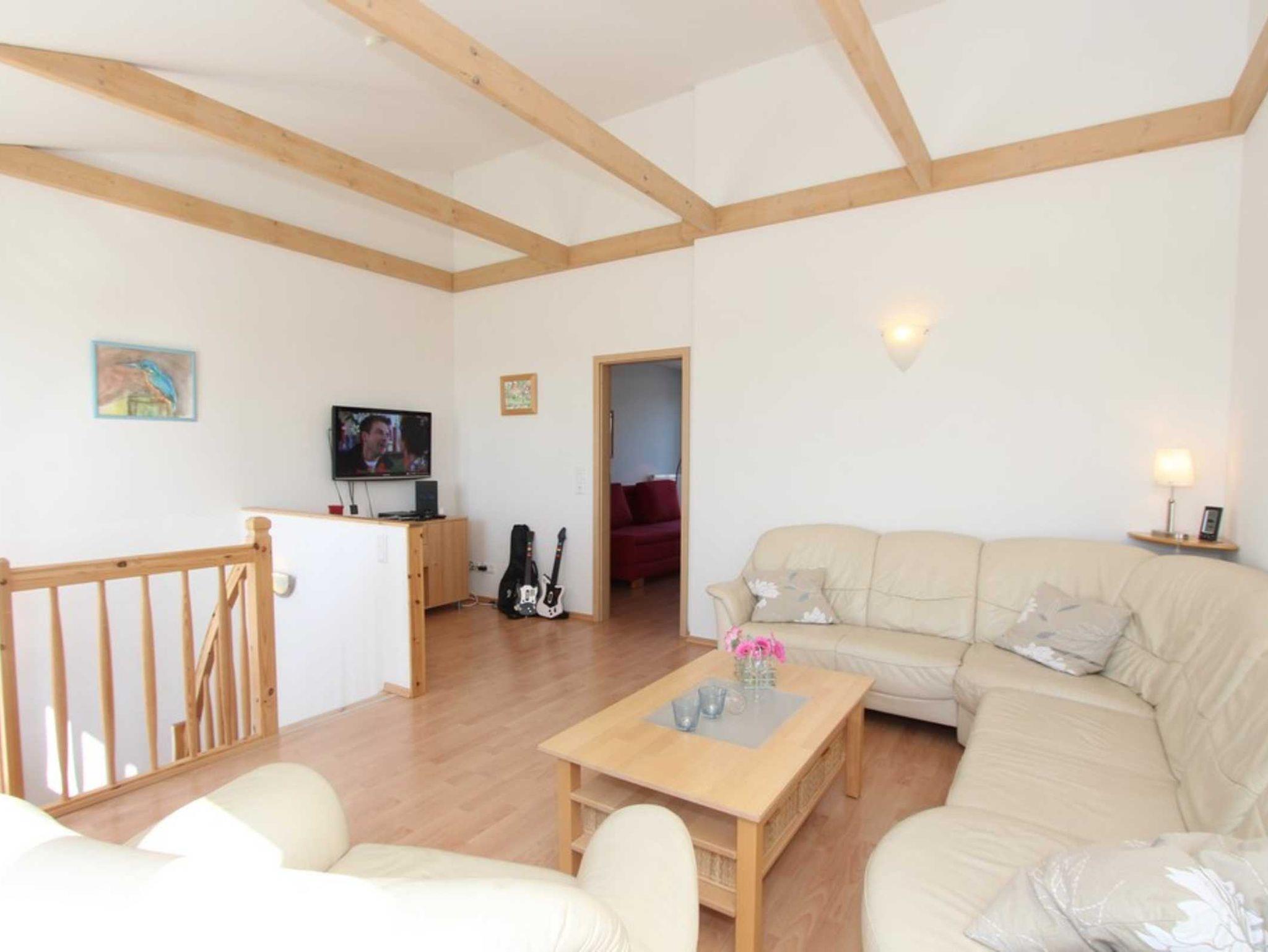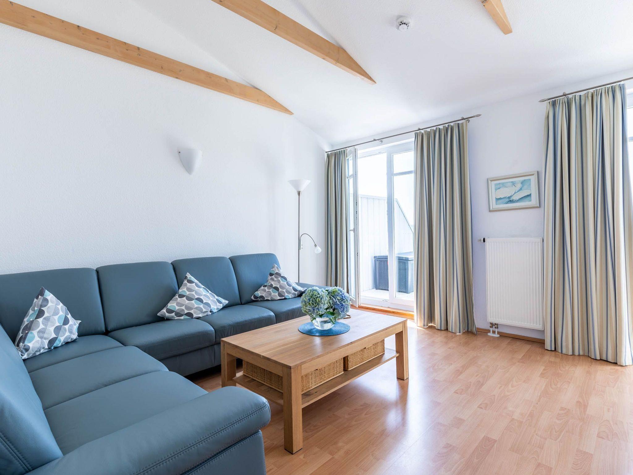 Der großzügige Wohnbereich als offene Galerie bietet im DG neben einer gemütlichen Couchgarnitur sowohl SAT-TV (Flatscreen) als auch einen DVD-Player. Von hier aus begehen Sie den großen möblierten Südwest-Balkon.