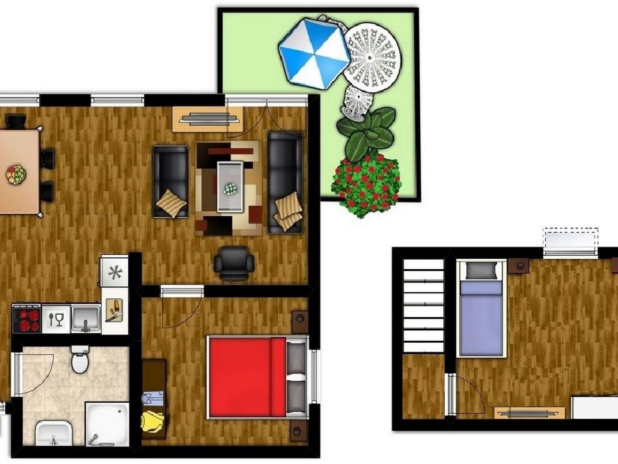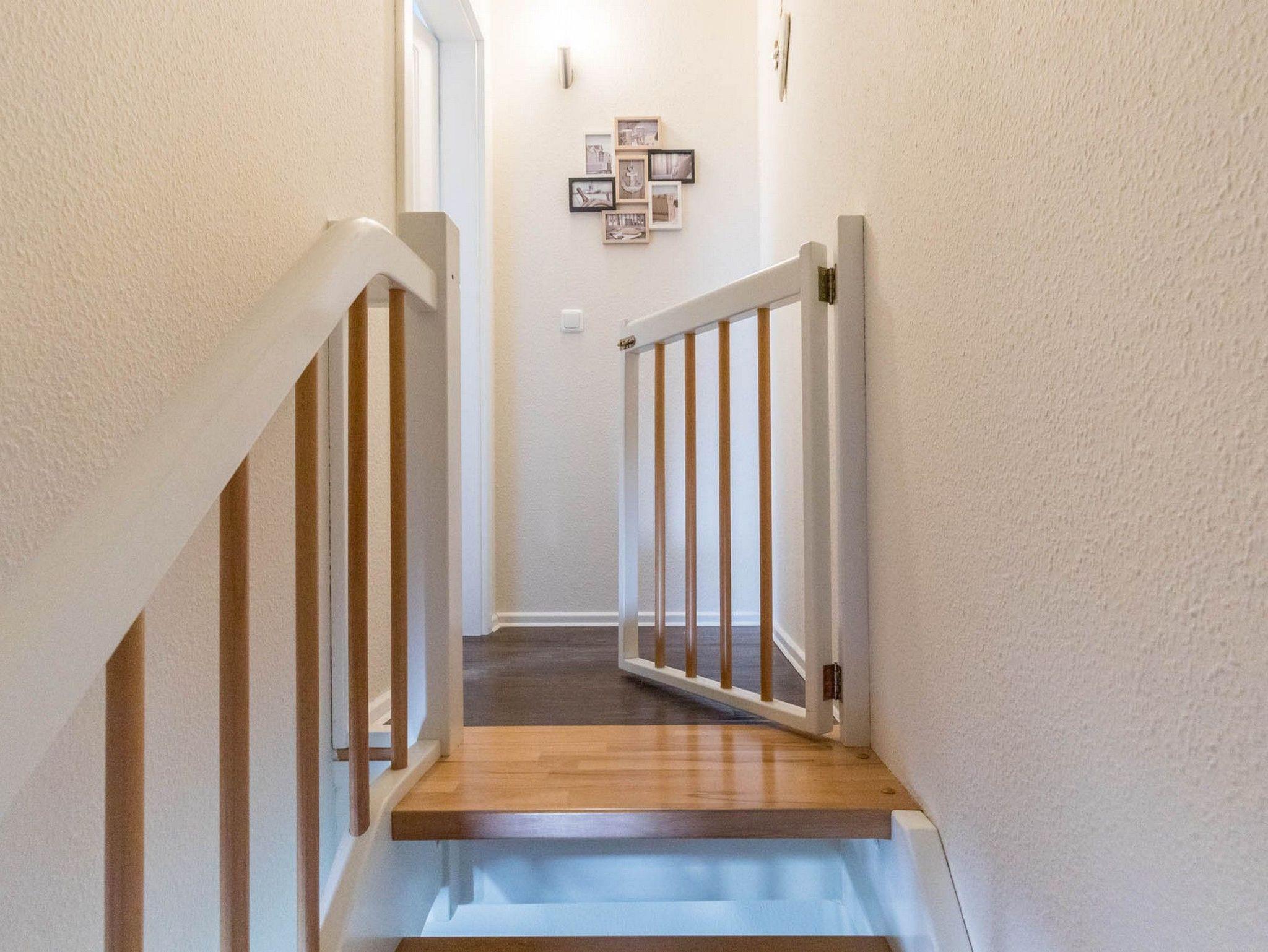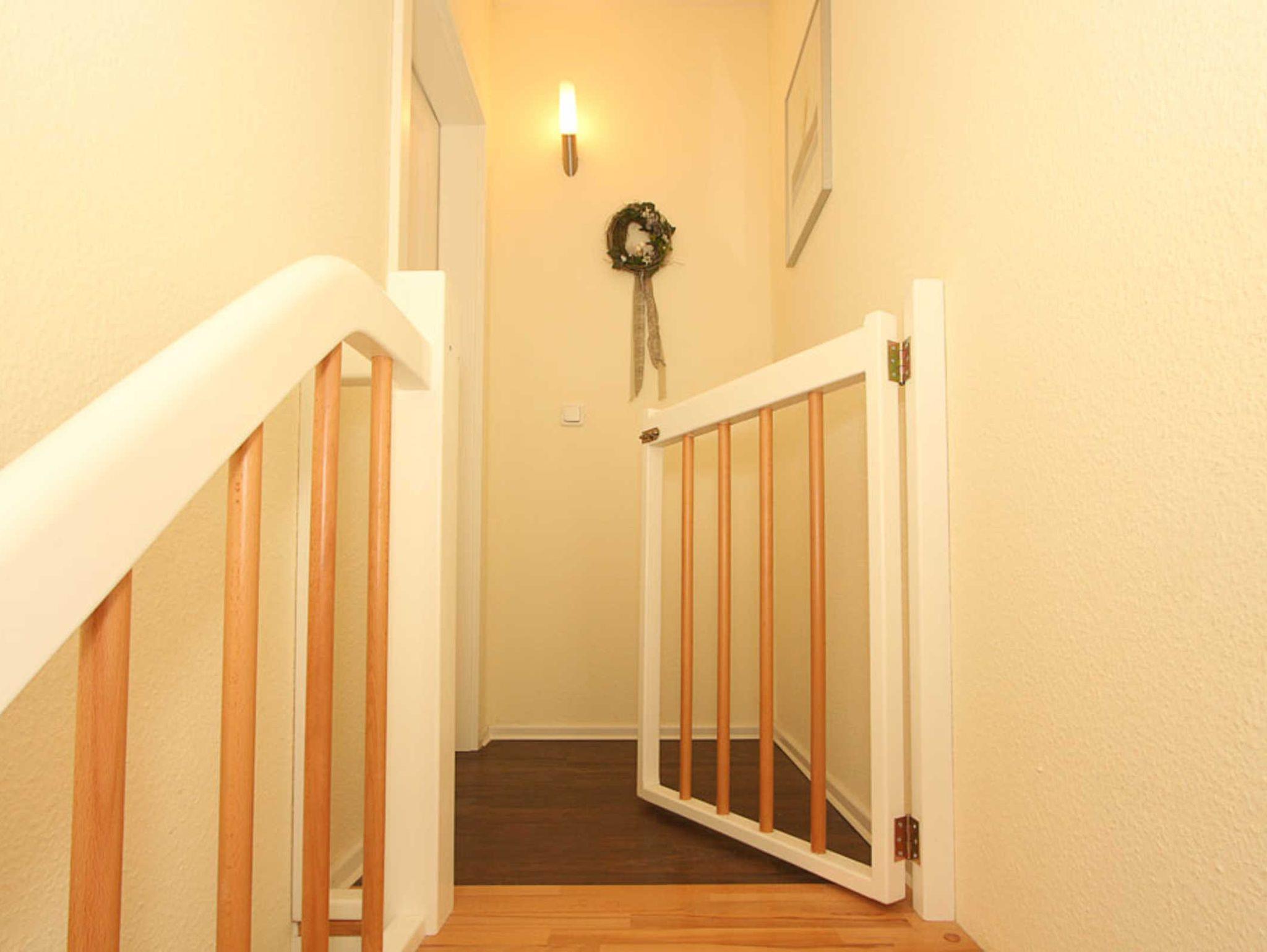 Familienfreundlichkeit wird in der Nichtraucher-Wohnung groß geschrieben. Ein Kinderreisebett mit passender Matratze und ein Hochstuhl sind für unsere kleinsten Gäste zur kostenfreien Nutzung vorhanden. Auch ein Treppenschutzgitter befindet sich am oberen Ende der Treppe.