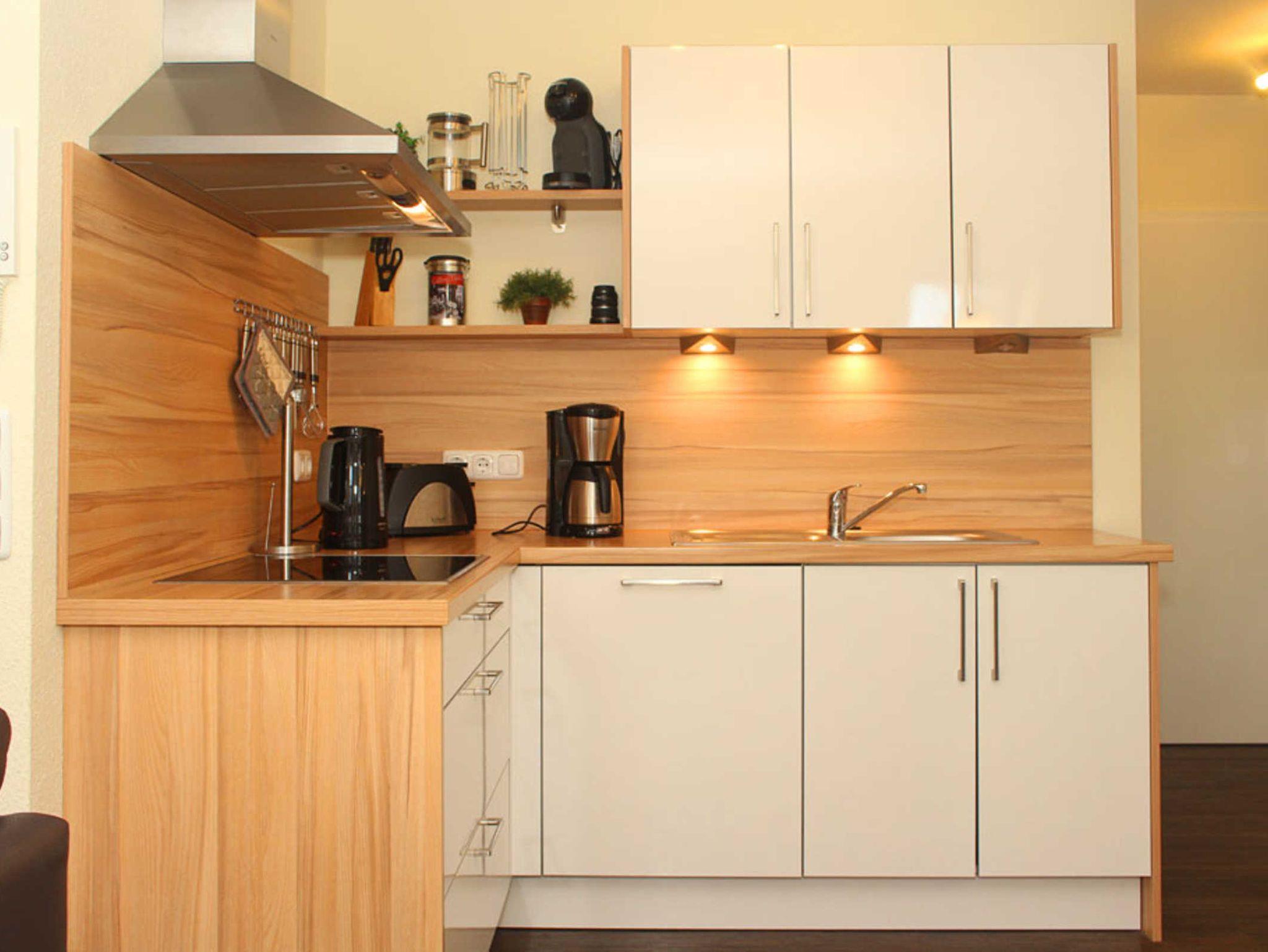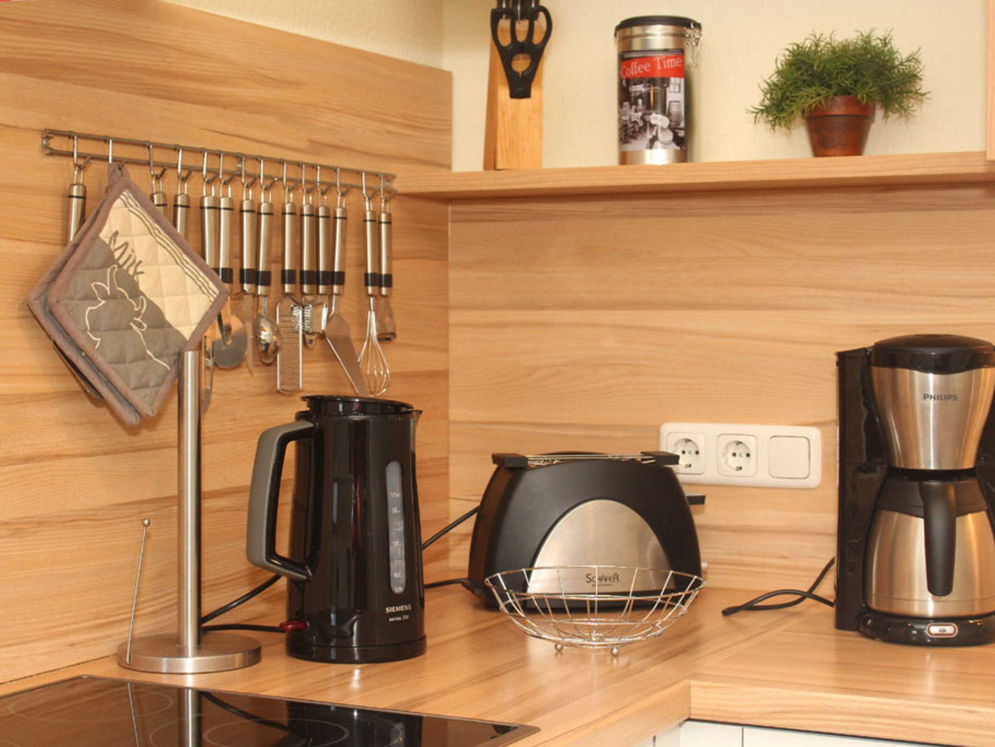 Für Selbstversorger ist auf dieser Ebene die integrierte Küchenzeile mit Kühlschrank inkl. Gefrierfach, Spülmaschine, Backofen und Ceranfeld bestens ausgestattet. Kaffeemaschine, Toaster, Wasserkocher und einiges mehr sind ebenfalls vorhanden.