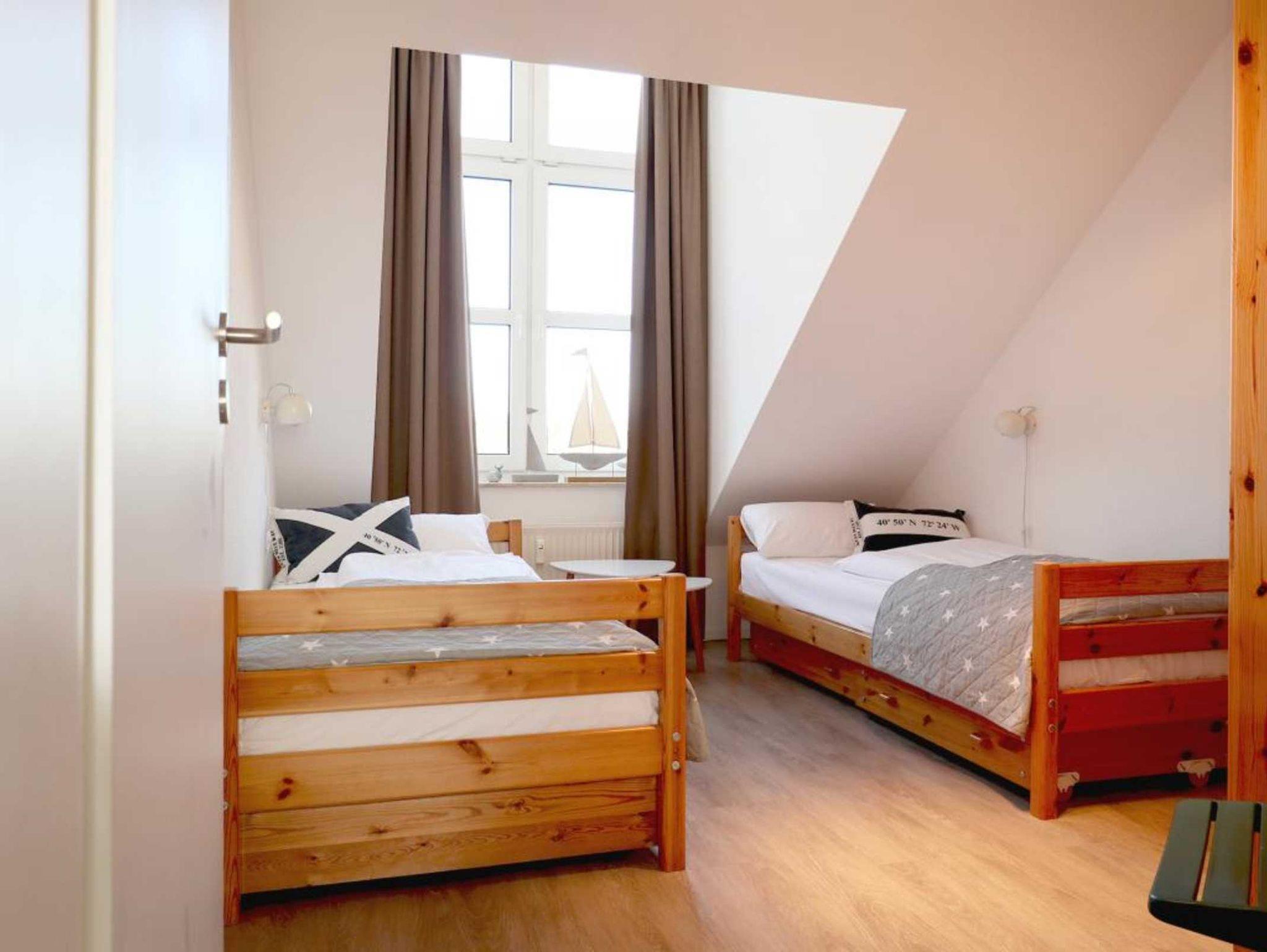 Nur 350 Meter vom Strand entfernt befindet sich die modernisierte 3-Zimmer-Ferienwohnung ? Sünnslag 13-59 -mit Balkon im Dachgeschoss einer gepflegten Ferienwohnanlage. Das hochwertig ausgestattete Appartement bietet auf ca. 63 qm Wohnfläche Platz für bis zu 4 Personen. Der helle Wohnbereich verfügt über ein bequemes Sofa, einen gemütlichen Ruhesessel sowie einen Esstisch für gemeinsame Mahlzeiten. Zur Unterhaltung stehen ein Flachbild-TV, DVD-Player, Musikanlage und kostenfreies WLAN zur Verfügung. Die separate Küche ist voll ausgestattet mit Cerankochfeld, Backofen, Mikrowelle, Kühlschrank, Geschirrspüler sowie Kaffeemaschine, Toaster und Wasserkocher. Zwei separate Schlafzimmer sorgen für erholsamen Schlaf: eines mit Doppelbett und Kleiderschrank, das zweite mit zwei Einzelbetten. Ein zweckmäßig ausgestattetes Duschbad ist vorhanden. Für kleine Kinder steht ein Reisebett im Appartement. Ebenso sind Bügeleisen und Bügelbrett vorhanden. Ein kostenfreier, reservierter PKW-Stellplatz befindet sich direkt am Haus. Nichtraucherwohnung, Haustiere sind nicht erlaubt. Zur Erleichterung des Reisegepäcks können Bettwäsche und Handtücher gegen Gebühr hinzugebucht werden; die Wäschepakete erhalten Sie bei Anreise im Büro.