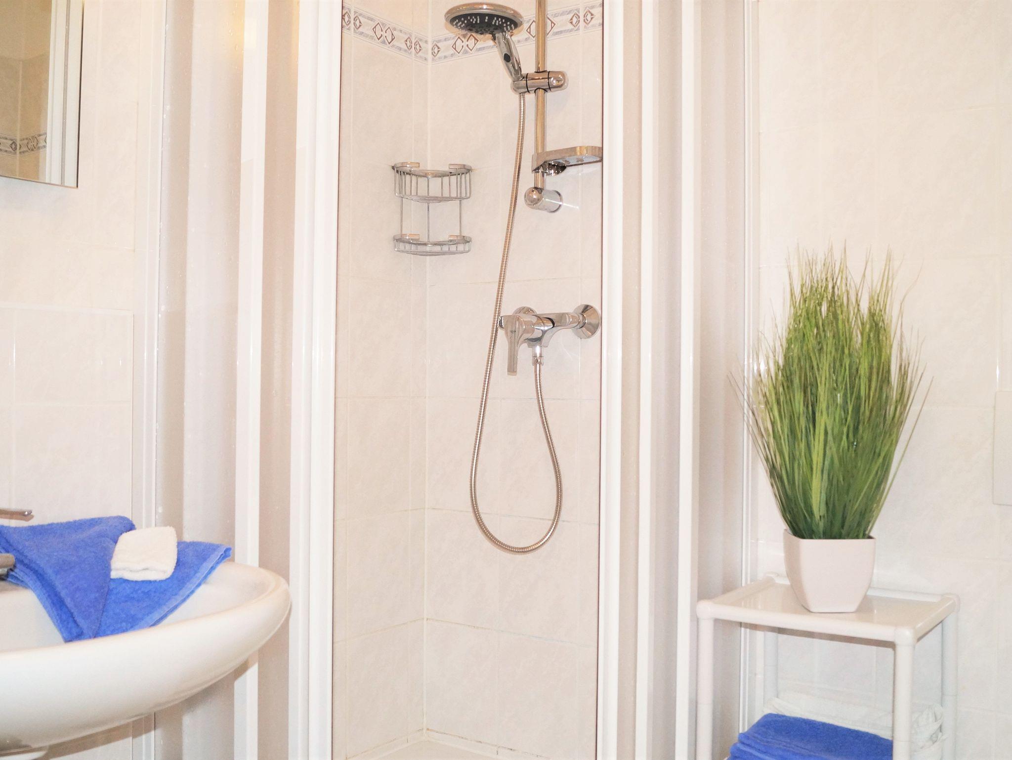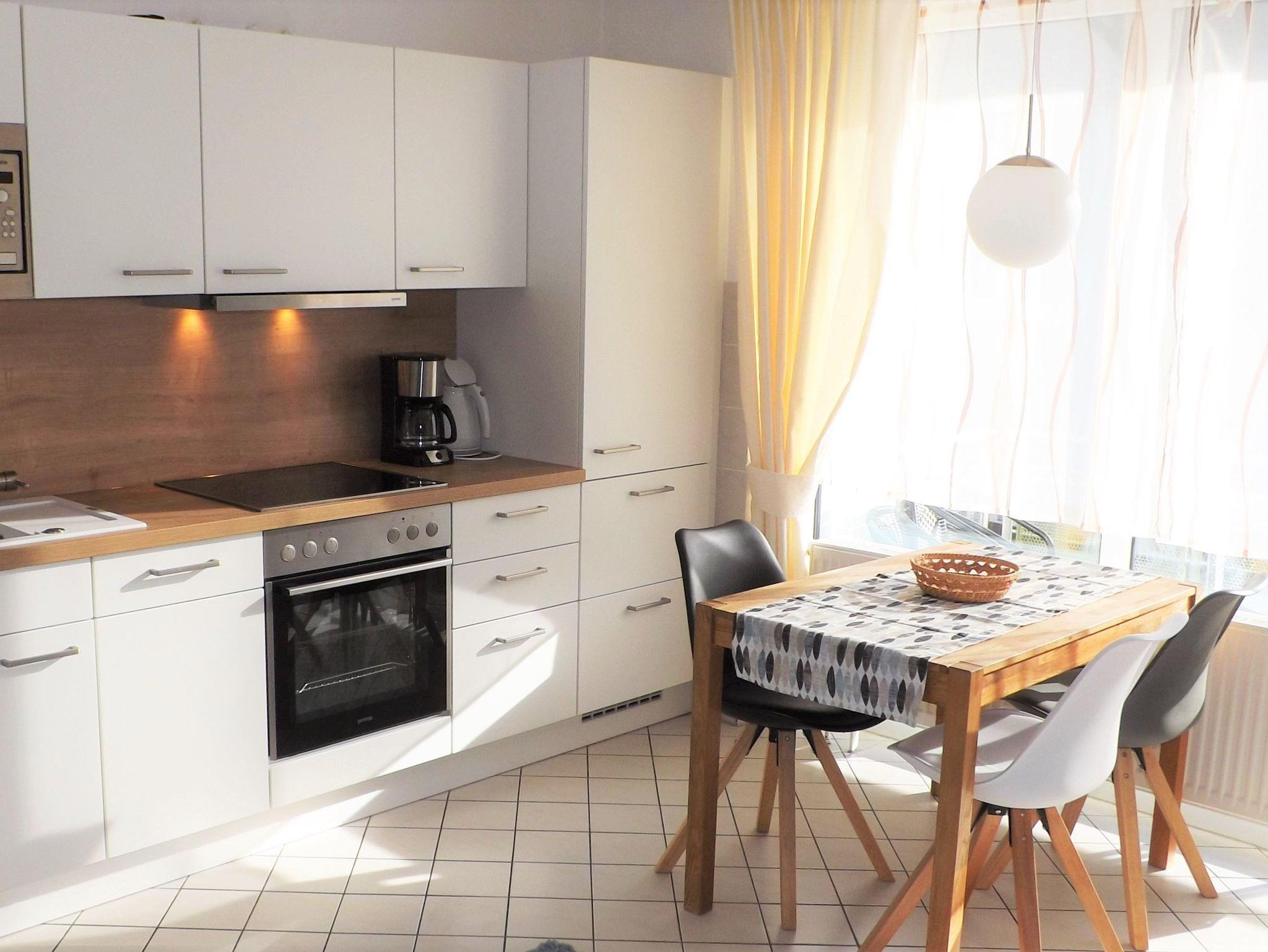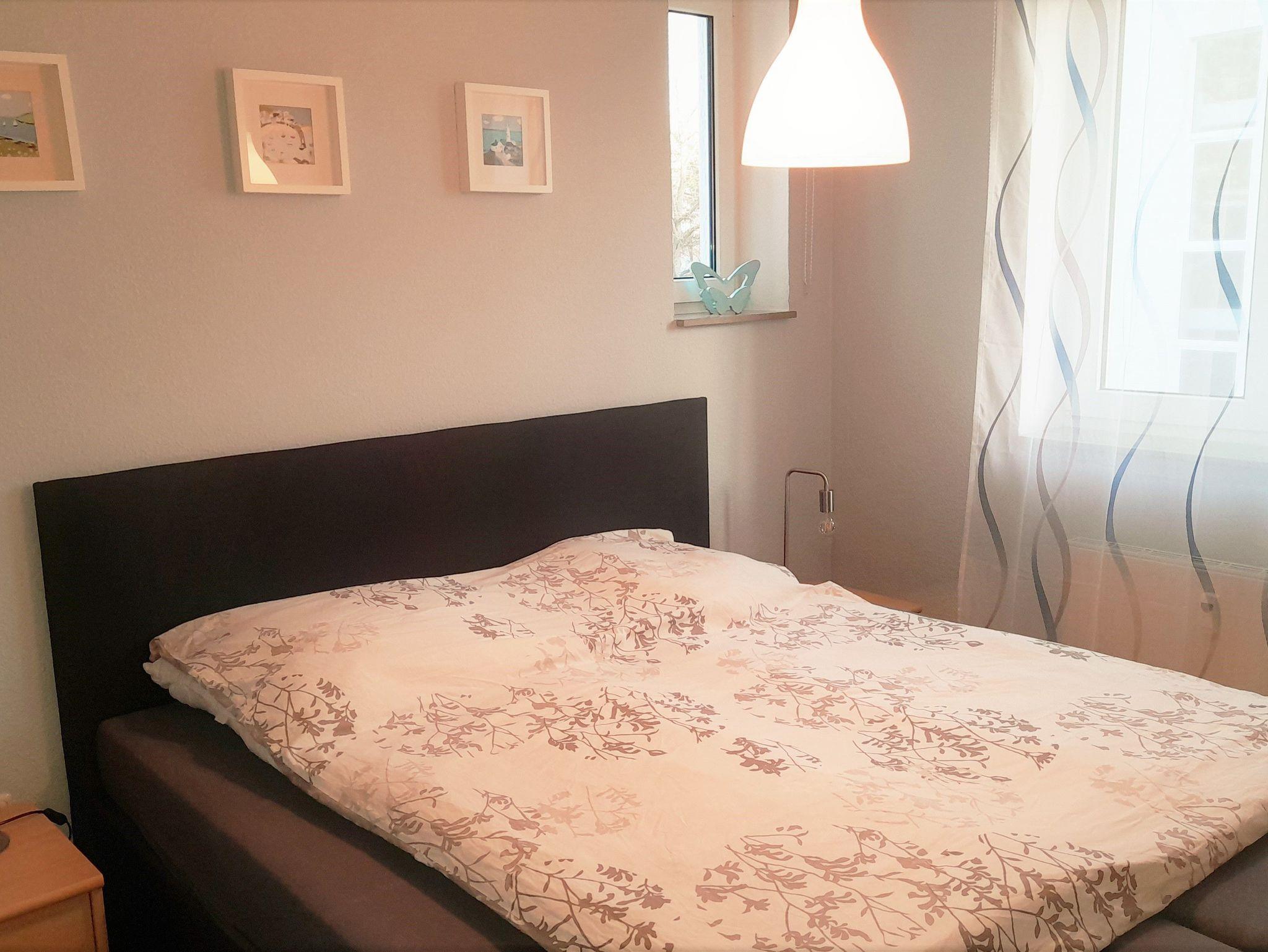 Im kombinierten Wohn-/Esszimmer befindet sich ein gemütlicher Sitzbereich mit bequemer Doppelschlafcouch und Sessel mit Fußhocker sowie ein 40 Zoll Smart TV, HiFi-Anlage und DVD-Player. Die offene und voll ausgestattete Einbauküche bietet Ihnen u.a. einen Geschirrspüler, ein Cerankochfeld (vier Platten) mit Backofen sowie eine Einbau-Mikrowelle. Im separaten Schlafzimmer befindet sich ein modernes Boxspringbett mit zwei getrennten Matratzen - jeweils 90 cm x 200 cm. Im Badezimmer finden Sie Dusche und WC sowie Föhn und einen beleuchteten Spiegel.