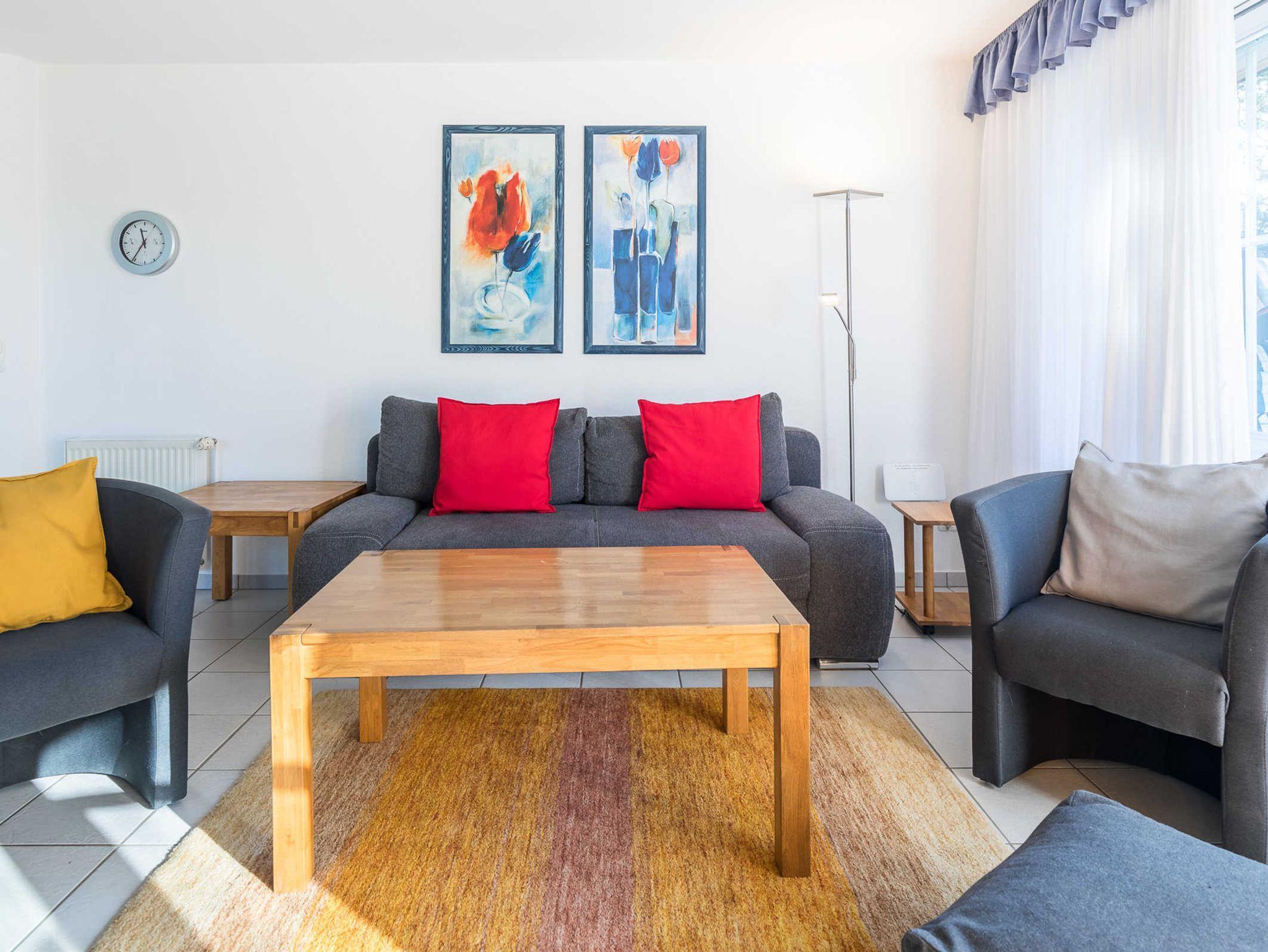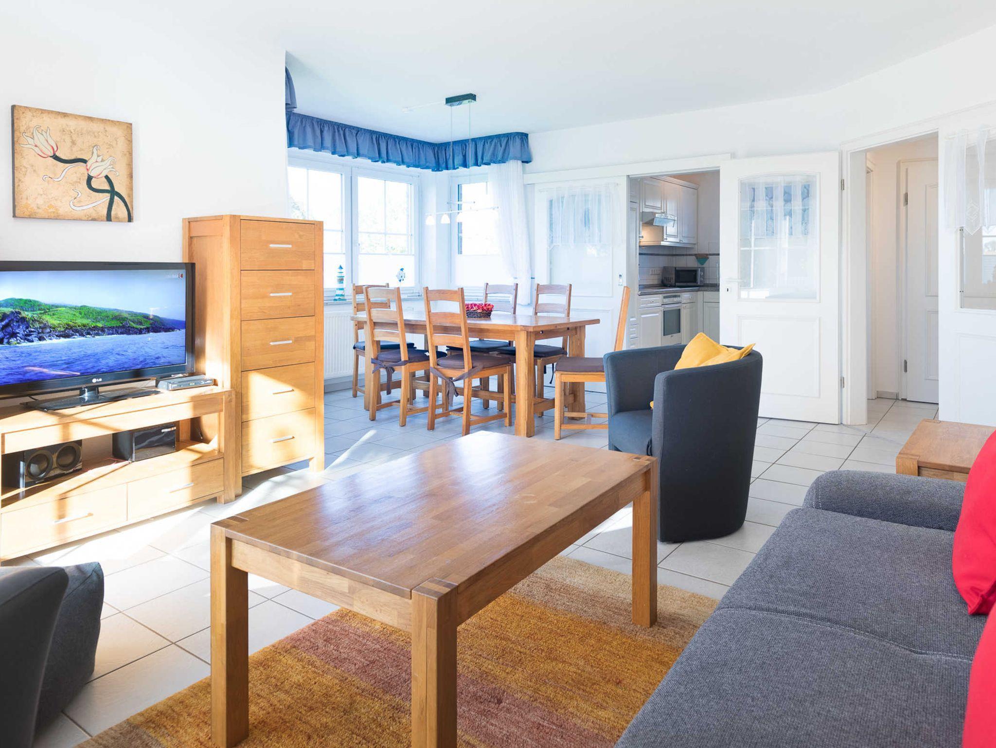 Der ca. 30 qm große Wohn- und Essbereich ist komfortabel möbliert.