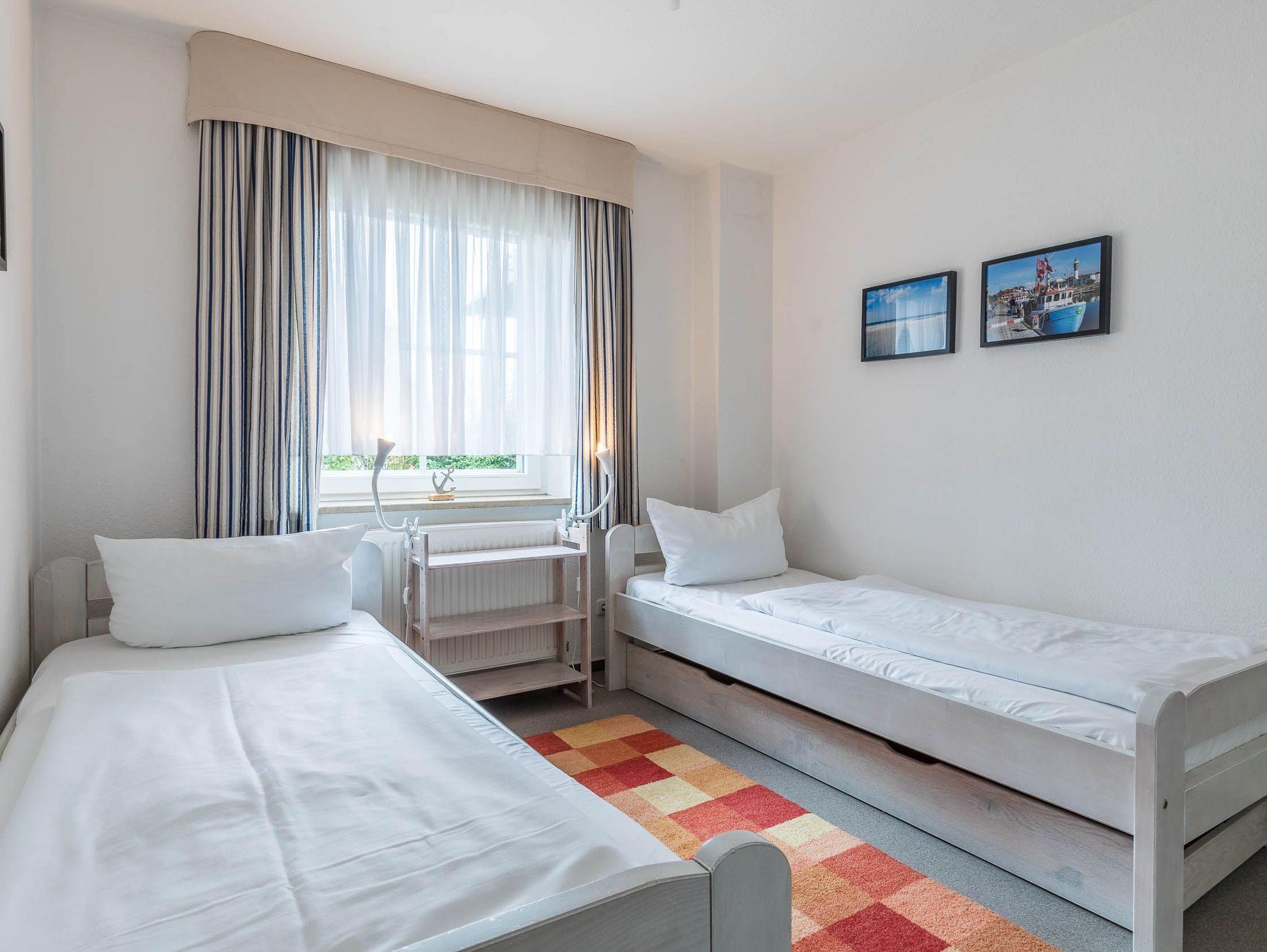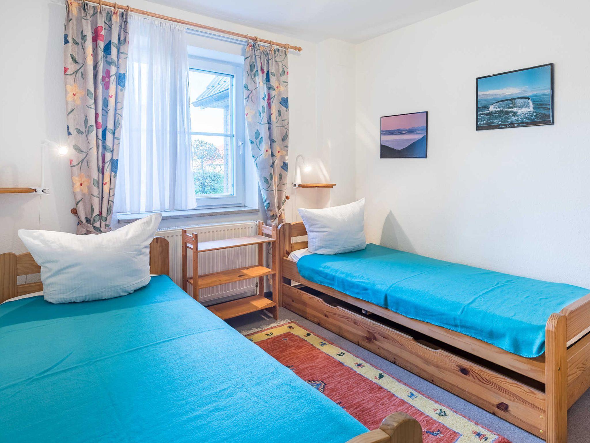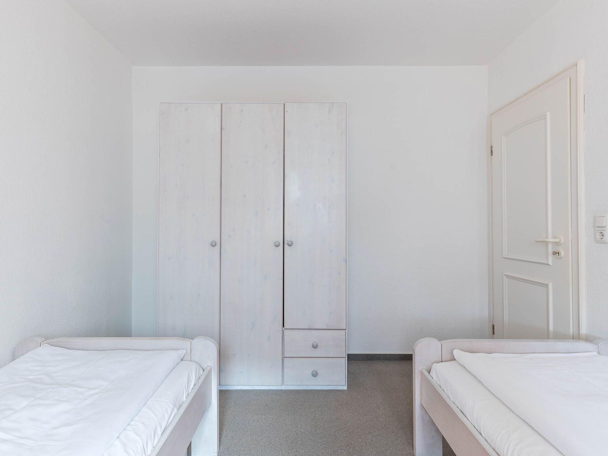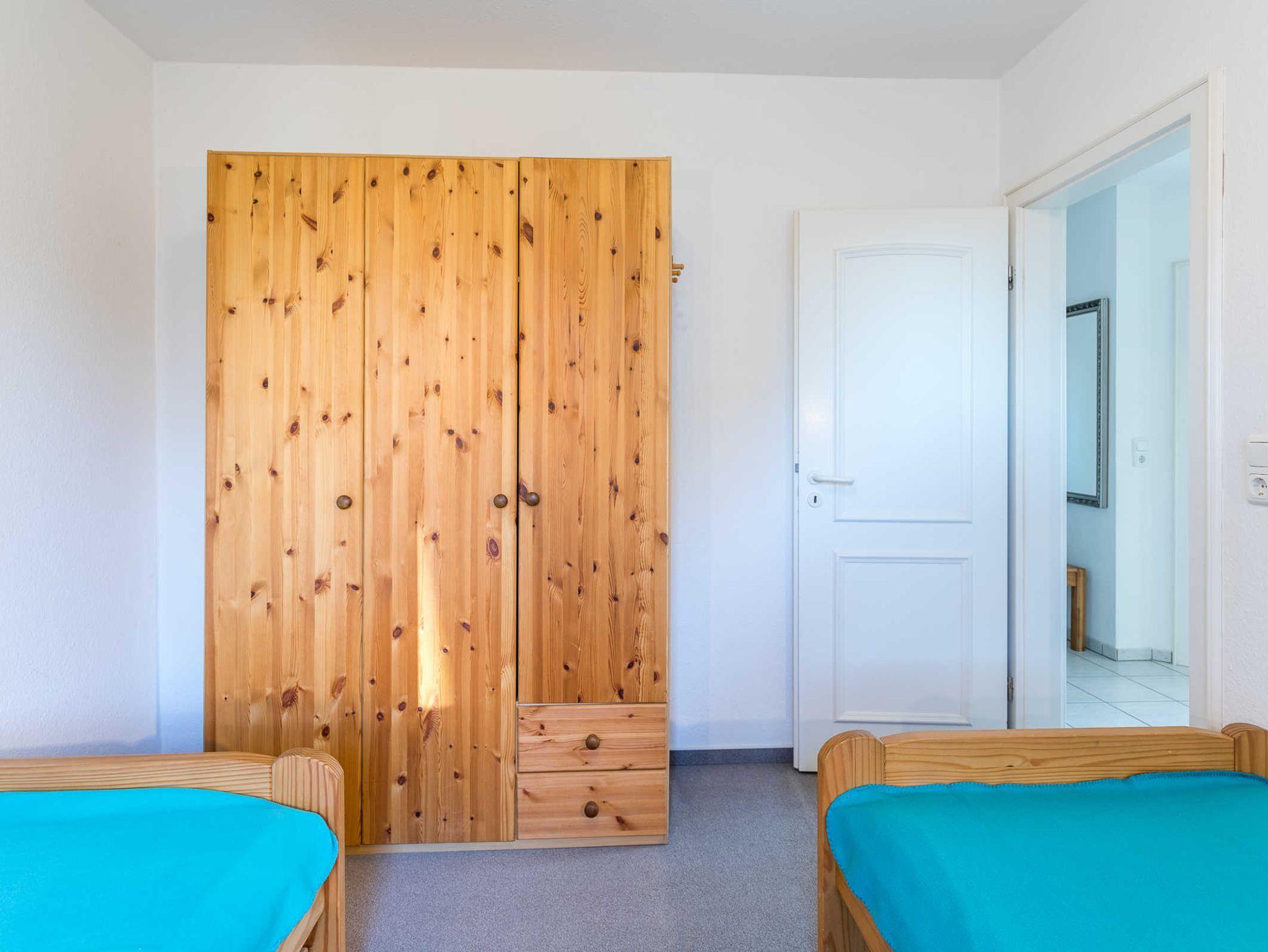 Das große Schlafzimmer bietet ein Doppelbett, im Kinder-/ Gästezimmer befinden sich zwei Einzelbetten. Beide Zimmer sind außerdem mit einem geräumigen Kleiderschrank ausgestattet.