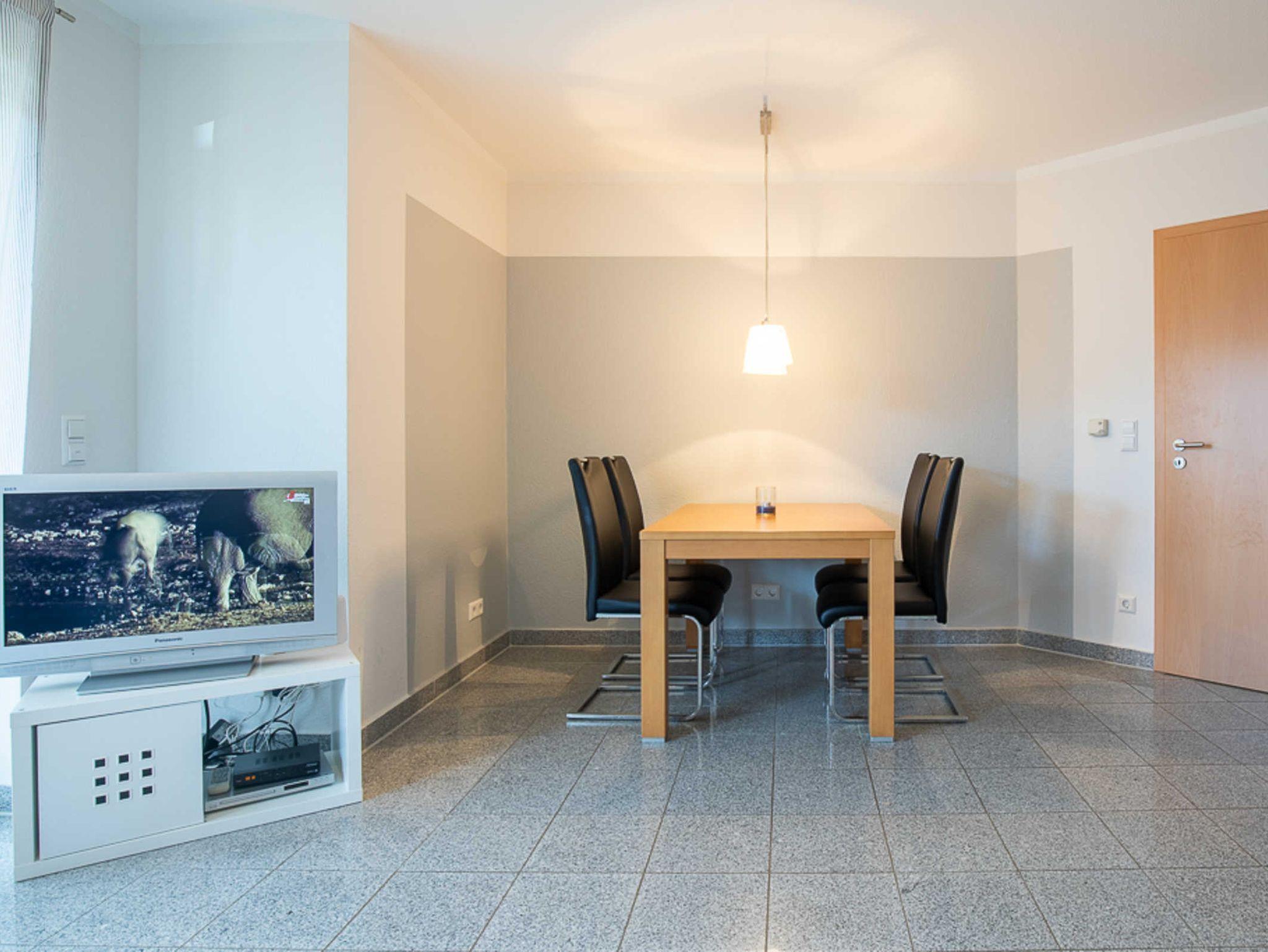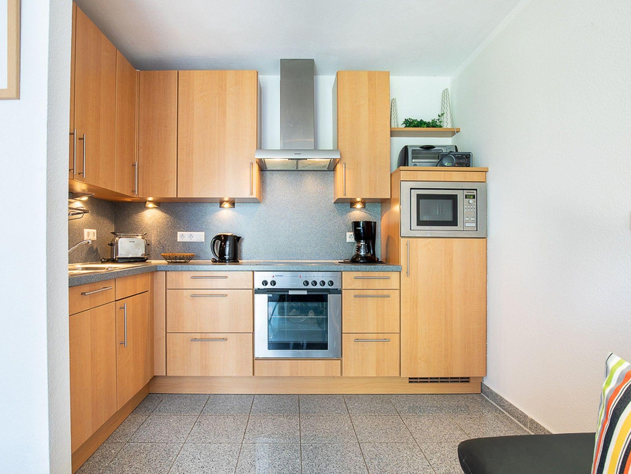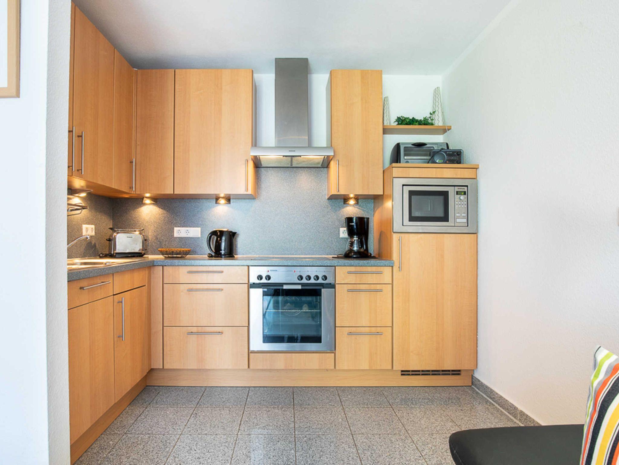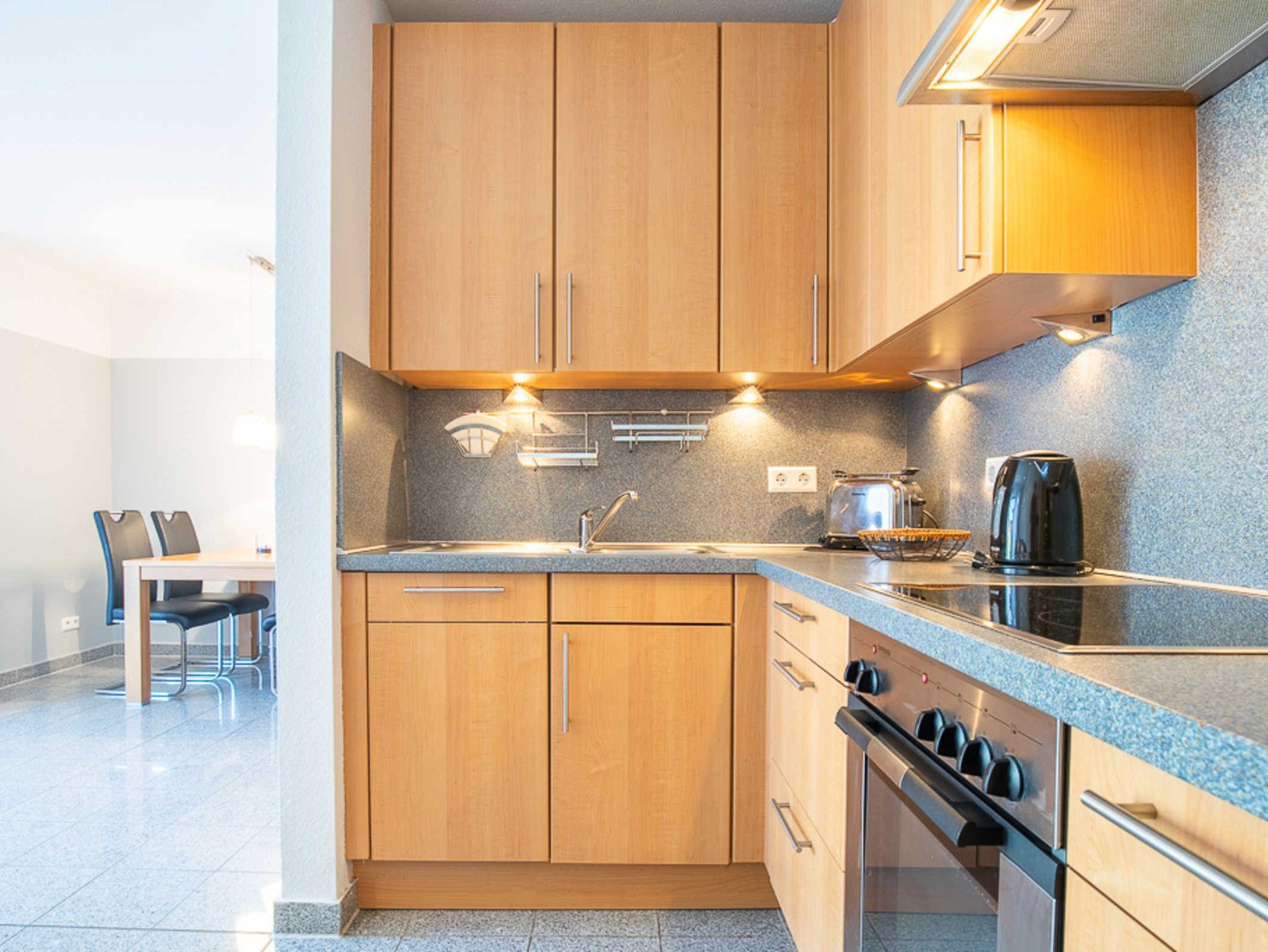 Sie verfügt über einen gemütlichen Wohnbereich mit Flatscreen-TV mit angrenzender moderner Wohnküche und integrierter Essecke für 4 Personen. Ein Reisebettchen kann hier bei Bedarf auch aufgestellt werden.