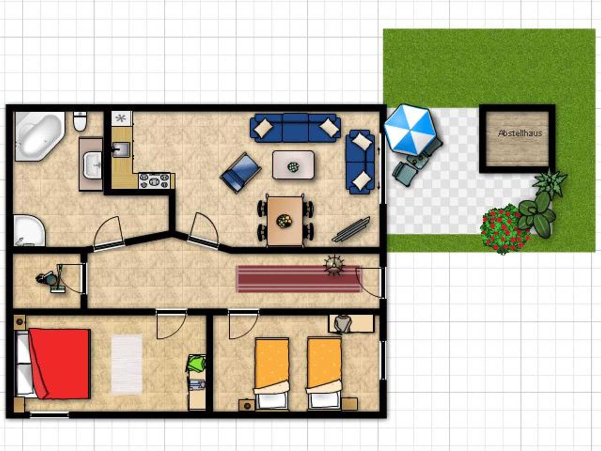 Diese familienfreundliche 3-Zimmer-Ferienunterkunft im EG bietet auf 80qm Wohnfläche eine komfortable Ausstattung für 4 Personen + 1 Kleinkind.