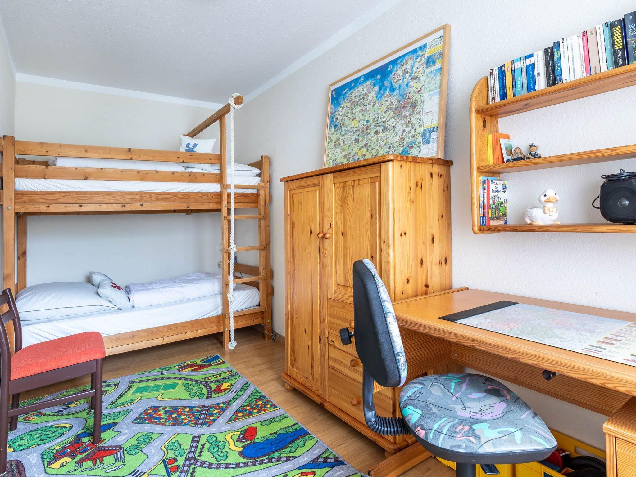 In der Wohnung gibt es zwei separate Schlafzimmer, ein Schlafzimmer mit Doppelbett, das andere mit Etagenbett.