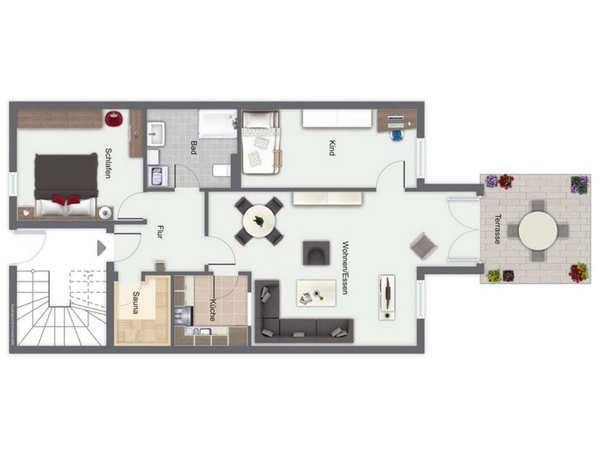 In dieser beliebten 3-Zimmer-Ferienwohnung im Erdgeschoss wird eine moderne Ausstattung bis 4 Personen + 1 Kleinkind angeboten.