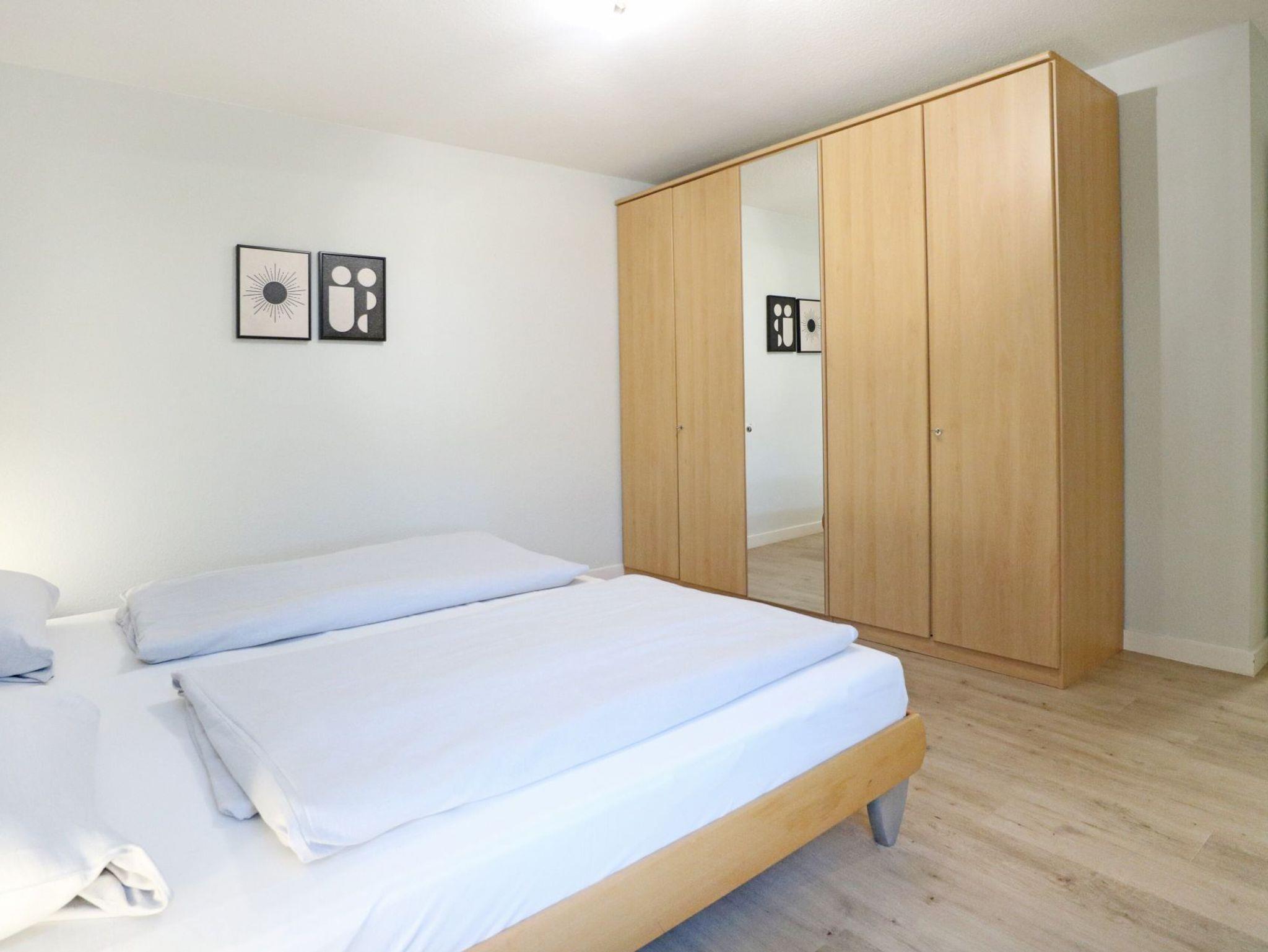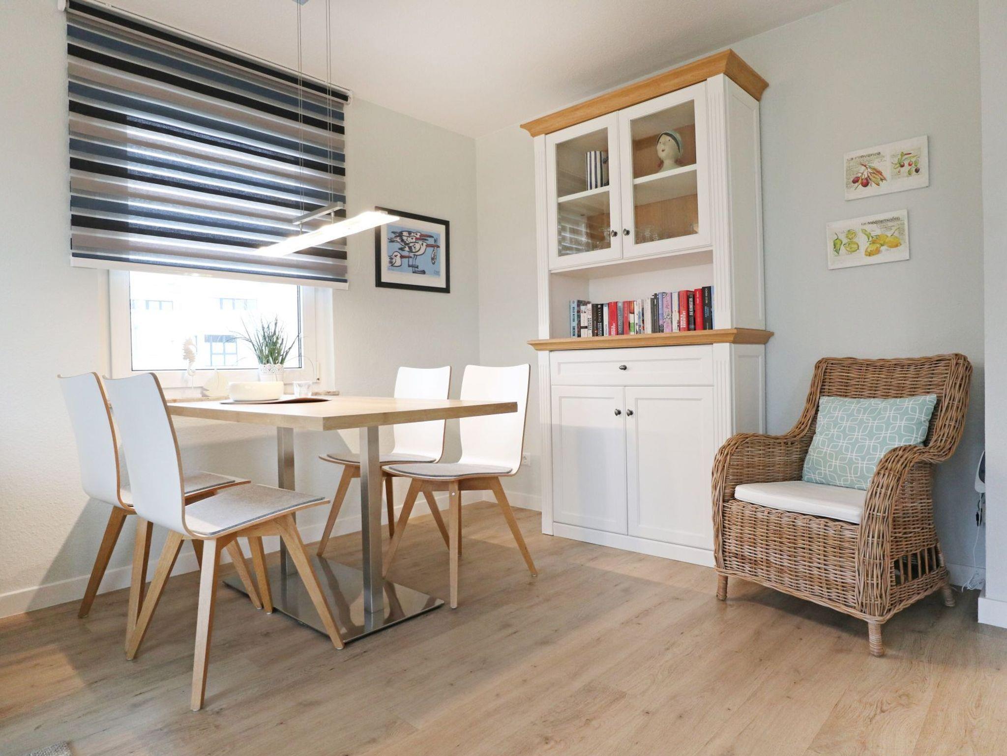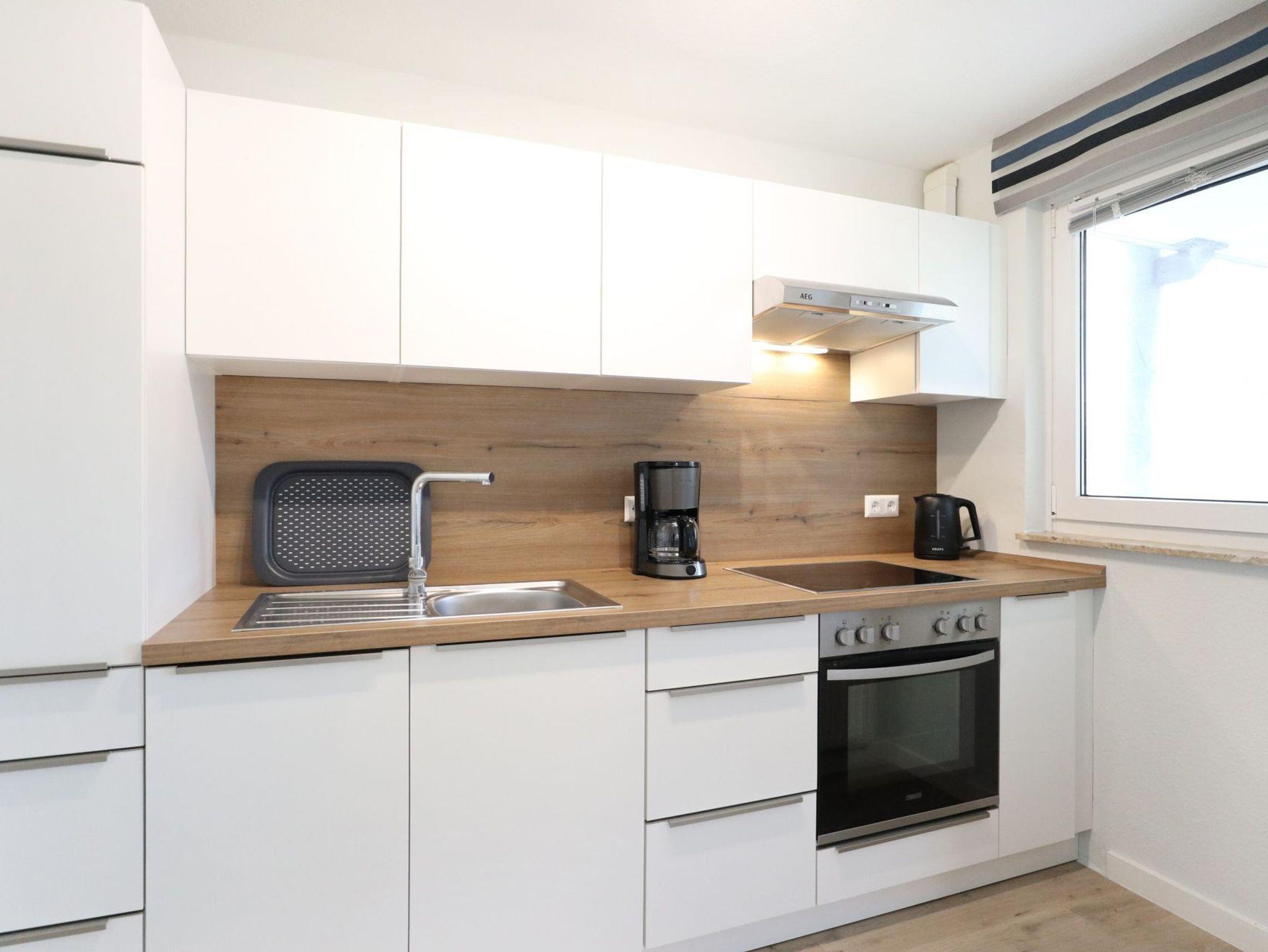 Modernes Nichtraucherappartement für bis zu 4 Personen mit einer Wohnfläche von 52qm. Sonniger Balkon in Süd-West Ausrichtung. Die Möblierung ist im jungen Design gehalten und bietet ein ausziehbares Sofa mit zwei zusätzlichen Schlafgelegenheiten ? 1,60 x 2,00 - zwei Sessel, Beistelltisch, Esstisch, Fernseher, Musikanlage und kostenfreies WLAN. Die gut ausgestattete, integrierte Küchenzeile ist vom Wohnzimmer leicht getrennt - Ceranfeldherd, Backofen, Dunstabzug, Geschirrspüler sowie Kleingeräte wie Kaffeemaschine u.s.w. sind selbstverständlich auch vorhanden. In dem separaten Schlafzimmer mit Doppelbett steht zudem ein Kleiderschrank für Ihre Garderobe bereit. Das Duschbad mit WC ist hell gefliest. Für Ihren PKW ist ein kostenfreier Stellplatz reserviert und auch ein Fahrradabstellraum gehört zum Angebot. Bitte beachten Sie, dass es sich um eine Nichtraucher Wohnung handelt, in der Haustiere nicht erlaubt sind. Einkaufsmöglichkeiten befinden sich in naher Umgebung.