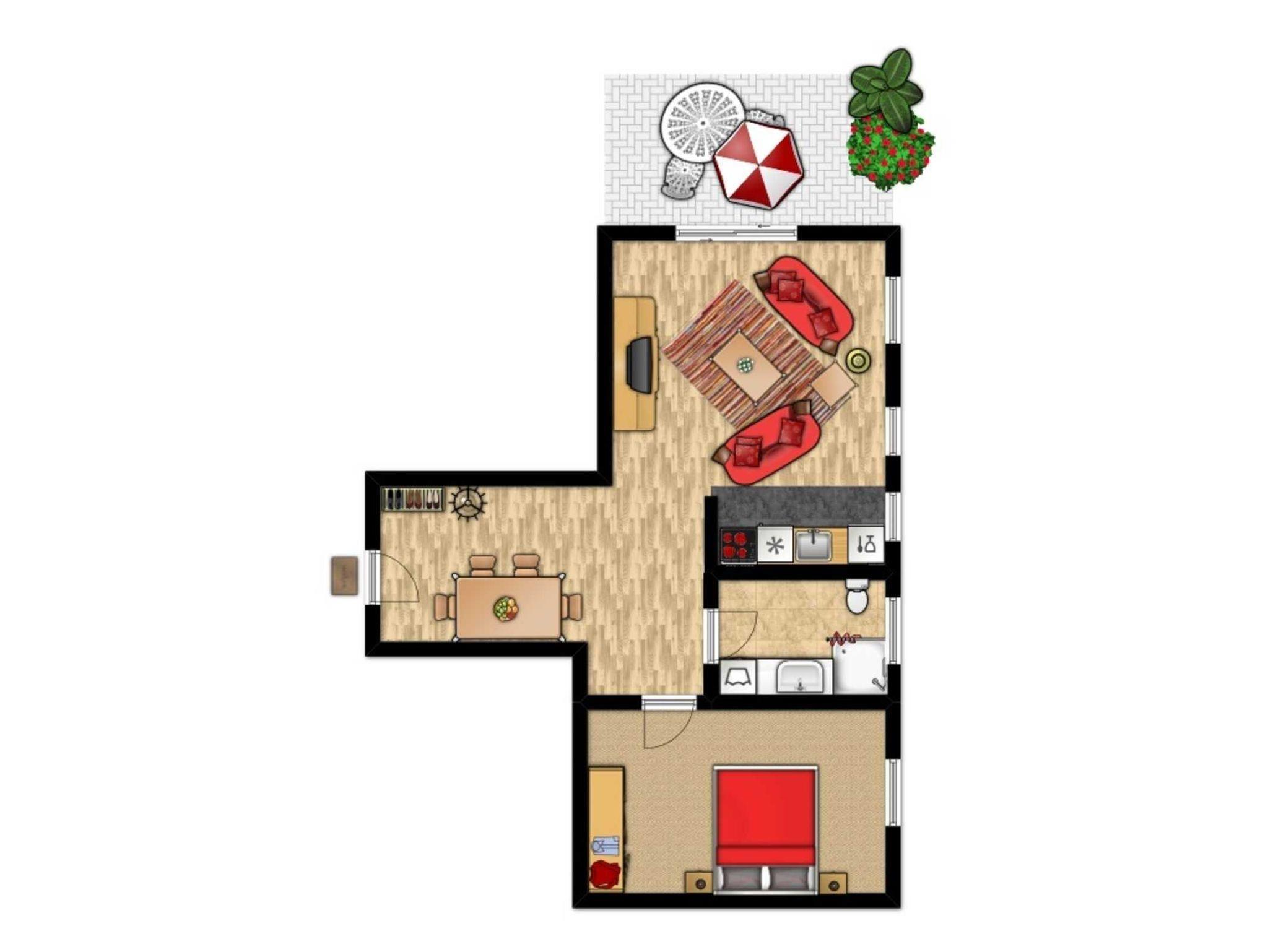 Die 60 Quadratmeter große 2-Zimmer-Ferienwohnung im Erdgeschoss ist für 2-4 Gäste geeignet und bietet kostenfreies WLAN.
