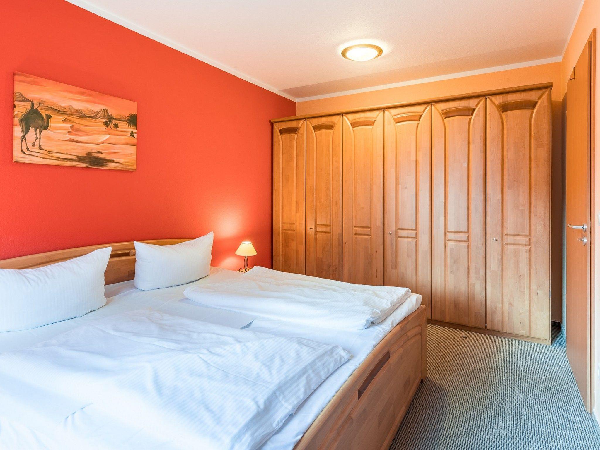 Das Schlafzimmer ist mit einem großen Doppelbett (zwei getrennte Matratzen) und einem großen Kleiderschrank ausgestattet.