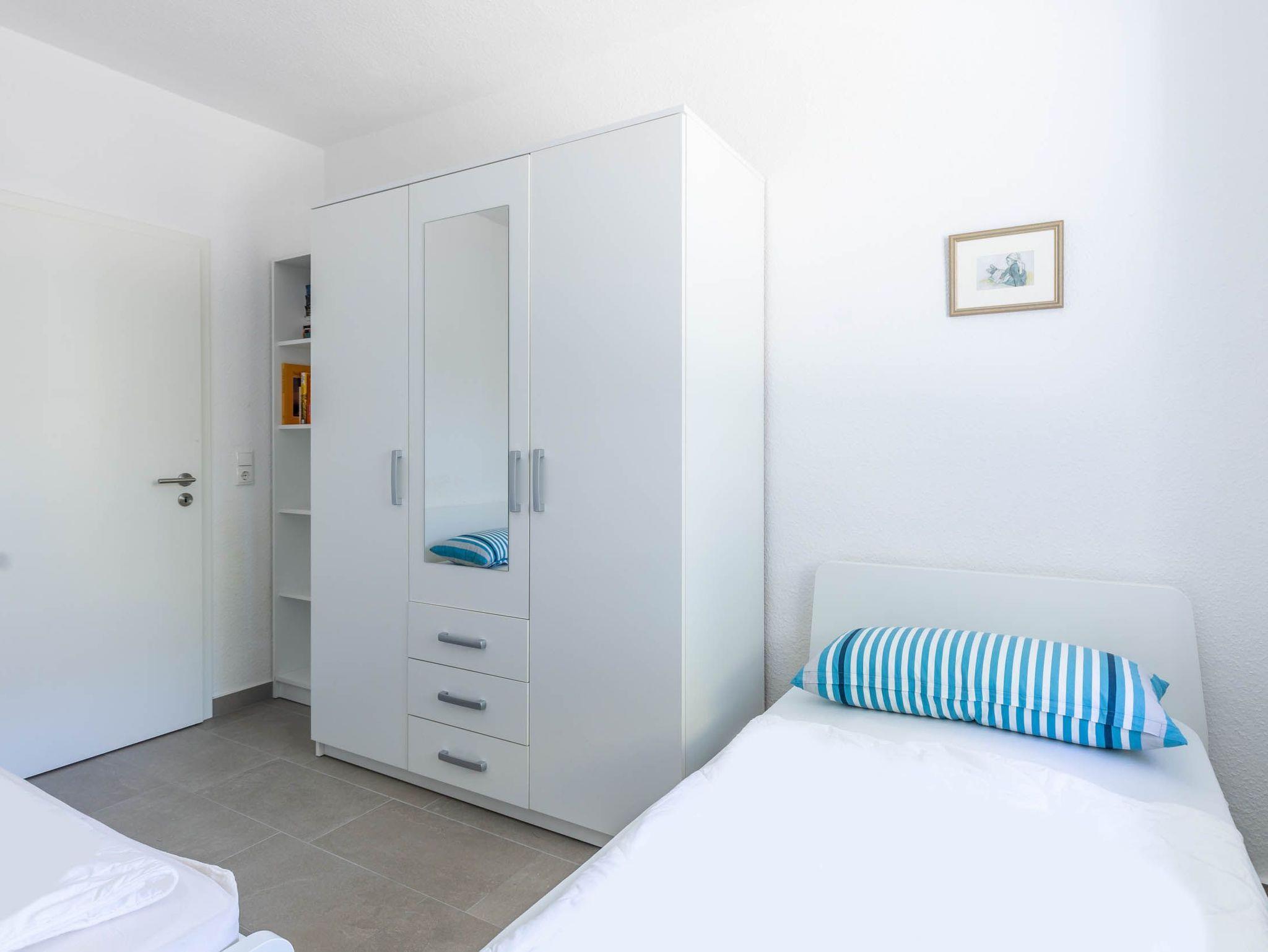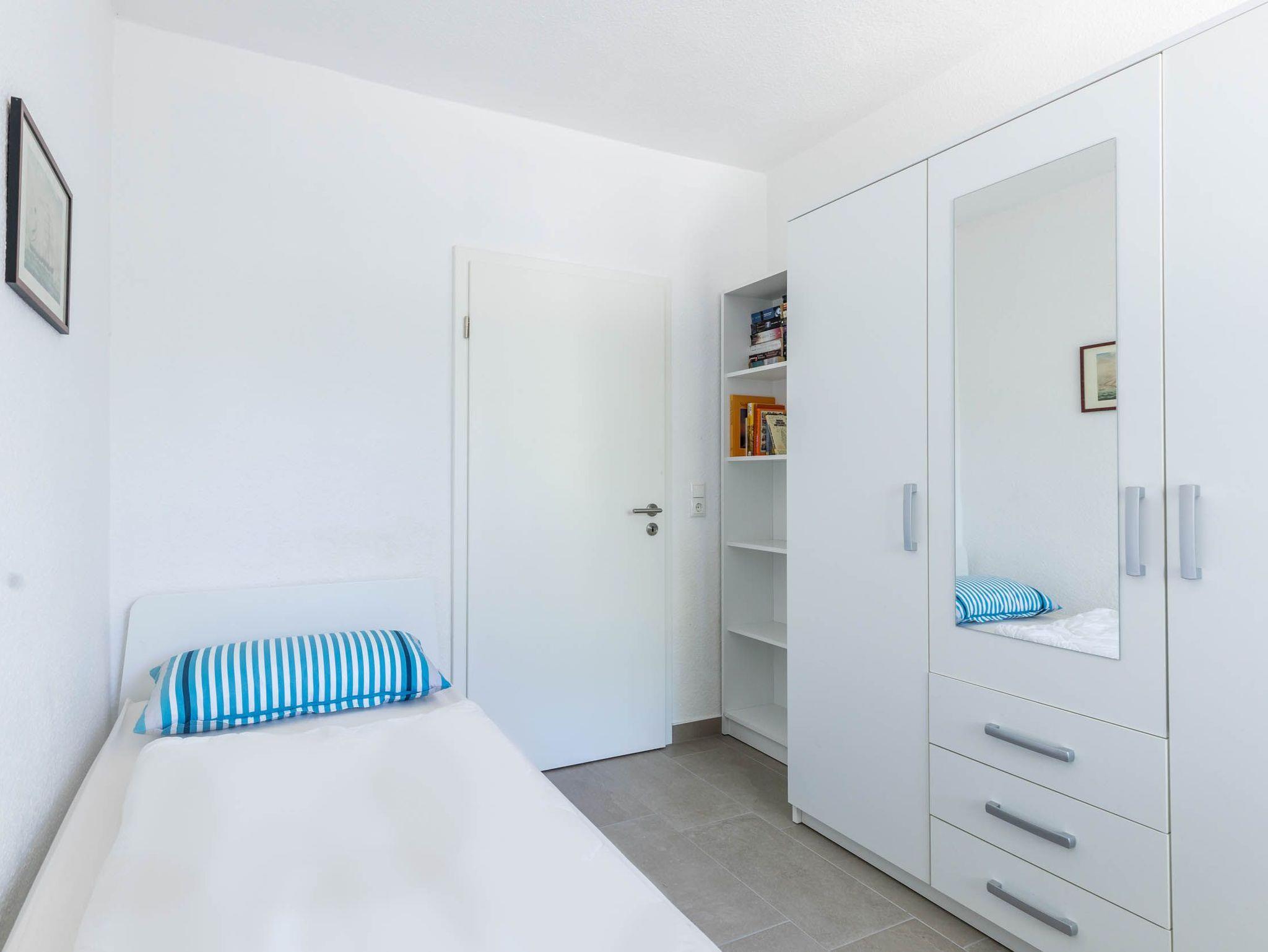 Im Schlafzimmer steht Ihnen ein bequemes Doppelbett (180x200cm), ein großer Kleiderschank sowie ein kleinerer Schrank zur Verfügung. Das Gäste-/ Kinderzimmer ist mit zwei Einzelbetten (je 90x200cm), einen Kleiderschrank sowie SAT-TV eingerichtet.