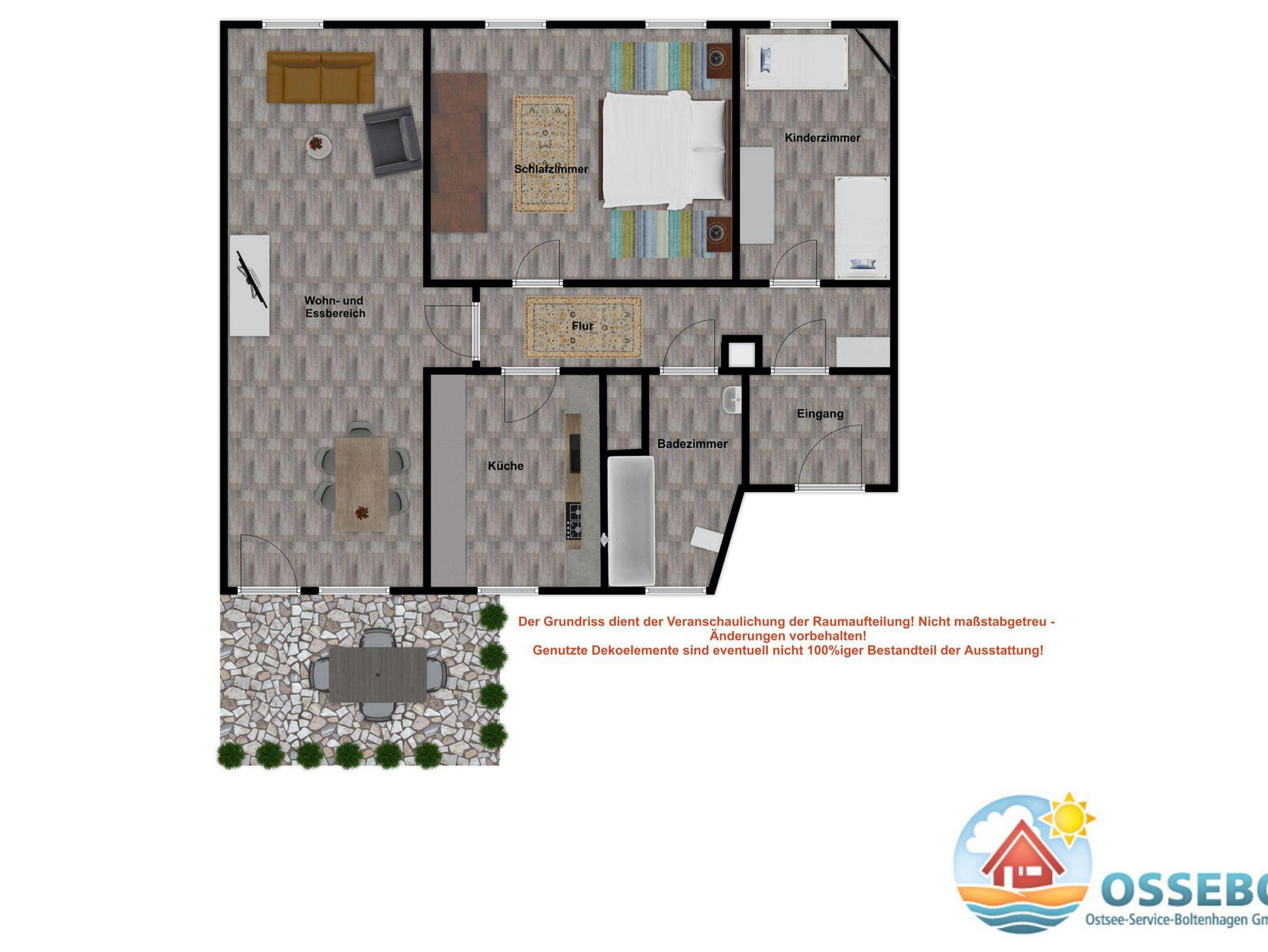 Die familienfreundliche 3-Zimmer-Ferienwohnung in Boltenhagen bietet Komfort, WLAN und Gartenblick für bis zu vier Gäste.