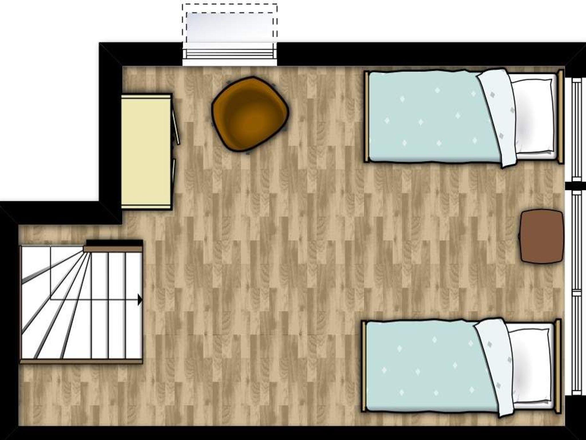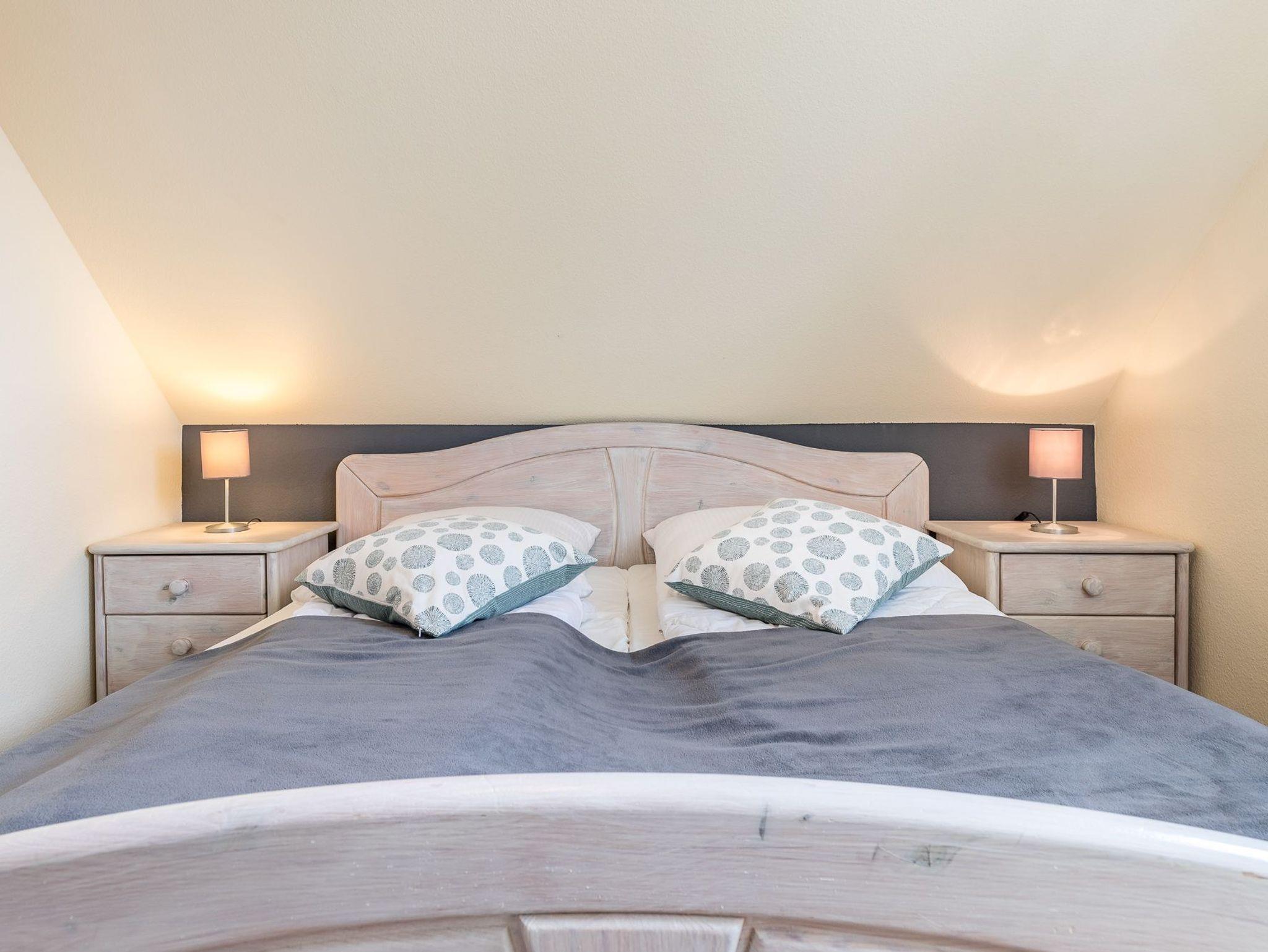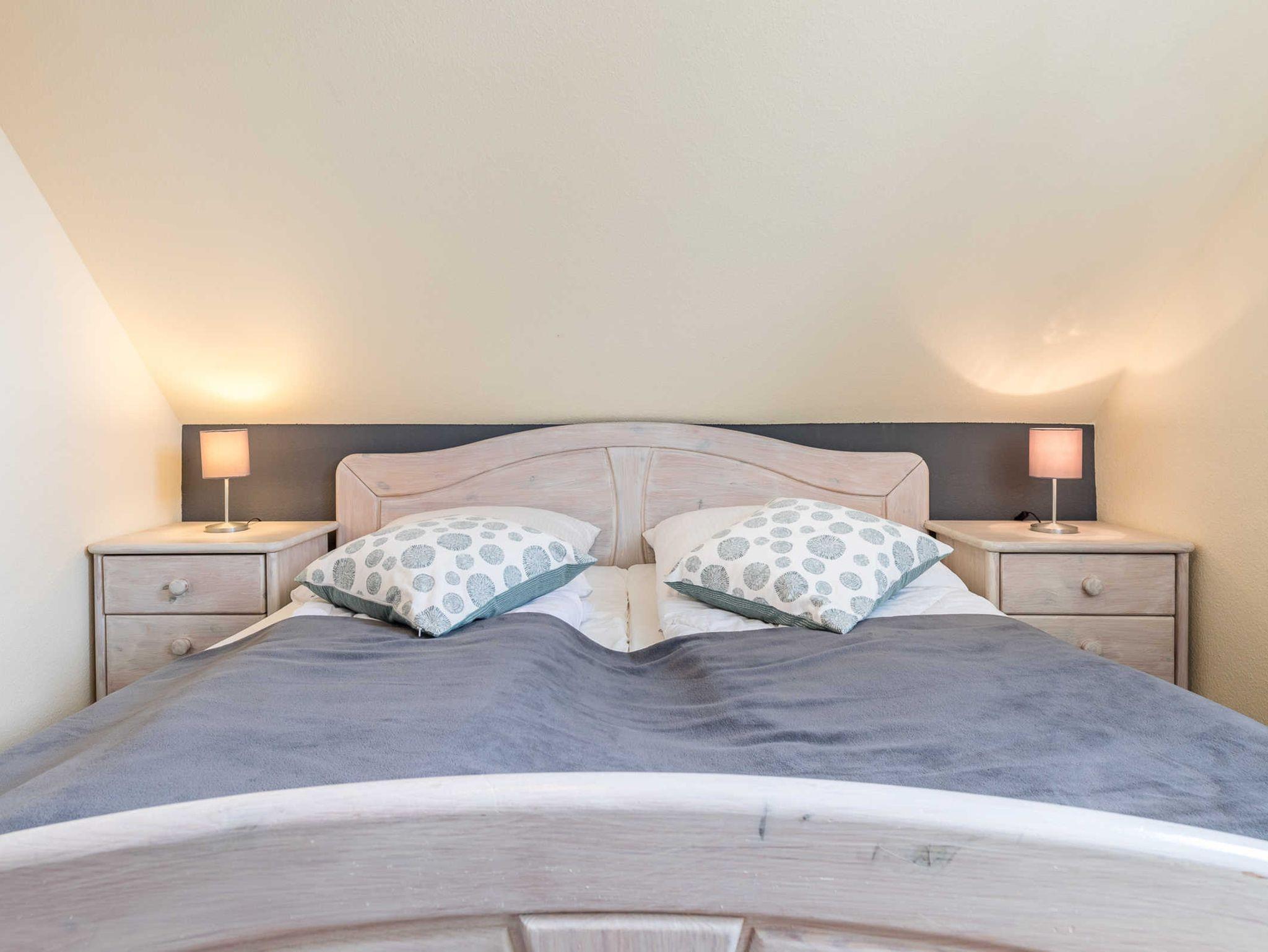 Vom Wohnzimmer aus führt eine Holztreppe in die 2. Wohnebene. Die offene Schlafgalerie in der zweiten Ebene, im DG ist mit zwei Einzelbetten (je 90x200cm), einem Kleiderschrank und 2. TV/ DVD ausgestattet. Von der Galerie aus haben Sie zusätzlich einen herrlichen Blick auf die Salzwiesen.