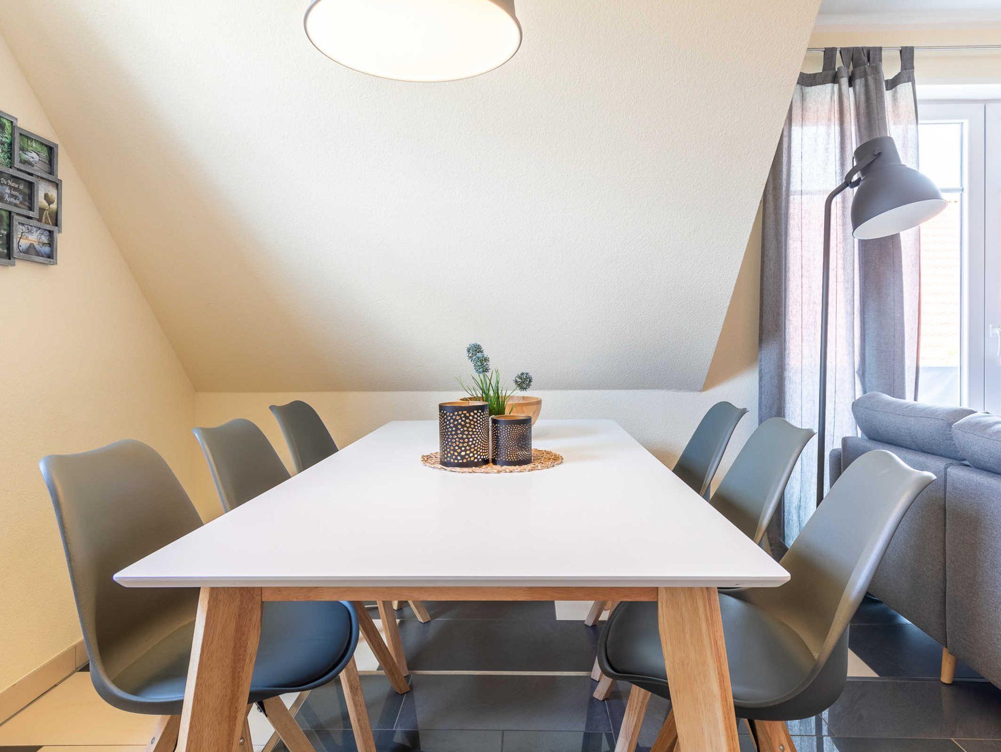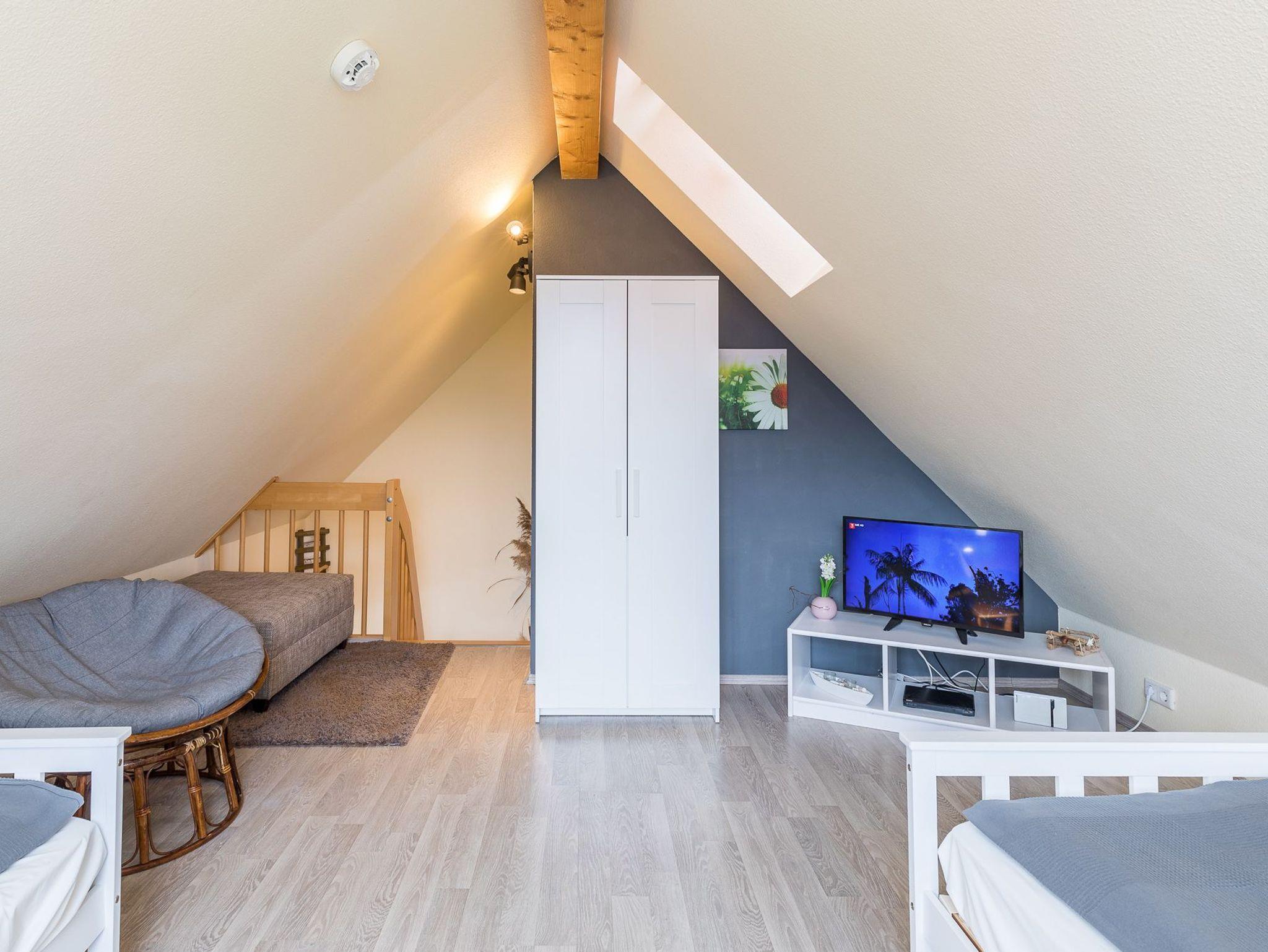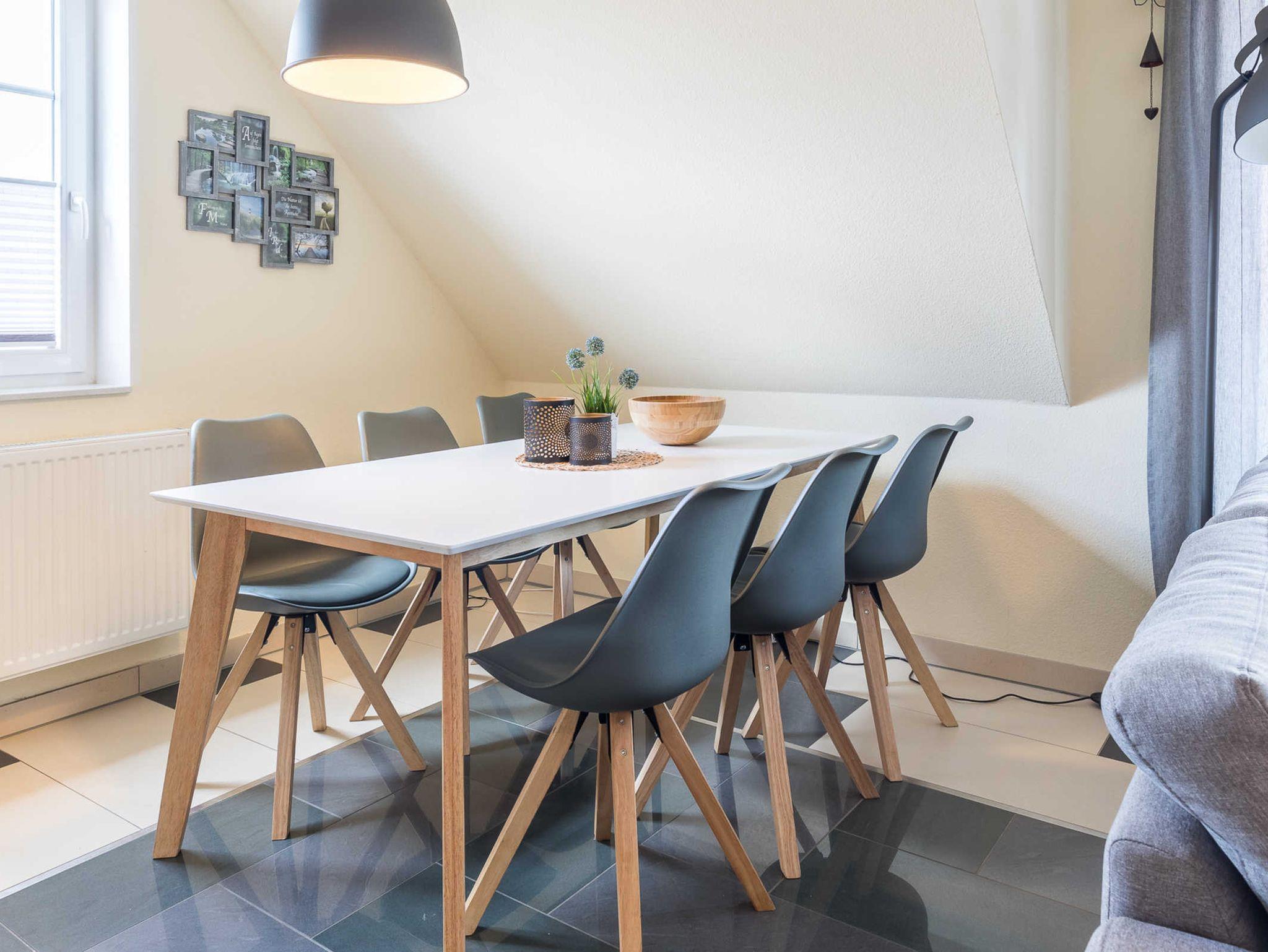 Die etwa 70qm große 3-Zimmer-Ferienwohnung im 1.OG verfügt auf 2 Etagen über eine moderne Ausstattung für bis zu 6 Gäste.