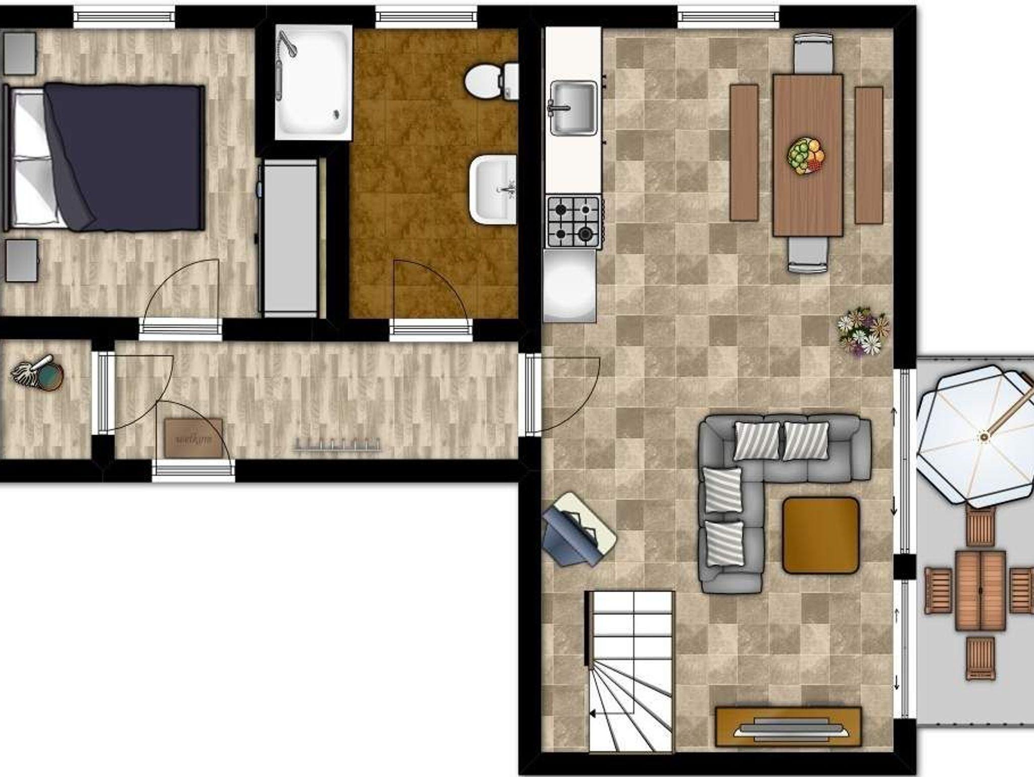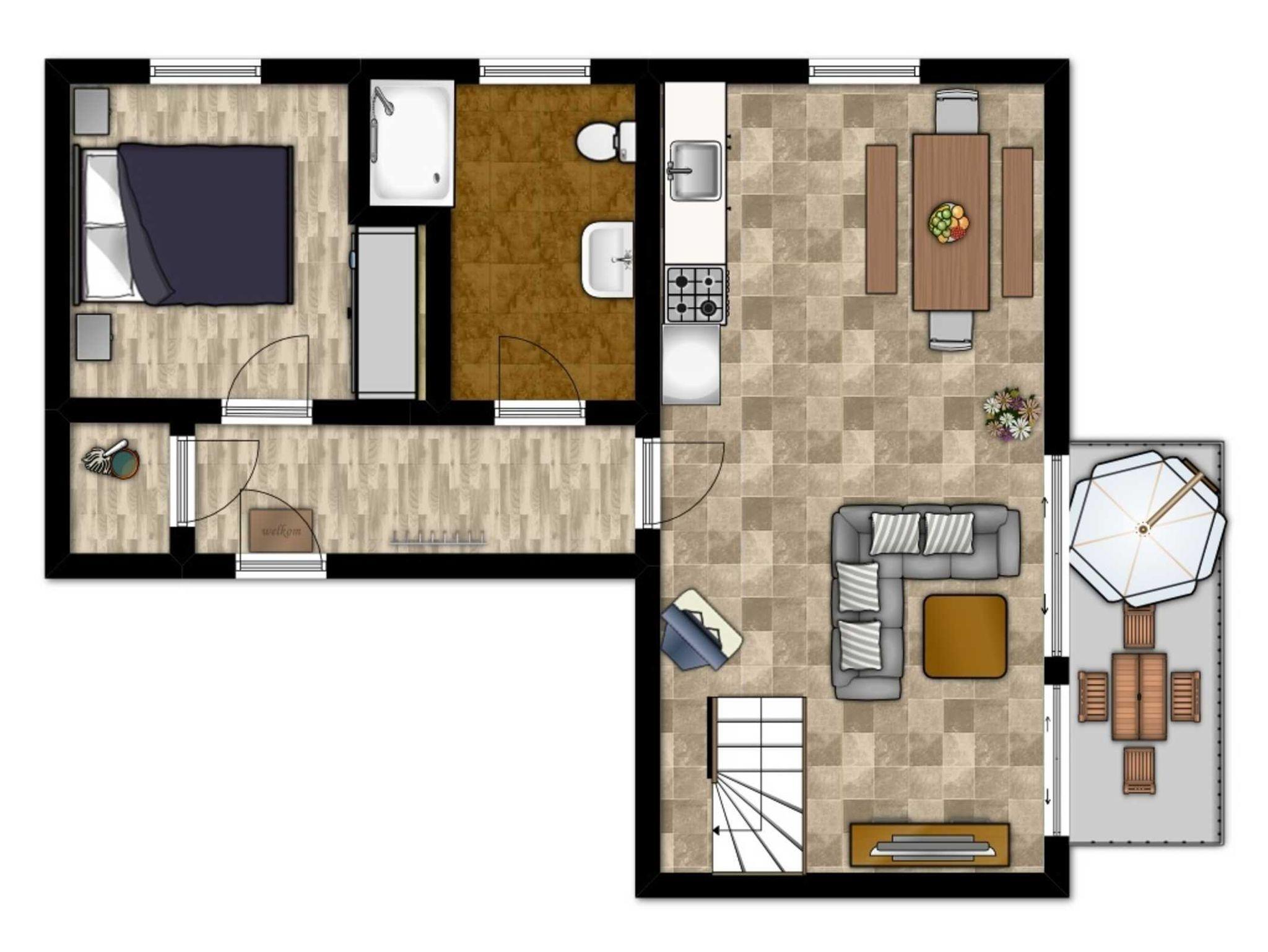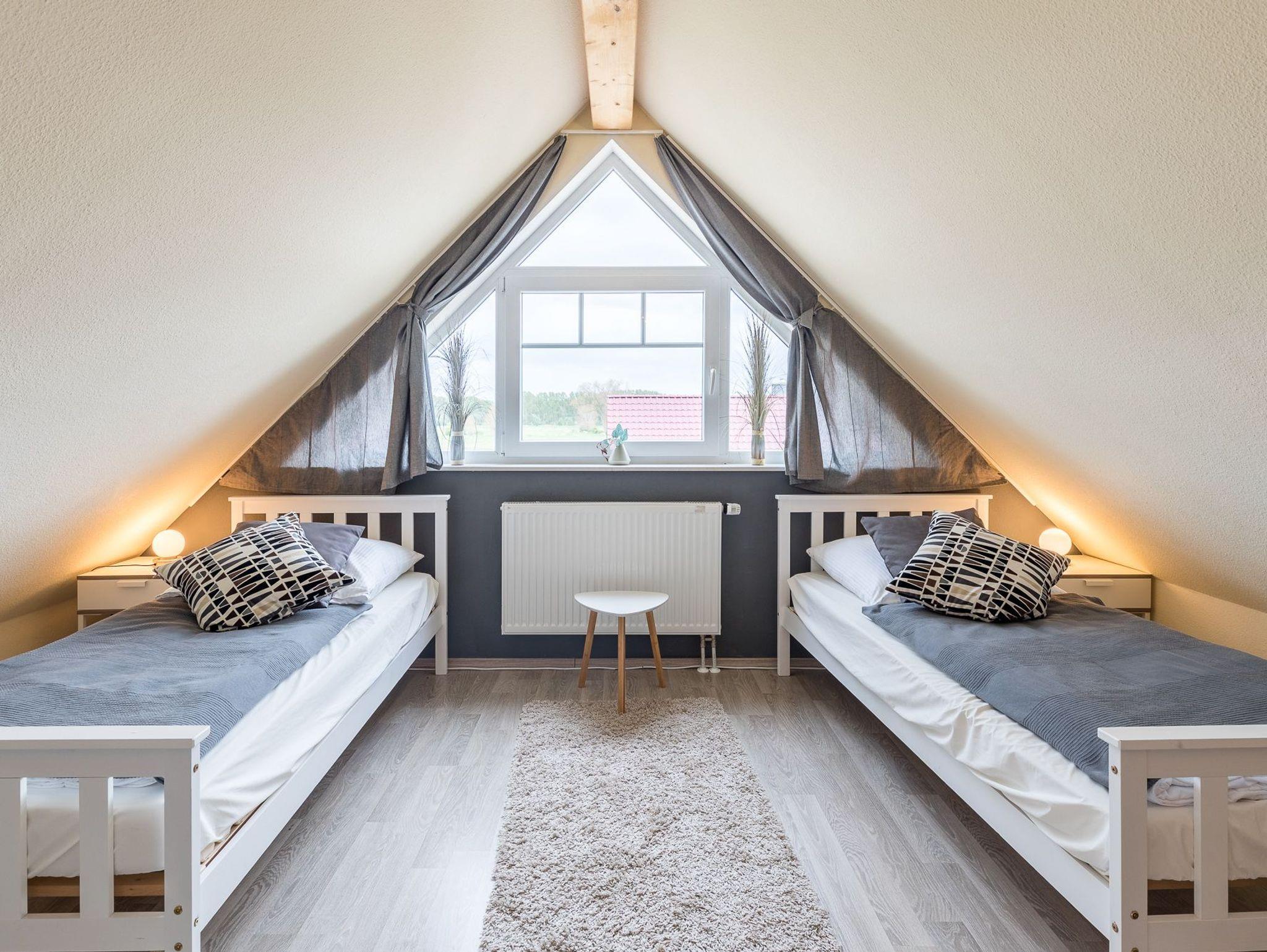 Die etwa 70qm große 3-Zimmer-Ferienwohnung im 1.OG verfügt auf 2 Etagen über eine moderne Ausstattung für bis zu 6 Gäste.