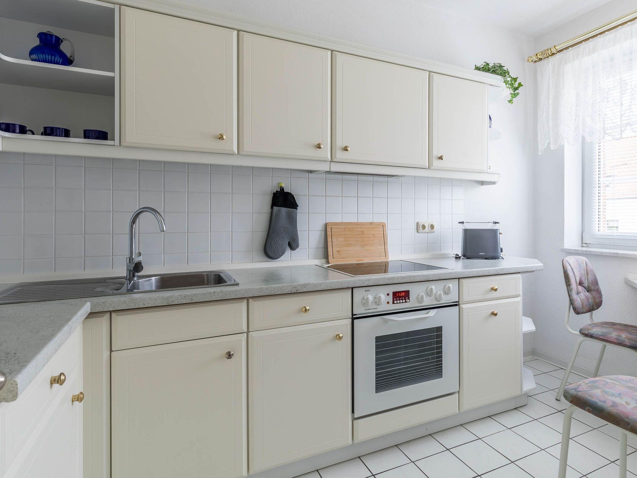 Die Küche ist komplett und zeitgemäß ausgestattet und sorgt für eine problemlose Selbstversorgungsmöglichkeit. So finden Sie hier neben einem Wasserkocher, einer Kaffeemaschine, Herd und Kühlschrank.