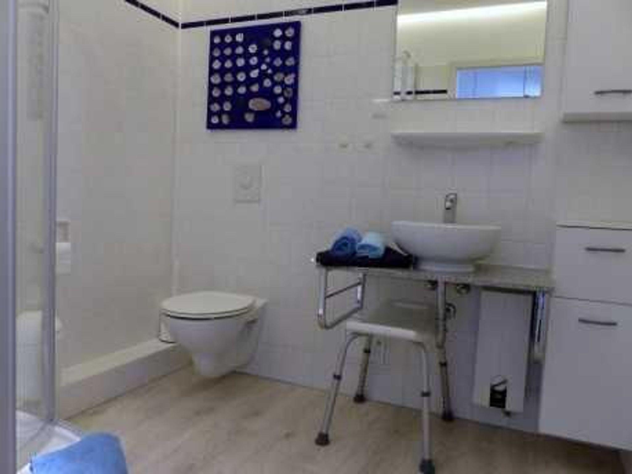 Mehr Komfort und Sicherheit finden Sie im Bad (Duschkabine mit flacher Duschtasse, rutschsicherer Fußboden, blendfreie Raumbeleuchtung, modernes Waschbecken mit mehr Ablagemöglichkeit, Badhocker, Föhn).