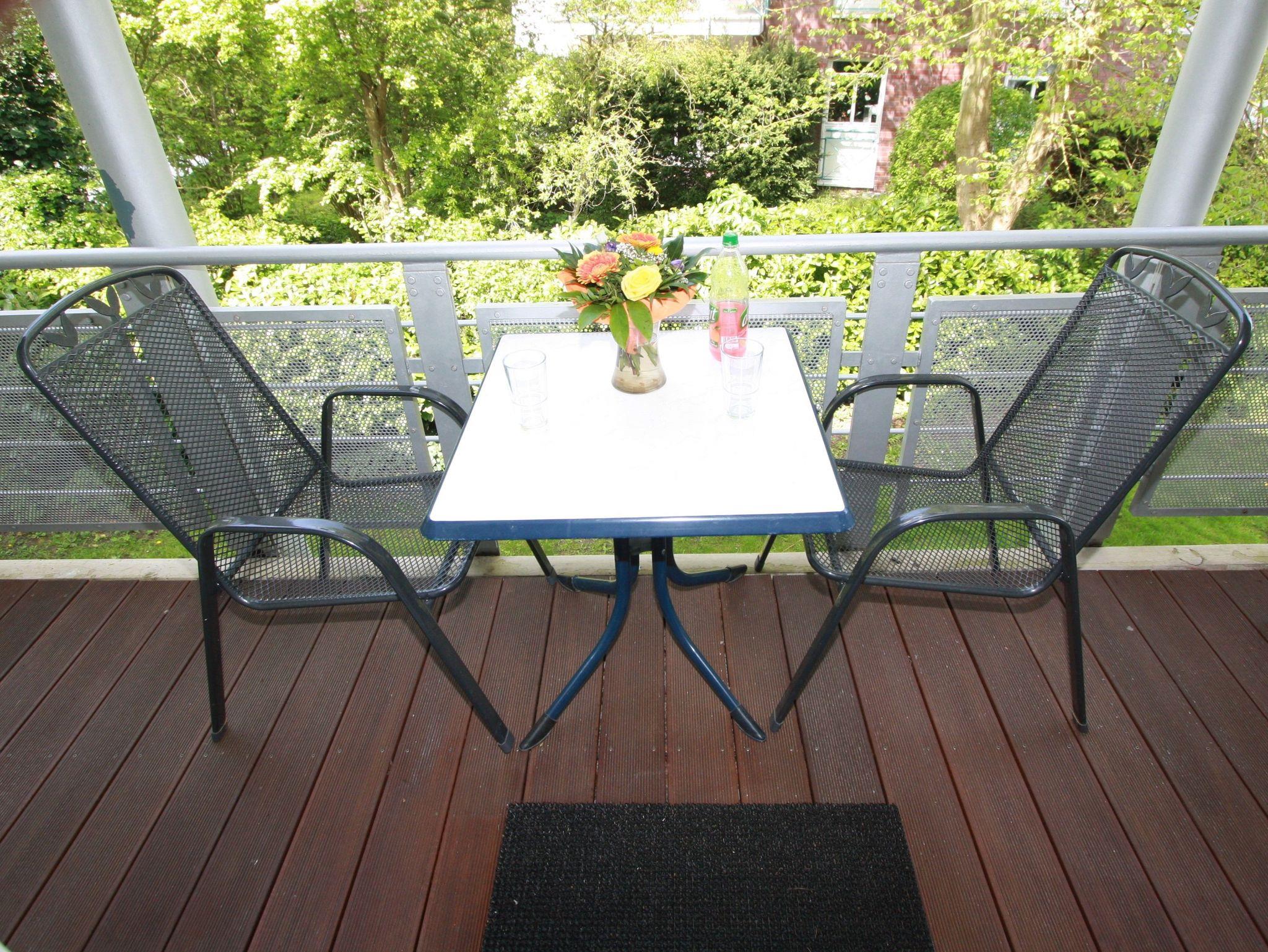 Der ruhig gelegene Balkon ist mit seinen bequemen Gartenmöbeln ideal um einen schönen Urlaubstag ausklingen zu lassen.