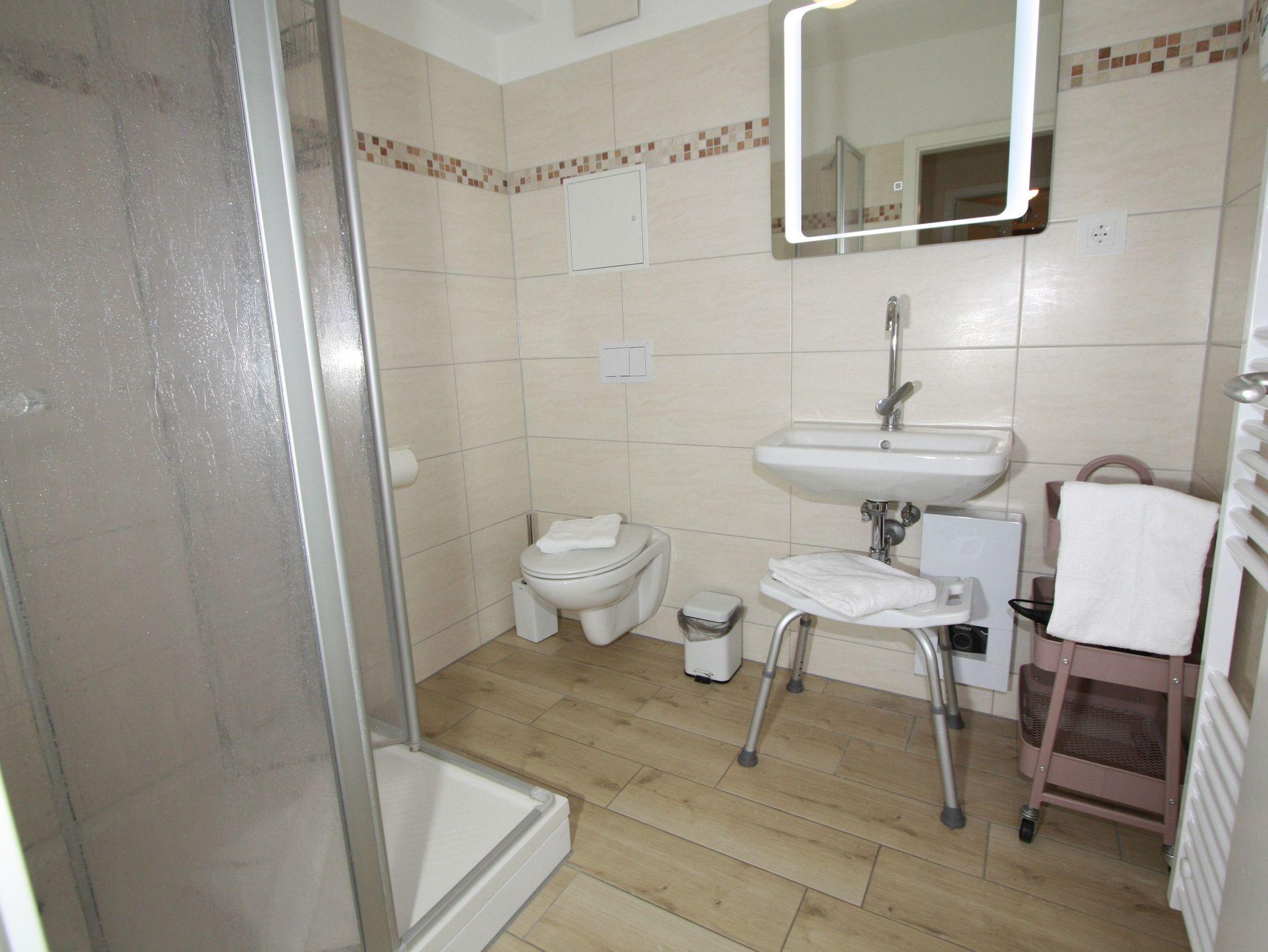 Auch in dem großzügigen Duschbad brauchen Sie auf Platz und Komfort nicht zu verzichten.