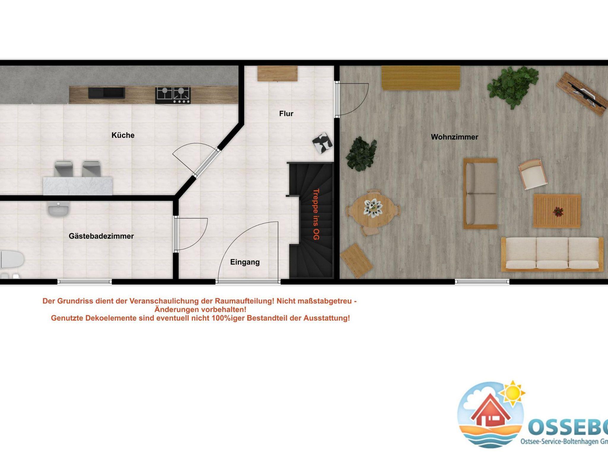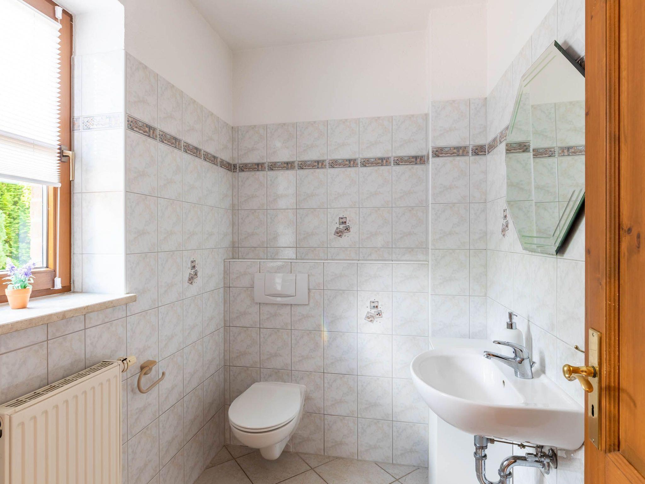 Das Erdgeschoss ist weiterhin mit einem Gäste-WC ausgestattet.