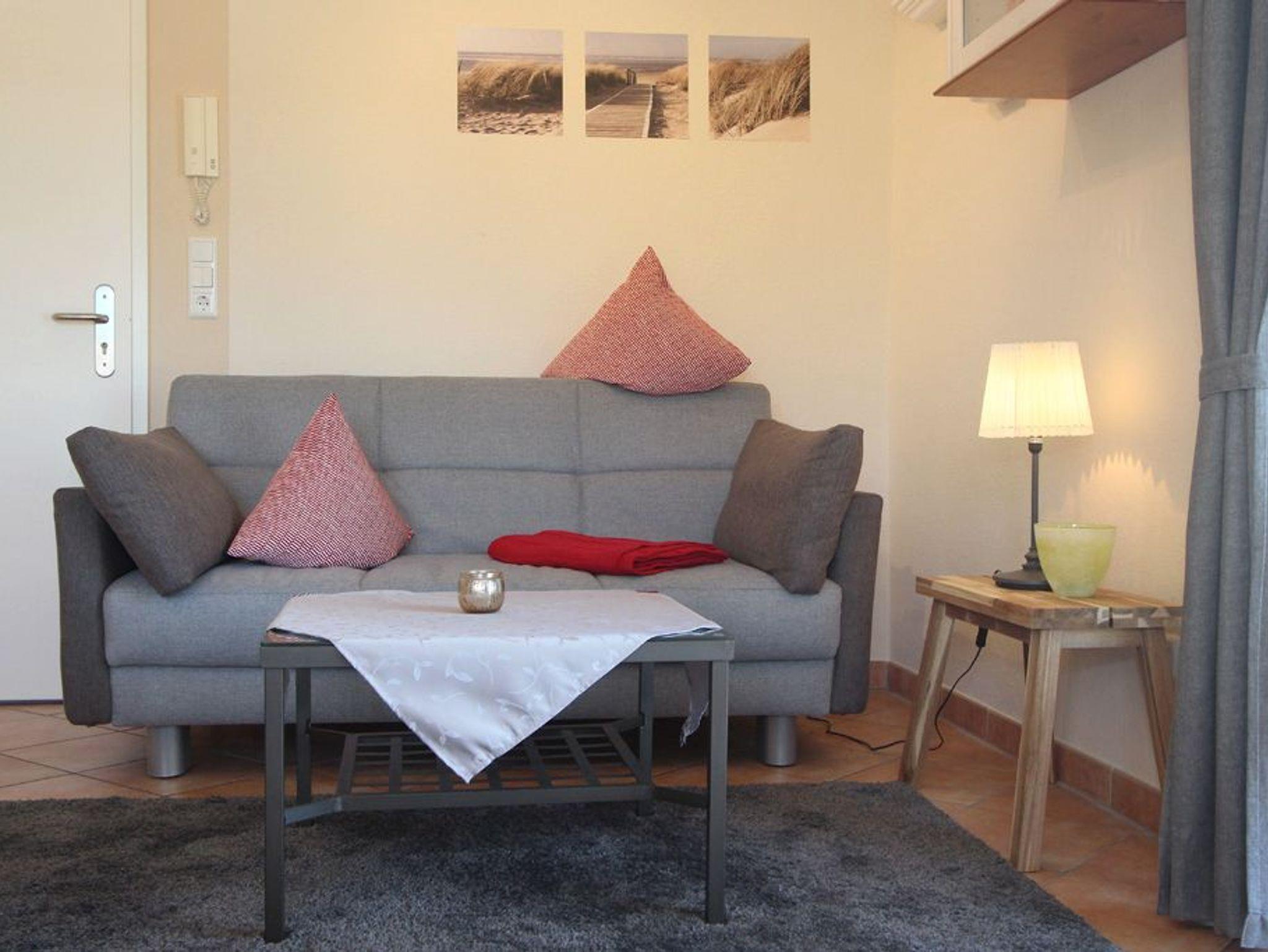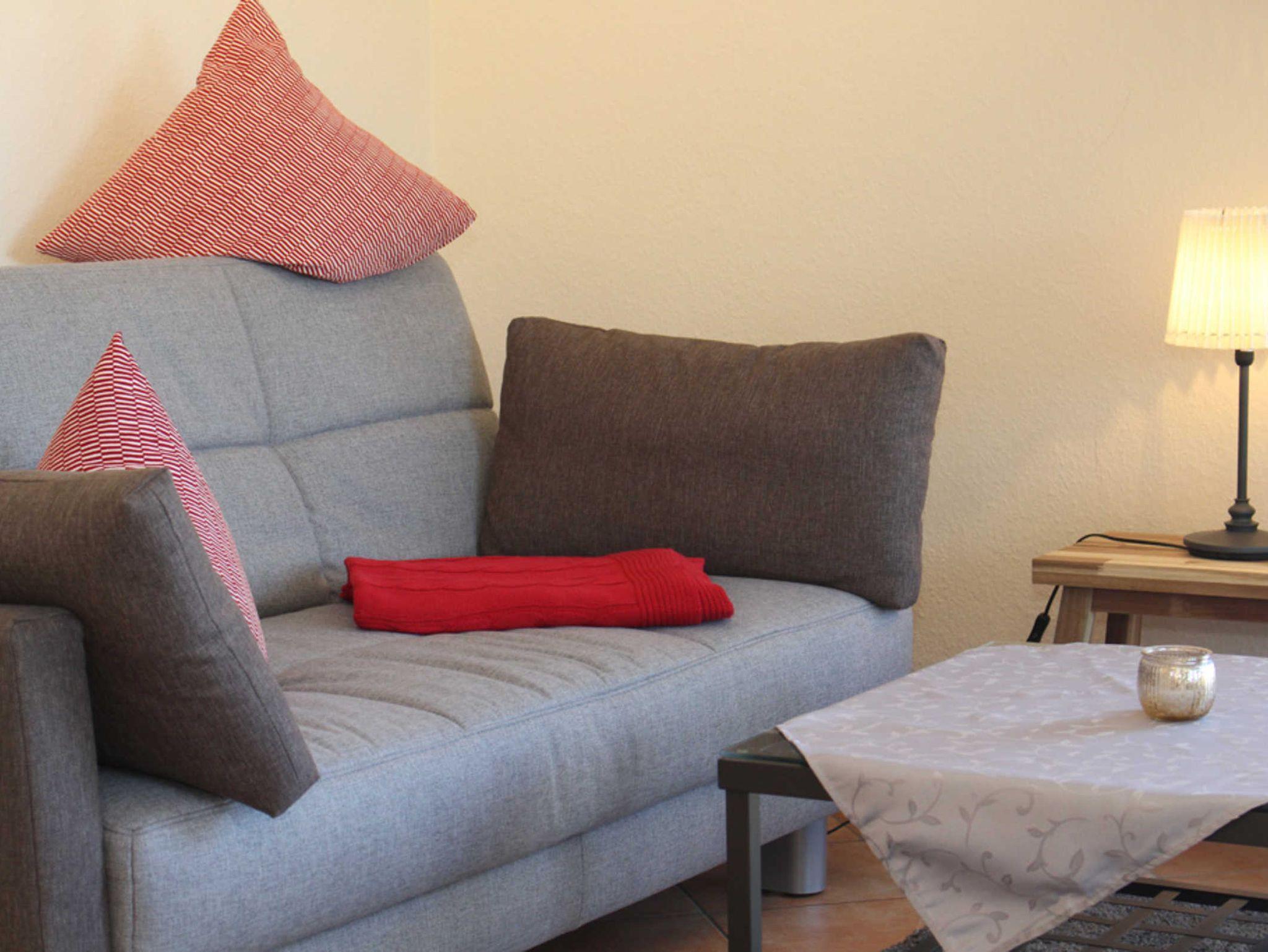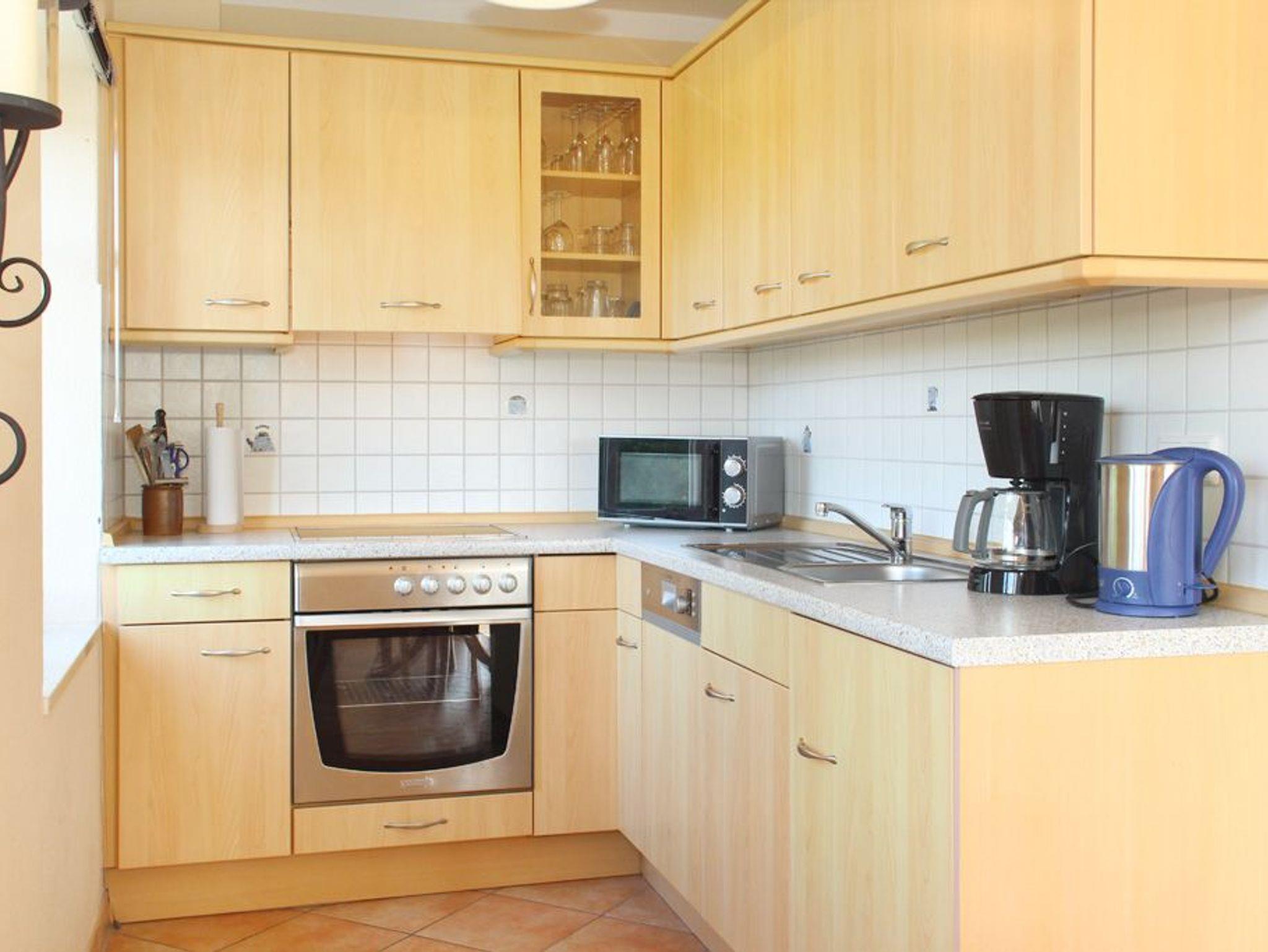 Auf der 1. Wohnebene (2.OG) befindet sich der Wohnbereich mit gemütlichem Sofa und Flatscreen-TV (Sat) sowie DVD-Player, an welchem die technisch gut bestückte Küchenecke angrenzt. An der separaten Essecke können Sie gemeinsam Ihre Mahlzeit einnehmen.