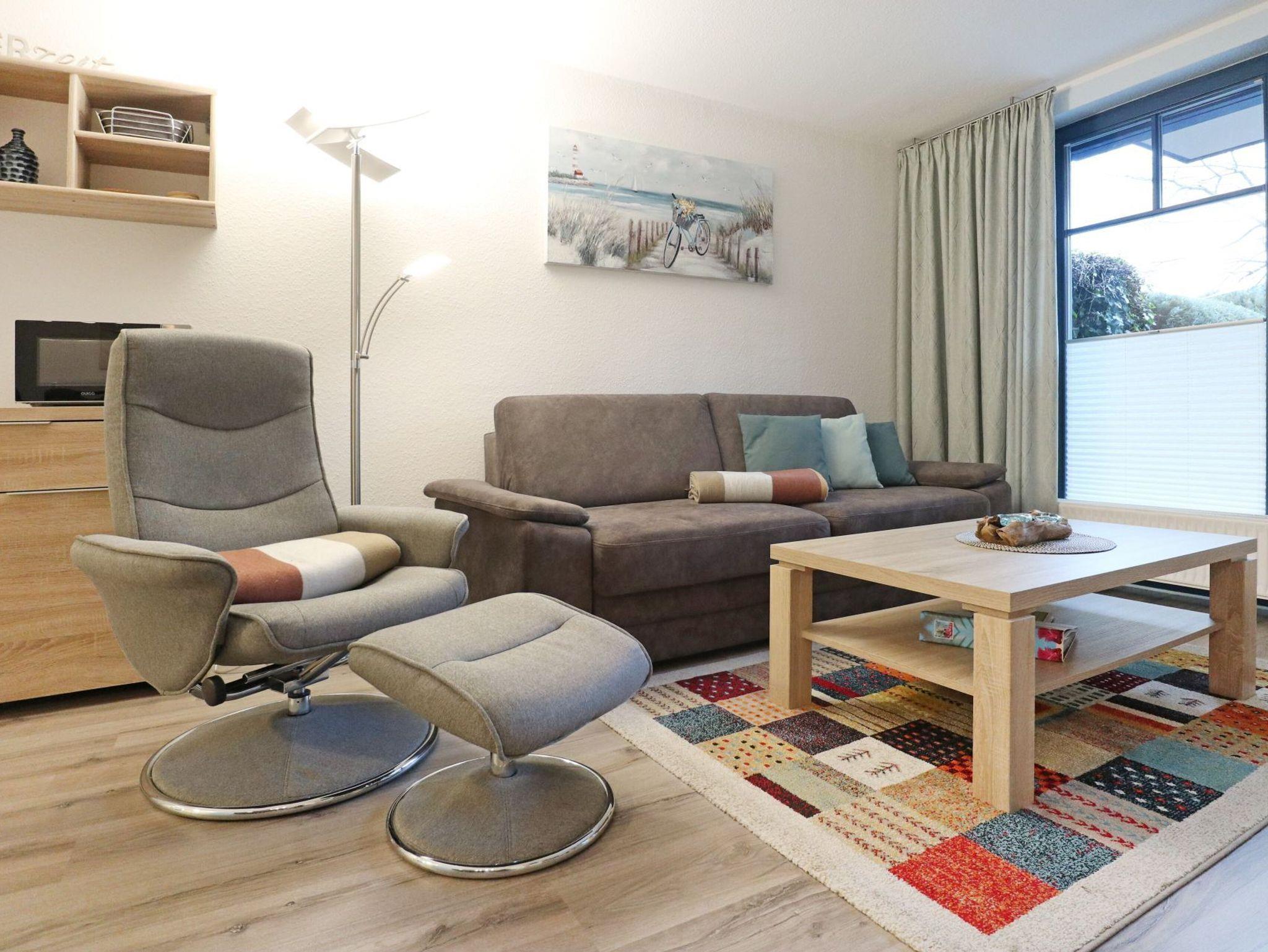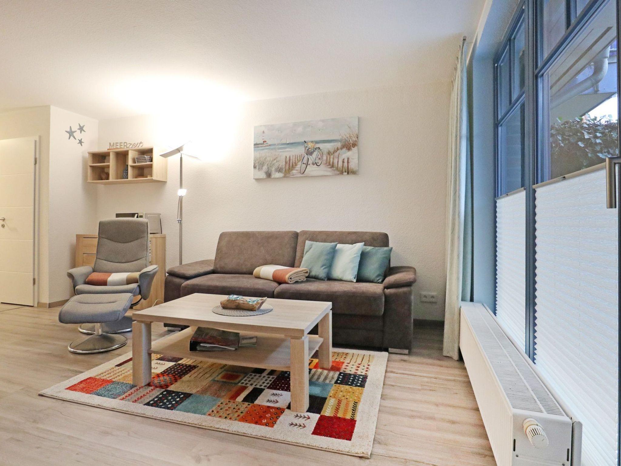 Die 2- Zimmer Ferienwohnung Papillon 12-2 besitzt eine Wohnfläche von 55qm und ist auf eine Belegung für bis zu 4 Personen ausgerichtet. Die Wohlfühlwohnung präsentiert sich mit einem komfortabel eingerichteten Wohn-/Essbereich, mit einem Sofa, das auch als Schlafsofa für zwei Personen nutzbar ist und Relaxen können Sie auch im Sessel mit Beinablage. Zudem sind ein Fernseher, DVD-Player, Musikanlage, kostenfreie WLAN- Nutzung vorhanden. Die saisonal möblierte Süd- Terrasse lädt zum Entspannen ein. In der modernen Wohnküche stehen Ceranherd, Backofen, Mikrowelle, Geschirrspüler sowie Kühlschrank mit integr. Gefrierfach, Kaffeemaschine, Toaster und Wasserkocher bereit. Das separate Schlafzimmer empfängt Sie mit einem sehr hochwertigen Twin-Bett System, so dass die Betten je nach Bedarf als Doppelbett, oder als zwei Einzelbetten genutzt werden können. Ein geräumiger Kleiderschrank ist ebenfalls vorhanden. Im Komfort- Duschbad mit Waschtisch, Föhn und WC beginnt Ihr Urlaubstag. Gegen Gebühr können Sie im Untergeschoß des Hauses Waschmaschine und Wäschetrockner nutzen. Für Kleinkinder befinden sich ein Hochstuhl, Kinderbett im Appartement. Bügeleisen und Bügelbrett stehen bereit. Ihren PKW parken Sie kostenfrei auf dem wohnungseigenen Außenstellplatz parken. Bitte beachten Sie, dass es sich um eine Nichtraucherwohnung handelt. Haustiere sind nicht erlaubt. Zur Ostsee gelangen Sie in nur ca. 250 Meter.