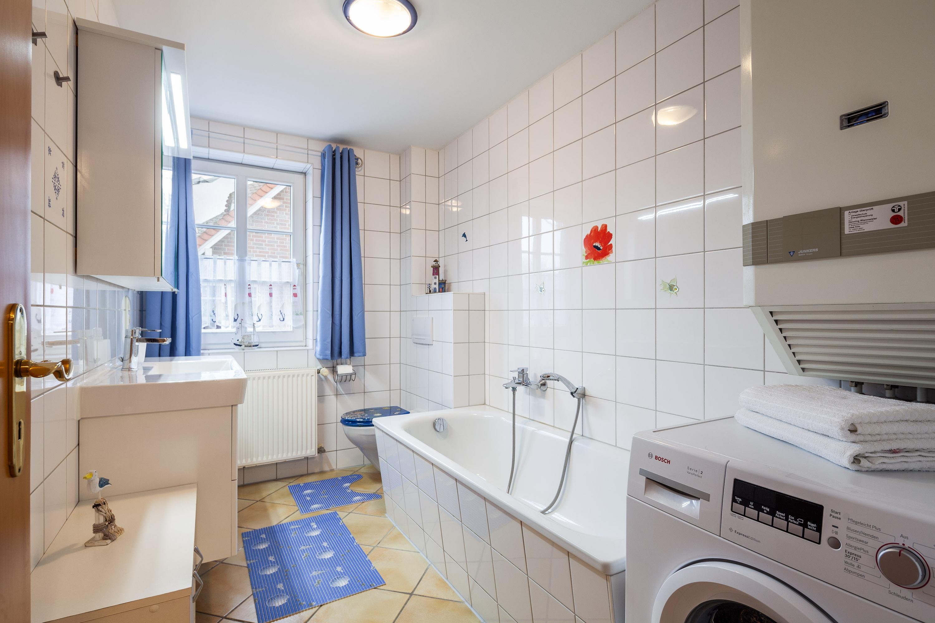 Das Ferienhaus verfügt insgesamt über 2 Badezimmer ;eins mit Dusche und WC sowie ein weiteres mit Badewanne und WC.Nehmen Sie sich Zeit zum Entspannen und Gönnen Sie sich ein Bad in der Badewanne.