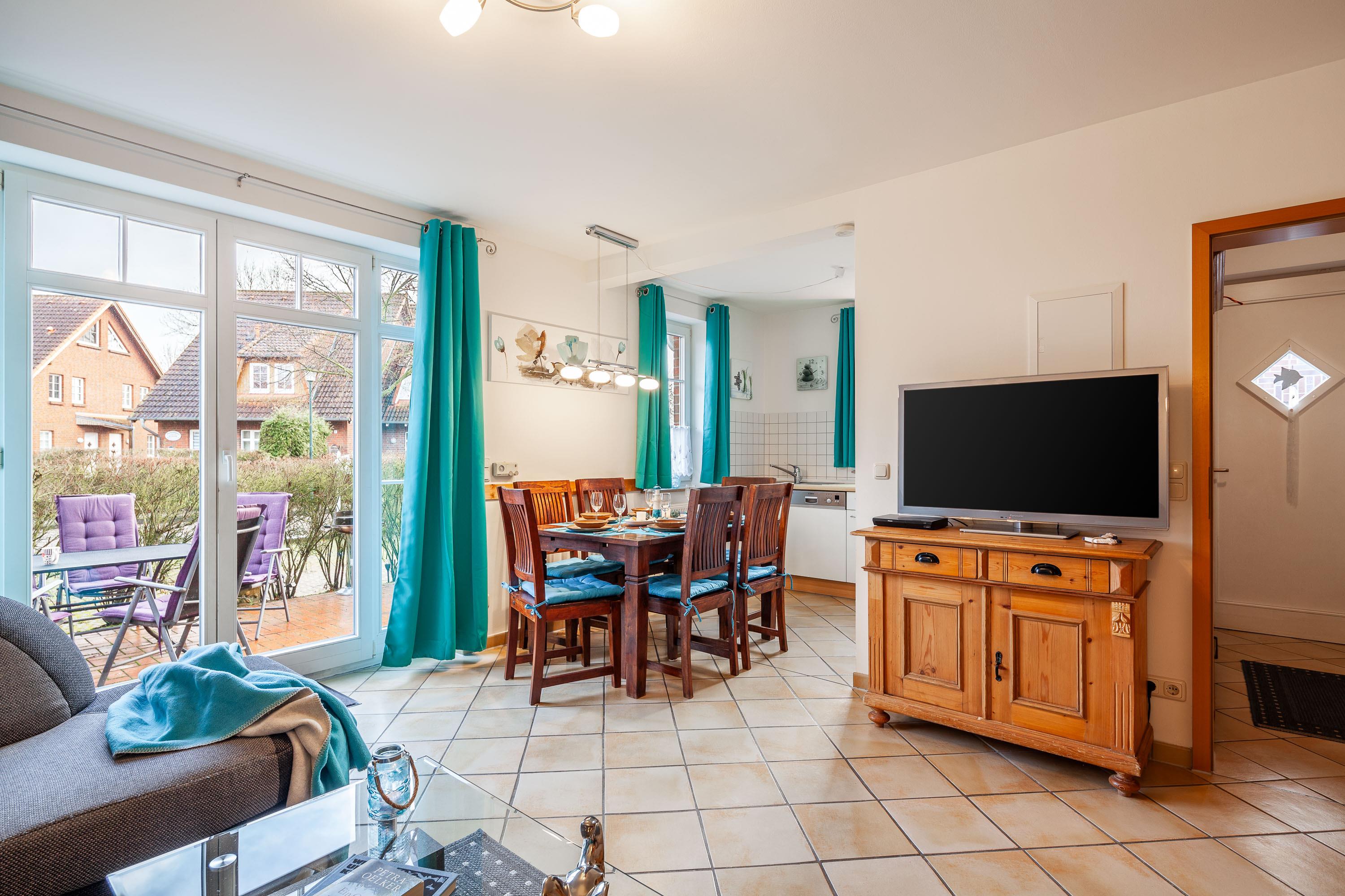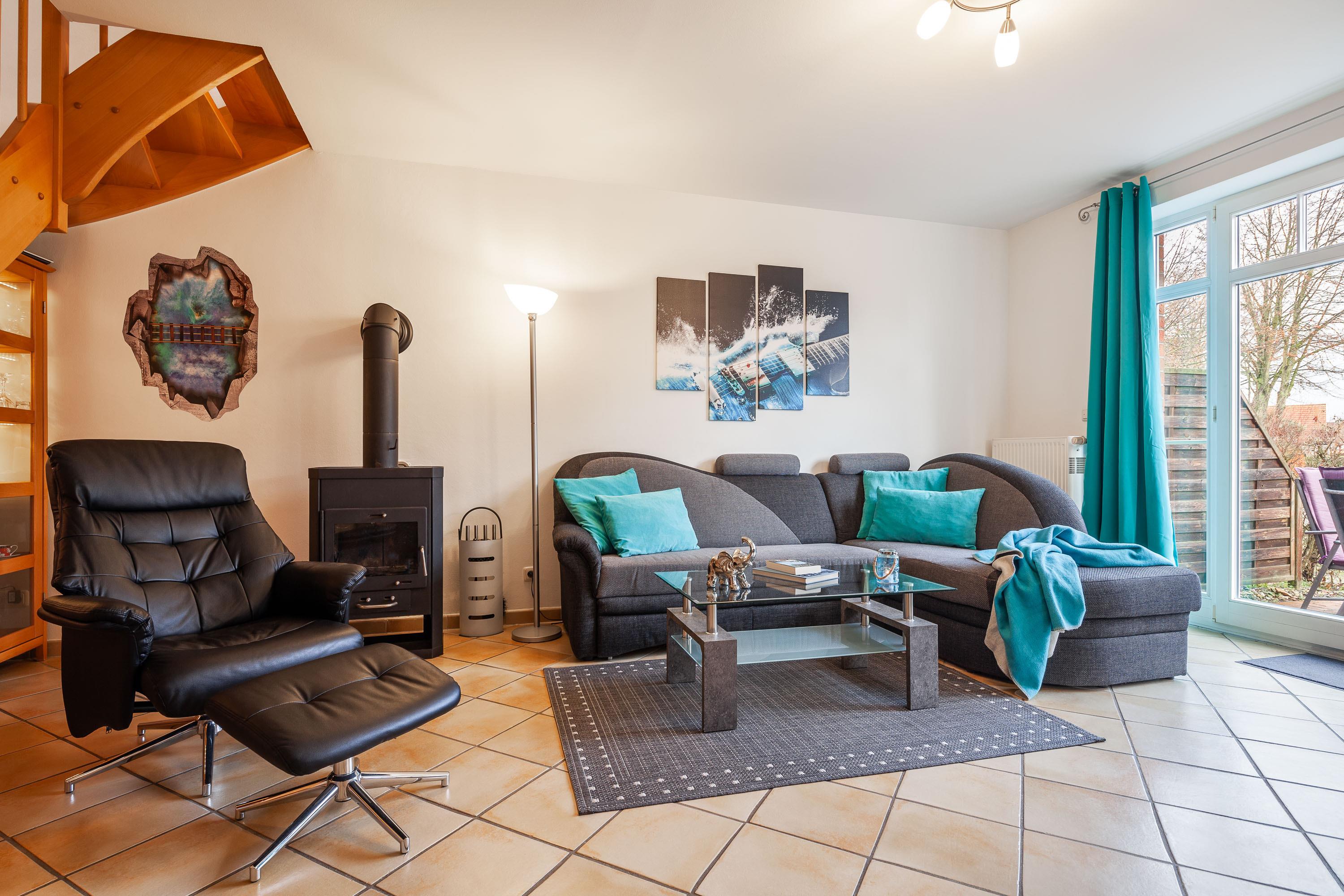 Der offene Wohnbereich mit integrierter, voll ausgestatteter Küche, lädt zum gemeinsamen Kochen und Verweilen ein.Für den perfekten Start in den Tag steht Ihnen eine Kaffeemaschine zur Verfügung.Ein Cerankochfeld mit Backofen,eine Mikrowelle,ein Geschirrspüler sowie eine Waschmaschine sind ebenfalls vorhanden, um Ihnen den Alltag zu erleichtern.Zur weiteren Ausstattung des Ferienhauses gehört ein gemütlicher Kaminofen im Wohnbereich, der an kühlen Tagen für wohlige Wärme sorgt.Auch ein Internet- WLAN-Anschluss ist vorhanden, damit Sie auch im Urlaub immer online sein können.