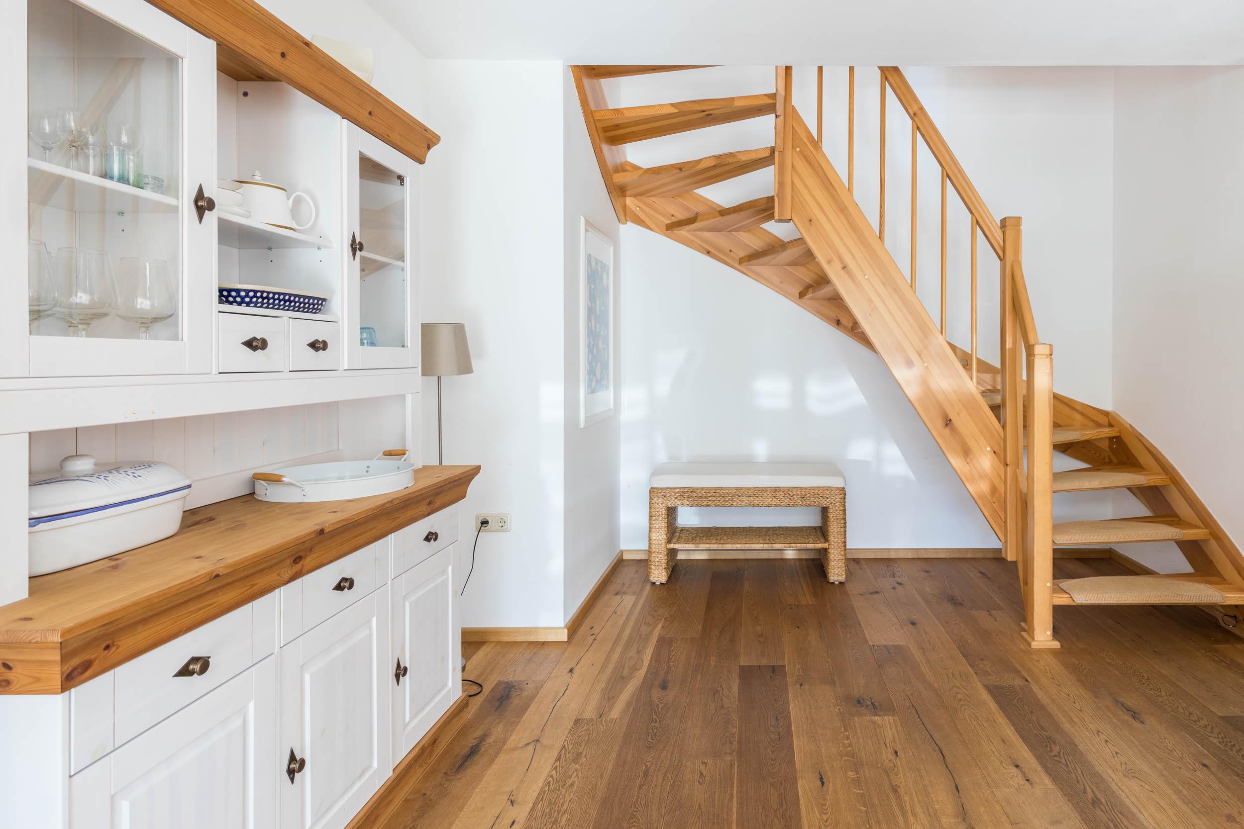 Durch die Küchenzeile mit gehobenem Standard ist das Haus für die Selbstversorgung bestens geeignet. Dort findet man alle Küchengeräte. Neben einem Kühlschrank inklusive Gefrierfach ist ein Herd mit Backofen, eine praktische Spülmaschine, eine Mikrowelle, ein Toaster, ein Wasser- und Eierkocher sowie eine Kaffeemaschine und ein Mixer vorhanden.