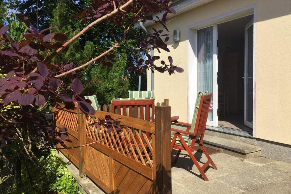 Gemütliche Ferienwohnung im Bungalow-Stil in Boltenhagen mit Terrasse und moderner Ausstattung für einen entspannten Ostseeurlaub.