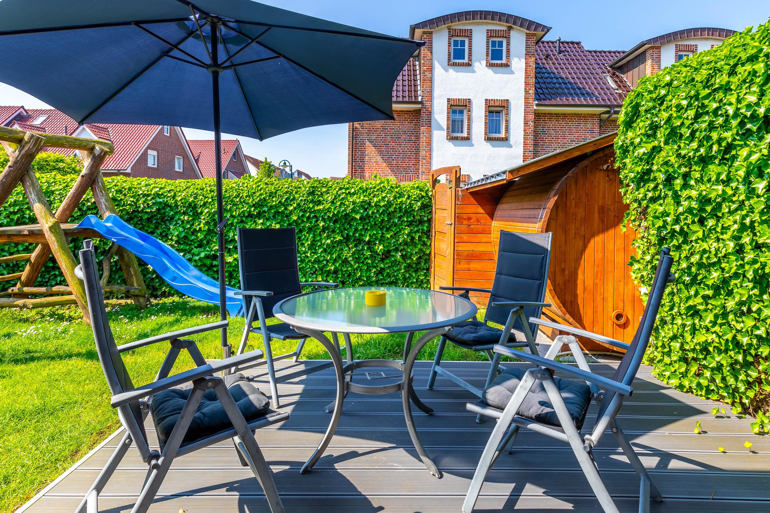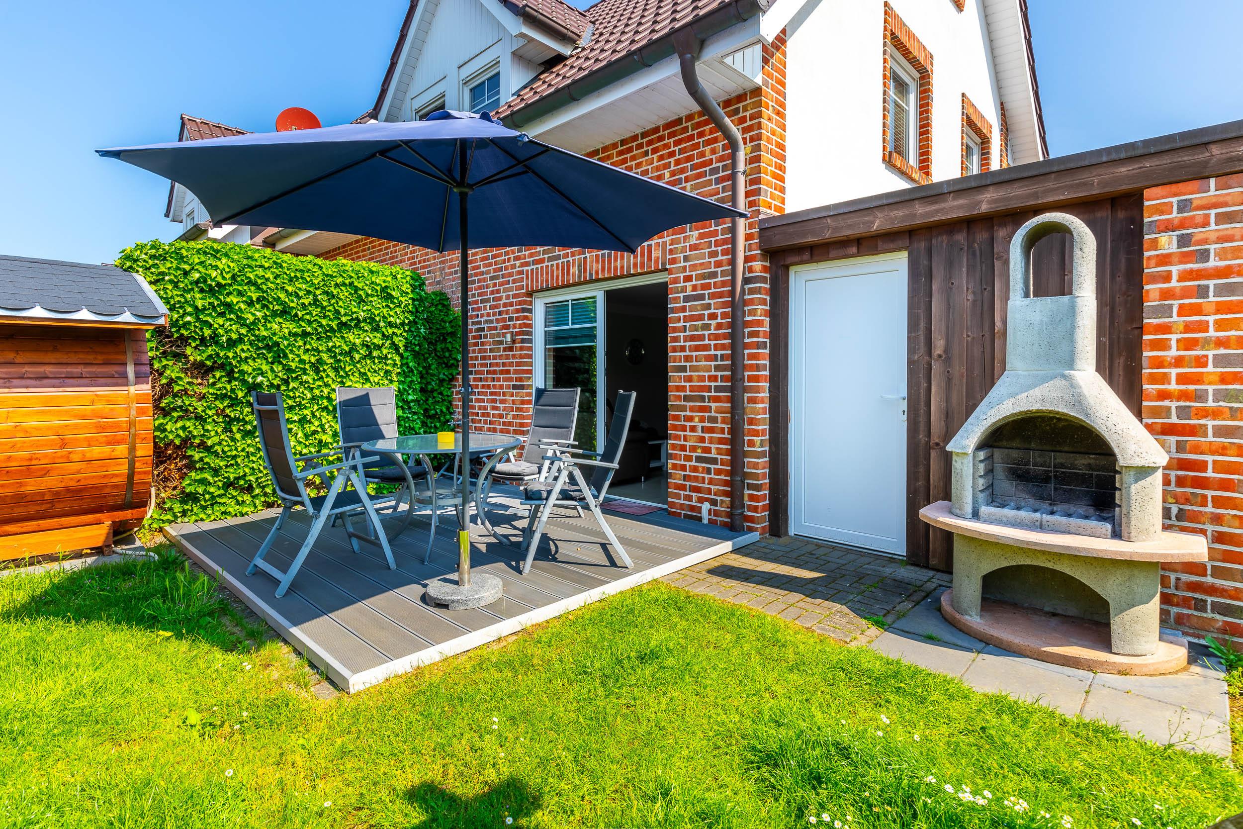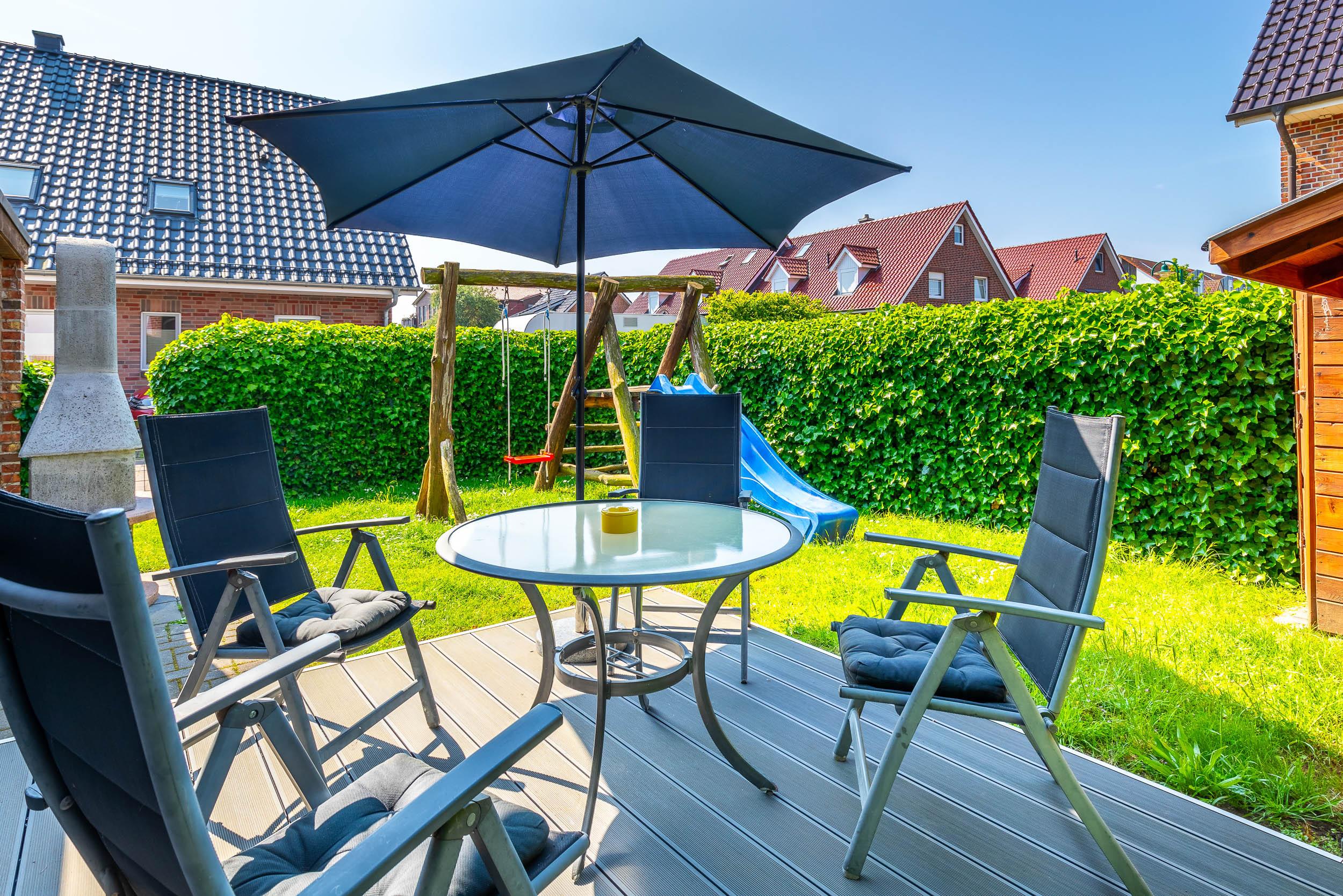 Die möblierte und eingezäunte (z.T. Zaun, z.T. Hecke) Südwest-Terrasse, welche Sie vom Wohnzimmer aus erreichen, lädt zum Entspannen und zu gemütlichen Grillabenden ein.