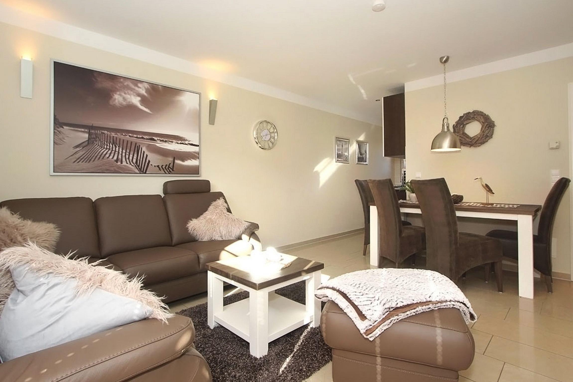 Im Wohnbereich mit Flatscreen-TV und DVD-Player können sie auf der Ledercouch entspannen. Der Essbereich für 4 Personen ist ideal für gemeinsame Mahlzeiten.