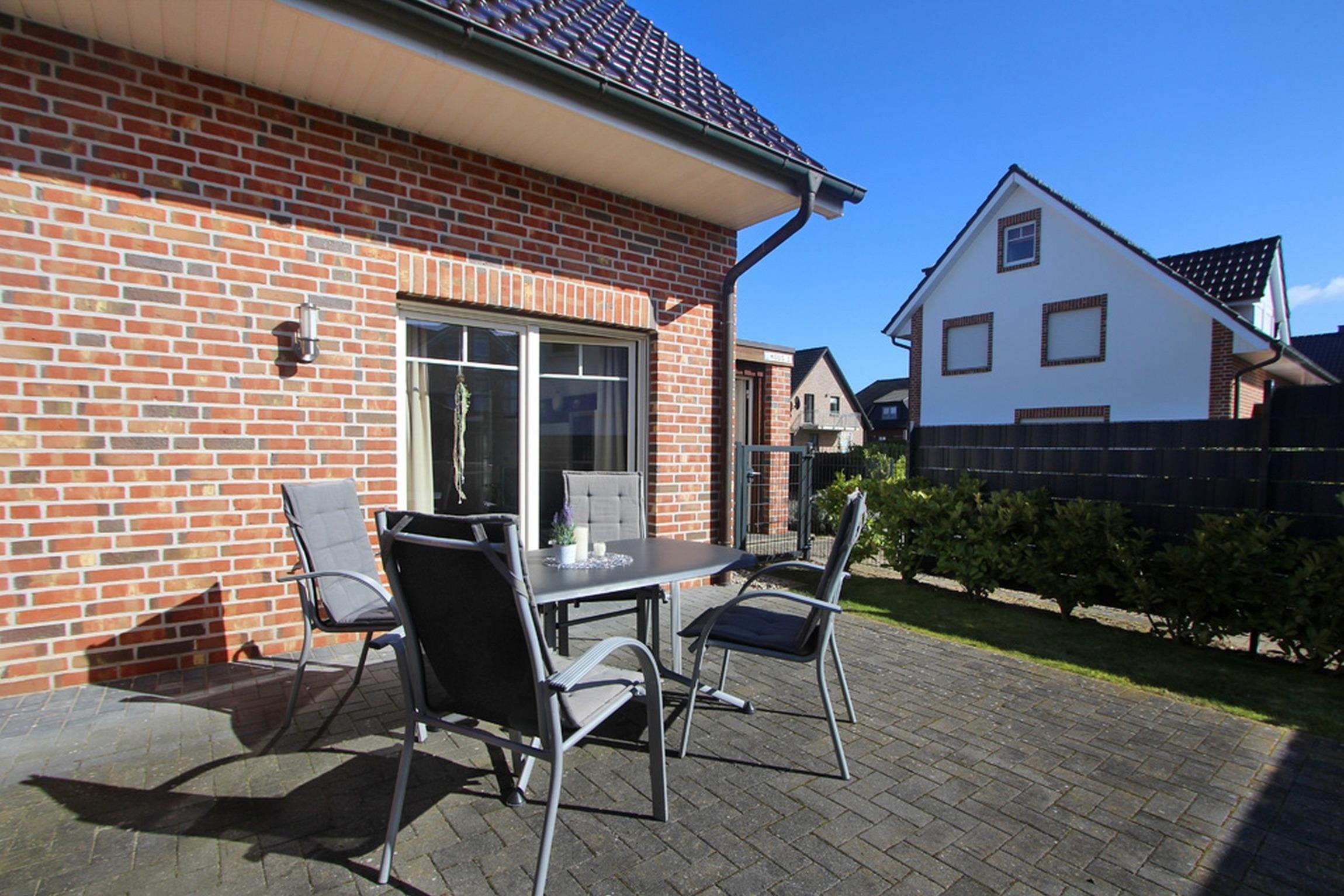 Die möblierte Südwest-Terrasse und der mit Sichtschutz eingezäunte Garten laden zum Entspannen und zu gemütlichen Grillabenden ein. Auch ein eigener Strandkorb ist hier für unsere Gäste aufgestellt.