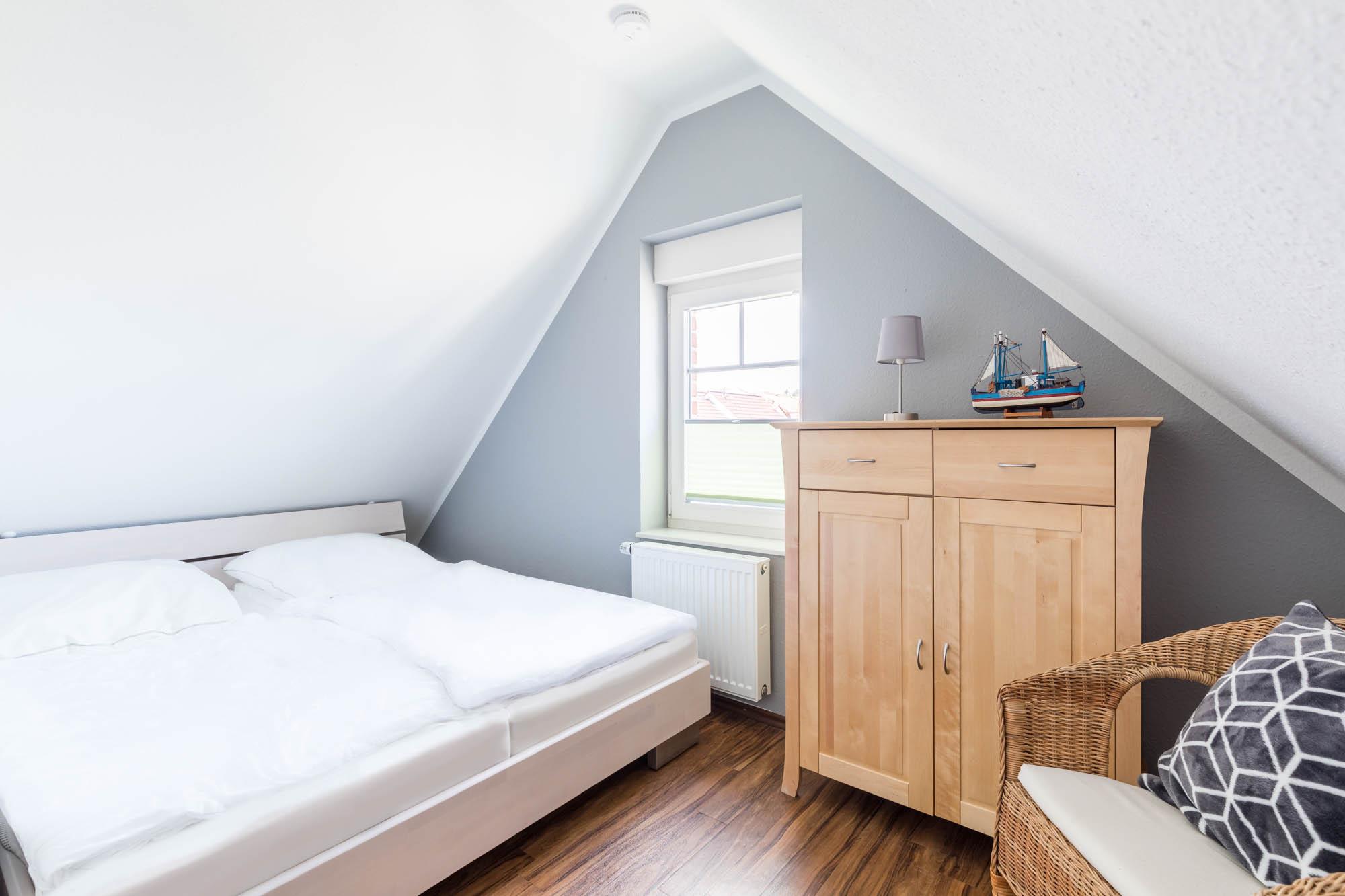 Ein Schlafzimmer mit Doppelbett (180x200cm) und Kleiderschrank finden Sie ebenfalls auf dieser Etage.