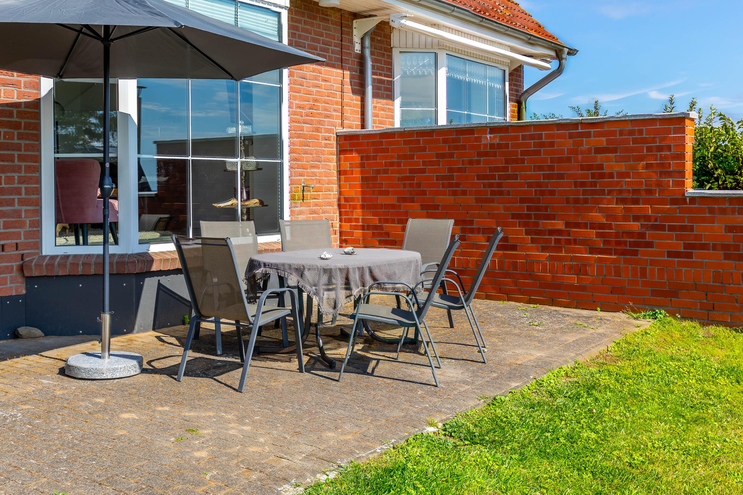 Der große eingezäunte Garten mit schöner möblierter Südwest-Terrasse ist für alle Gäste und Haustiere ein Paradies.