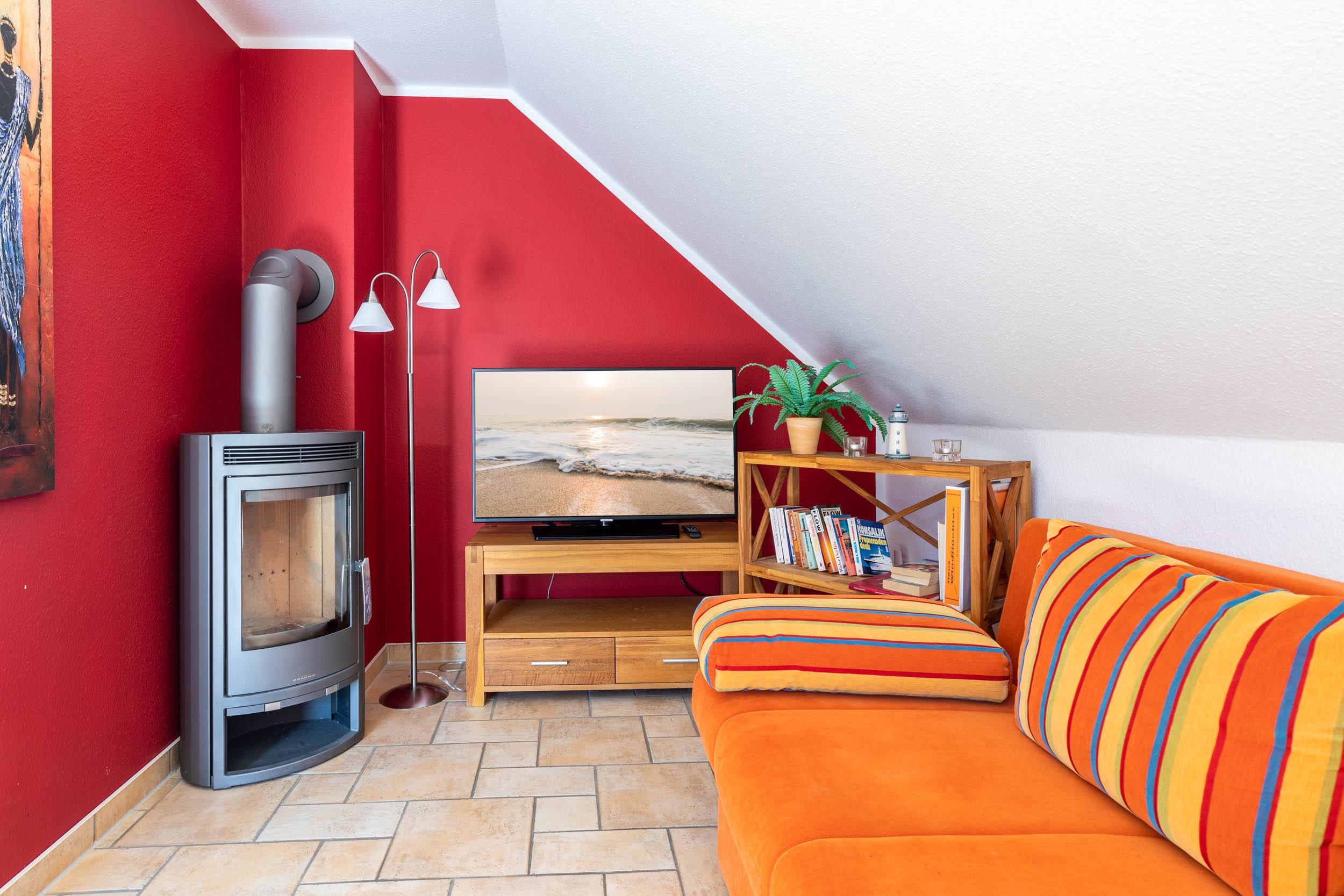 Im Erdgeschoss finden Sie den Wohnbereich mit SAT-TV, DVD-Player, Stereoanlage, zwei Sofas mit Schlaffunktionen für insgesamt zwei Personen, Kamin und offener Küchenzeile mit vielen E-Geräten wie Cerankochfeld, Mikrowelle mit Backofenfunktion, Geschirrspüler, Kühlschrank mit Gefrierfach uvm.