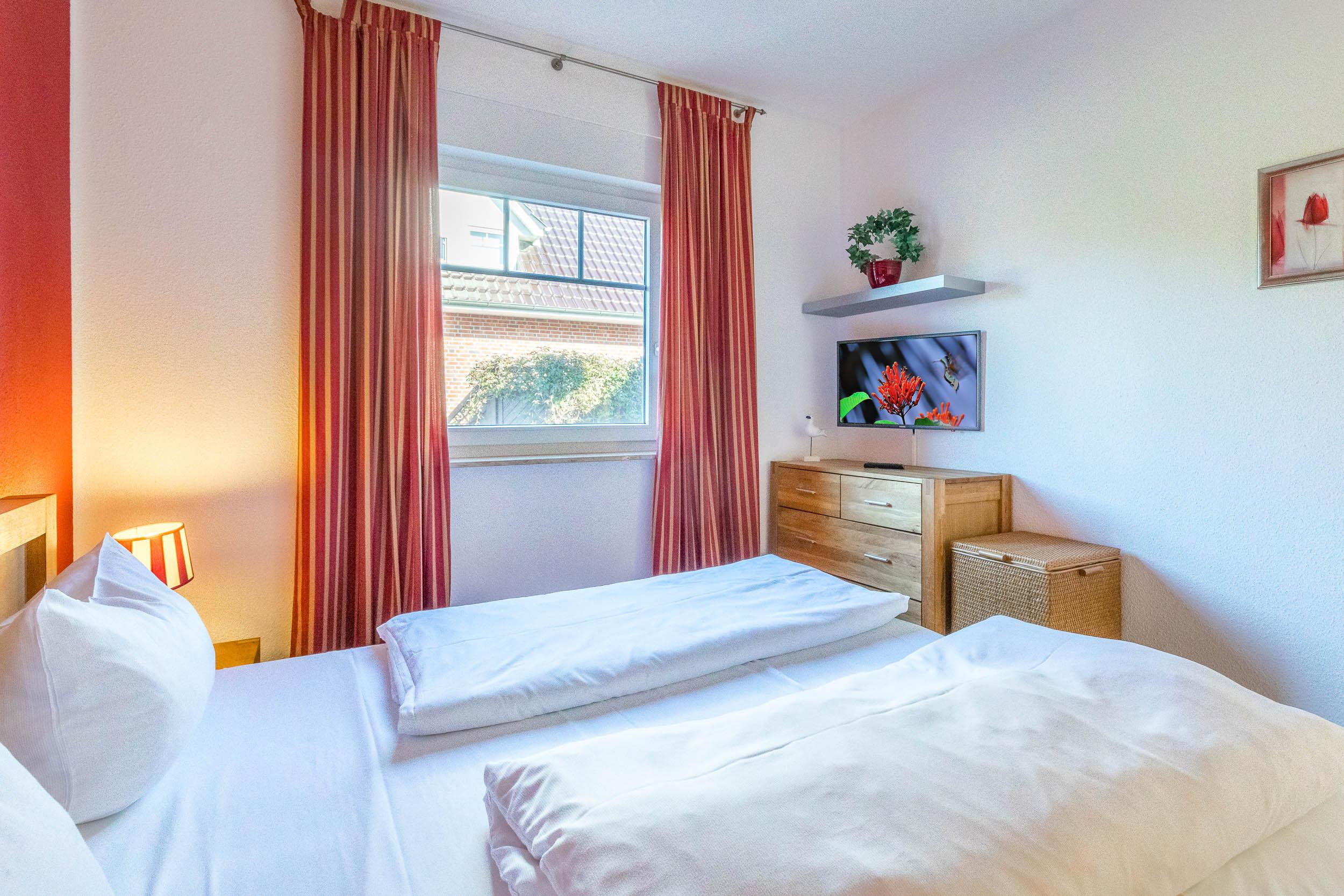 Außerdem finden Sie hier ein helles Bad mit Dusche/ WC sowie ein Schlafzimmer mit Doppelbett, Kleiderschrank und SAT-TV.