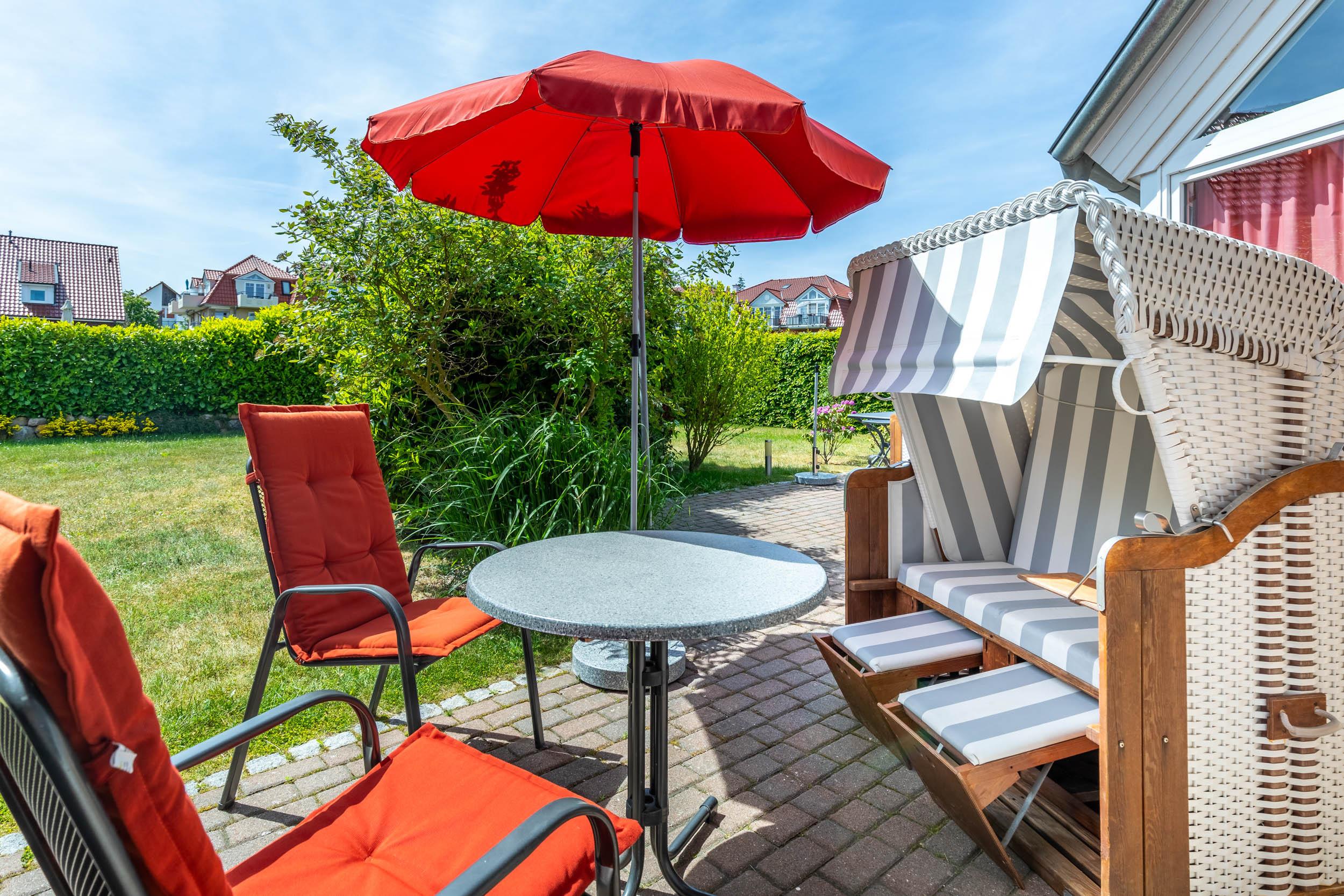 Darüber hinaus verfügt die Wohnung über eine eigene möblierte Südwest-Terrasse, auf der Sie ausgiebig die Sonne genießen können.